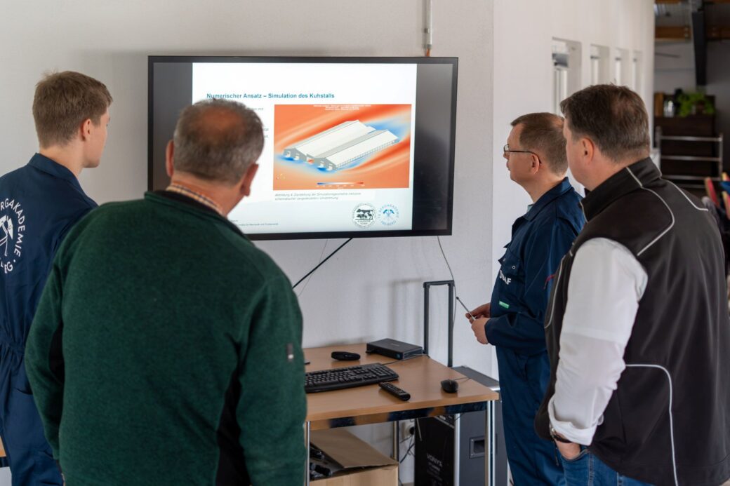 Klimaanpassung für den Stall der Zukunft11. Juli 2025 Strömungsmessgerät misst Luftströme und den Atem der Kühe im Stall. Foto: © TU Bergakademie Freiberg/A. Hiekel Am 11. Juli 2025 hat sich an der TU Bergakademie Freiberg (TUBAF) der Verein „Zentrum für zukunftsfähige Tierhaltung“ gegründet. Unter der Federführung der Freiberger Universität haben sich Forschende, Privatpersonen und Angehörige der Wirtschaft zusammengeschlossen, um einen Innovationspool für den tierfreundlichen und nachhaltigen Stall der Zukunft voranzutreiben. Zunächst wird das Bündnis als eingetragener Verein starten. Auch in diesem Sommer rollen wieder Hitzewellen über Europa und machen vor Nutztieren nicht Halt. In den Ställen steigen die Temperaturen ins Unerträgliche, denn Kühe leiden bereits bei Temperatur über 15 Grad Celsius an Hitzestress. Forschenden und Landwirtinnen und Landwirten ist in Zeiten des Klimawandels klar, dass sich die Ställe in Zukunft ändern müssen, um insbesondere Rindern bessere klimatische Bedingungen zu bieten. Der Stall der Zukunft – hier setzt das Zentrum für zukunftsfähige Tierhaltung an. Know-How für klima- und tierfreundlichen Stallbau Ein schlechtes Stallklima hat enorme Auswirkungen, nicht nur auf die Milchleistung von Kühen: „Wir wissen aus unserer Forschung, dass die meisten der aktuell in der Milchviehhaltung auftretenden Tiergesundheitsstörungen und Tierverluste ebenso wie die Einschränkungen im Wohlbefinden unserer Rinder auf ein suboptimales Haltungsumfeld zurückgehen“, sagt der Vereinsvorsitzende Prof. Alexander Starke.Mit ihrer Expertise für Strömungsmechanik und Bewetterung ist die TUBAF ingenieurtechnische Ideengeberin innerhalb des Verbunds. Dazu Prof. Rüdiger Schwarze: „Wir messen in einem Milchviehbetrieb bei Leipzig, der Agrargenossenschaft Kitzen, die Luftströme und den Atem der Kühe und haben mit den Daten einen digitalen Zwilling des Stalls erstellt. Dieser liefert erste Hinweise darauf, welche Maßnahmen in Zukunft zu einem besseren Stallklima führen können.“Der Freiberger Rektor Prof. Klaus-Dieter Barbknecht hat gemeinsam mit Starke und Schwarze den Verein initiiert. „Mit dem Freiberger Zentrum für zukunftsfähige Tierhaltung haben wir einen der drängendsten Klimafaktoren auf unsere Agenda genommen: Die Landwirtschaft. Als Ressourcen-Universität, die an nachhaltigen Lösungen für die Herausforderungen der Gegenwart wie den Klimawandel forscht, können wir hier unser Know-how aus den Ingenieur- und Geowissenschaften und der Energietechnik wirkungsvoll einsetzen“, so Prof. Klaus-Dieter Barbknecht. Gemeinsame Forschung erleichtern Das Zentrum für zukunftsfähige Tierhaltung hat bereits mit der Vorbereitung gemeinsamer Forschungsinitiativen begonnen. Ein thematisch verknüpftes Forschungsprojekt der TU Bergakademie Freiberg zur präzisen Bilanzierung der Treibhausgasemissionen aus Milchviehställen ist Anfang 2025 gestartet. Das von Prof. Schwarze geleitete Projekt wird von der Dr.-Erich-Krüger-Stiftung gefördert. „Das Projekt ist eine Art Initialzündung, wieder verstärkt in Netzwerken zu forschen. Im Zentrum für zukunftsfähige Tierhaltung bringen wir das Wissen Forschender unterschiedlicher Disziplinen und erfahrener Praktikerinnen und Praktiker aus den Bereichen Stallbau und Landwirtschaft zusammen. Damit wollen wir auf nationaler wie internationaler Ebene Impulse für klima- und tierfreundlichen Stallbau liefern.“Der Vorstand des Vereins setzt sich aus folgenden Personen zusammen: • Prof. Dr. Alexander Starke, Klinik für Klauentiere der Veterinärmedizinischen Fakultät der Universität Leipzig (Vorsitzender)• Prof. Dr. Rüdiger Schwarze, Institut für Mechanik und Fluiddynamik, TUBAF (stellvertretender Vorsitzender)• Dr. Uwe Bergfeld (Kassenwart)• Prof. Dr. Michael Mertig (TU Dresden)• Prof. Dr. Alexander Stahr (HTWK Leipzig)Zu den Gründungsmitgliedern gehören weiterhin: • Prof. Dr. Klaus-Dieter Barbknecht (Rektor der TUBAF)• Dr. Steffen Pache• Thomas Seidel (Geschäftsführer der HERMES GmbH Stalleinrichtungen)• die TU Bergakademie Freiberg wird als juristische Person Gründungsmitglied Der digitale Zwilling liefert erste Hinweise darauf, welche Maßnahmen in Zukunft zu einem besseren Stallklima führen können.“ Foto: © TU Bergakademie Freiberg/Andreas Hiekel https://Wie Forschung am Stall der Zukunft aussieht, zeigt auch ein Video, in dem das Projekt zur präzisen Bilanzierung der Treibhausgasemissionen aus Milchviehställen vorgestellt wird: https://www.youtube.com/watch?v=HoL7GY4HjHk