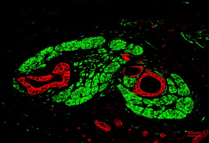 Mehr erfahren zu: "Bauchspeicheldrüsenkrebs bildet eigene „Synapsen“" Bauchspeicheldrüsenkrebs bildet eigene „Synapsen“ Laut einem Team von der Technischen Universität München (TUM) nutzen Pankreastumore das Nervensystem des Körpers für sich selbst, indem sie Pseudosynapsen bilden: Krebszellen gelangen so an den Neurotransmitter Glutamat, der […]