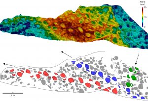 Langhals-Dinos rotierten ihre Vorderfüße zur Seite1. Februar 2019 Lebendrekonstruktion des Fährtenerzeugers, eines frühen Sauropoden. © Darius Nau Langhals-Dinosaurier (Sauropoden) konnten ihre Vorderfüße sowohl nach vorne als auch zur Seite ausrichten. Die Fußstellung hing dabei von der Geschwindigkeit und dem Massenschwerpunkt der Tiere ab. Ein internationales Forscherteam untersuchte mit modernsten Methoden zahlreiche Sauropoden-Fußspuren in Marokko am Fuß des Atlas-Gebirges. Durch Vergleich mit anderen Spuren von Sauropoden ermittelten die Wissenschaftler, wie sich die langhalsigen Tiere vorwärts bewegt haben. Langhals-Dinosaurier (Sauropoden) gehörten zu den erfolgreichsten Pflanzenfressern des Erdmittelalters – des Zeitalters der Dinosaurier. Charakteristisch für diese Gruppe waren ein tonnenförmiger Körper auf säulenartigen Beinen sowie ein überaus langer Hals, der in einen verhältnismäßig kleinen Kopf mündete. Langhals-Dinosaurier existierten vor etwa 210 bis vor 66 Millionen Jahren – damit behaupteten sie sich sehr lange auf der Erde. Auf ihren Erfolg deutet auch ihr Riesenwuchs, mit dem sie andere Dinosaurier weit übertrafen. Zu den Sauropoden zählten die größten Landtiere der Erdgeschichte, teilweise über 30 Meter lang und bis zu 70 Tonnen schwer. „Wie sich diese Riesen aber genau fortbewegten, liegt noch im Unklaren“, sagt Jens Lallensack, Paläontologe am Institut für Geowissenschaften und Meteorologie der Universität Bonn. Die Gelenke in den Beinen waren teilweise knorpelig und somit nicht fossil erhalten – Knochen alleine lassen aber nur beschränkte Rückschlüsse auf den Bewegungsablauf zu. Detektivarbeit mit 3D-Computeranalysen Der vordere Teil der Fundstelle in Marokko mit den beiden längsten Fährten. Oben: 3D-Modell als Tiefenfarbbild, Unten: Interpretation der Fußspuren. Bild: © The Society of Vertebrate Paleontology Die fehlenden Puzzlestücke lassen sich jedoch mithilfe fossiler Fußspuren der Riesen rekonstruieren. Ein internationales Forscherteam aus Japan, Marokko und Deutschland unter Leitung der Universität Bonn hat nun eine besondere Spurenfundstelle in Marokko am Fuß des Atlas-Gebirges untersucht. Die Fundstelle besteht aus einer bei der Gebirgsbildung senkrecht gestellten Fläche von 54 Mal sechs Metern Größe, die hunderte einzelner Trittsiegel zeigt, die sich teilweise überlappen. Ein Teil dieser Fußabdrücke konnte insgesamt neun Fährten (Abfolgen einzelner Trittsiegel) zugeordnet werden. „Das Herausarbeiten individueller Fährten aus diesem zerstampften Durcheinander von Fußspuren war Detektivarbeit und nur durch die Analyse hochauflösender 3D-Modelle am Computer möglich“, sagt Dr. Oliver Wings vom Zentralmagazin Naturwissenschaftlicher Sammlungen der Martin-Luther-Universität Halle-Wittenberg. Die Ergebnisse haben die Forscher verblüfft: Die Fährten sind äußerst schmal – die rechten und linken Fußspuren liegen fast auf einer Linie. Auch sind die Vorderfuß-Eindrücke nicht nach vorne gerichtet, wie für Sauropoden-Spuren typisch, sondern zeigen zur Seite – teilweise sogar schräg nach hinten. Mehr noch: Die Tiere konnten nach Bedarf zwischen beiden Stellungen wechseln. „Menschen sind in der Lage, die Handfläche nach unten zu drehen, indem sie Elle und Speiche über Kreuz legen“, sagt Dr. Michael Buchwitz vom Museum für Naturkunde Magdeburg. Diese komplizierte Bewegung sei bei heutigen Landwirbeltieren allerdings auf Säugetiere und Chamäleons beschränkt. Bei anderen Tieren, einschließlich der Dinosaurier, war sie nicht möglich. Sauropoden mussten folglich eine andere Möglichkeit gefunden haben, den Vorderfuß nach vorne zu drehen. Wie ist die Drehung des Vorderfußes zu erklären? Wie ist die Drehung des Vorderfußes in den Sauropodenspuren zu erklären? Der Schlüssel liegt vermutlich in den mächtigen Knorpellagen, die eine große Flexibilität in den Gelenken, insbesondere in der Schulter, erlaubten. Warum aber wurden die Hände überhaupt nach außen rotiert? „Nach außen gerichtete Hände mit sich gegenüberstehenden Handflächen waren der ursprüngliche Zustand der noch zweibeinig laufenden Vorfahren der Sauropoden”, erklärt Shinobu Ishigaki von der Okayama University of Science in Japan. Die Frage müsste also vielmehr lauten, warum die meisten Sauropoden ihre Vorderfüße nach vorne drehten – eine anatomisch schwierig zu realisierende Bewegung. Hierzu konnte eine statistische Analyse von Sauropodenfährten aus der ganzen Welt wichtige Hinweise liefern: Offenbar neigten die Tiere zu nach außen gerichteten Vorderfüßen, wenn das Vorderbein nicht zur aktiven Fortbewegung, sondern lediglich zum Tragen des Körpergewichts benutzt wurde. So waren die Vorderfüße häufig dann weiter nach außen rotiert wenn das Tier langsam lief und sich der Massenschwerpunkt des Körpers weit hinten befand. Erst wenn die Hände zum Vorwärtsantrieb mitbenutzt wurden, war ein nach vorne gerichteter Vorderfuß von Vorteil. Außerdem zeigt sich, dass die Außenrotation des Vorderfußes auf kleinere Individuen beschränkt war, während er bei größeren Tieren meistens nach vorne gerichtet war. Den großen Tieren war es offenbar nicht mehr möglich, den Vorderfuß zur Seite auszurichten. „Dieser Verlust an Beweglichkeit war vermutlich eine direkte Folge des Riesenwuchses“, sagt Lallensack.