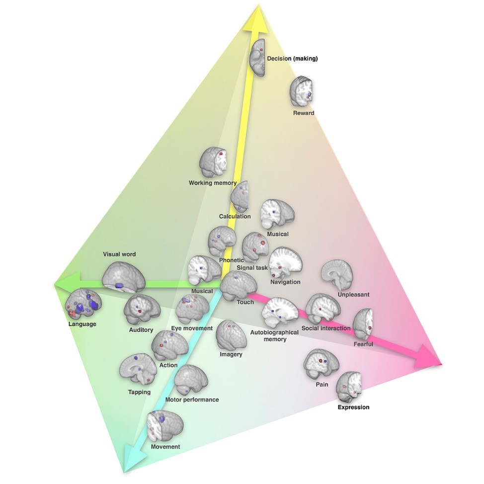Lateralisation der Gehirnhälften aufgeklärt18. April 2019 Einige zerebrale Prozesse finden vorzugsweise in der rechten oder linken Gehirnhälfte statt. Aber welche Funktionen und welche Seite? Ein französisch-italienisches Forschungsteam hat diese Frage nun beantwortet, indem es die erste vollständige Kartierung der zerebralen funktionellen Lateralisation erstellt hat. Mit Hilfe von funktionellen MRT-Daten, die seit mehr als 15 Jahren weltweit erhoben werden, haben Michel Thiebaut de Schotten, CNRS-Forscher am Institut du Cerveau et de la Moelle Epinière (AP-HP/CNRS/INSERM/Sorbonne Université), und Kollegen von der Universität Padua, Italien, die erste globale Karte der Lateralisierung der zerebralen Funktion erstellt. Danach erfolgen neben Wahrnehmung, Handlung und Emotionen auch Prozesse der Entscheidungsfindung eher in der rechten Hemisphäre, während die symbolische Kommunikation eher die linke Gehirnhälfte nutzt. Dabei konnten die Forscher vier Gruppen extrem lateralisierter Funktionen identifizieren: Die symbolische Kommunikation (z.B. Sprache, Lesen, Rechnen), die überwiegend in der linken Gehirnhälfte lokalisiert ist, sowie die Gruppen Wahrnehmung/Handlung/Emotionen/Entscheidung, die im rechten Frontallappenbereich stattfinden. Die Asymmetrie zwischen den Hemisphären für die Entscheidungsfindung war bsilang noch nicht beschrieben. Darüber hinaus zeigt die Studie, dass Verknüpfungen mit der anderen Hemisphäre umso schwächer sind, je stärker die entsprechende Funktion auf eine Gehirnhälfte konzentriert ist. Funktionelle Lateralisation im Gehirn, dargestellt in einem vierdimensionalen Raum entlang der symbolischen Kommunikationsachse (grün), der Wahrnehmungs-/Aktionsachse (cyan), der Emotionsachse (pink) und der Entscheidungsachse (gelb). (© Karoliset al./Nature Comm) Ihre Entdeckung bestätige auch die Idee, dass die Gehirnfunktionen mit zunehmender Größe des Gehirns lateralisiert wurden, um die Informationsverarbeitung zu optimieren, erklären die Forscher. Diese Optimierung erfolgte jedoch auf Kosten eines weiteren evolutionären Vorteils: der funktionellen Wiederherstellung nach Hirnschäden. Aufgrund der reduzierten Verbindungen zwischen den Hemisphären sei es für die unbeschädigte Hemisphäre schwieriger, die verlorenen Funktionen auszugleichen. Die Forscher wollen ihre Arbeit nun fortsetzen, indem sie Variationen in der Funktionslateralisierung zwischen Individuen untersuchen und beispielsweise testen, ob eine hohe Lateralisierung für eine Funktion in einer Person eine unterschiedliche Lateralisierung für andere Funktionen verursacht. Originalpublikation: Karolis V.R. et al.: The architecture of functional lateralisation and its relationship to callosal connectivity in the human brain. Nat Commun 2019;10(1):1417.