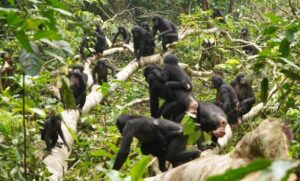 Make Love, not War17. November 2023 Ein erwachsenes Bonobo-Weibchen aus der Kokolopori-Population bei der Fellpflege eines jungen Männchens aus einer benachbarten Gruppe. Foto: © Martin Surbeck, Kokolopori Bonobo Research Project Dass Bonobos im Vergleich zu Schimpansen ein friedlicheres Sozialleben pflegen, war schon lange bekannt. Wissenschaftler konnten nun zeigen, dass die Zwergschimpansen in freier Wildbahn auch mit Mitgliedern fremder Gruppen kooperieren. Menschen gehen strategische Kooperationen mit Fremden ein und teilen ihre Ressourcen auch mit Personen außerhalb der eigenen sozialen Gruppe. Bislang galt prosoziales Verhalten gegenüber Nicht-Verwandten als rein menschliche Fähigkeit. Diese Annahme beruhte unter anderem auf Beobachtungen an Schimpansen, die Artgenossen anderer Gruppen teils sehr gewalttätig bekämpfen. Forschende des Deutschen Primatenzentrums – Leibniz-Institut für Primatenforschung (DPZ) und der Harvard University beobachteten jetzt das Sozialverhalten von freilebenden Bonobos (Pan paniscus), einer sehr nah mit Schimpansen und Menschen verwandten Art. Dabei fanden sie heraus, dass die Kooperation von Bonobos über den eigenen Sozialverband hinausgeht und sich auf die gesellschaftliche Zusammenarbeit mit anderen Gruppen erstreckt. Die Studie ist in „Science” erschienen. Friedliche Begegnung zwischen Bonobo-Gruppen in Kokolopori. Foto: © Liran Samuni, Kokolopori Bonobo Research Project Schimpansen und Bonobos sind unsere nächsten Verwandten. Es liegt daher nahe, vom Sozialverhalten der Tiere auf die Evolution menschlichen Verhaltens zu schließen. Allerdings hat man in vergangenen Studien fast ausschließlich Schimpansen untersucht, die äußerst feindselig und aggressiv reagieren, wenn sie auf eine andere Gruppe von Artgenossen treffen. Daraus wurde gefolgert, dass Gruppenfeindschaft und Gewalt zur menschlichen Natur gehören. Bei Bonobos, die wie Schimpansen in Gruppenstrukturen mit mehreren erwachsenen Tieren beider Geschlechter und ihrem Nachwuchs leben, sieht die Sache jedoch ganz anders aus: Sie reagieren in der Regel friedlich auf andere Artgenossen.Tolerante BonobosWenn verschiedene Bonobo-Gruppen aufeinandertreffen, wandern sie oft zusammen und fressen gemeinsam. Anders als bei Schimpansen beobachteten die Forschenden bei Bonobos keine Auseinandersetzungen, die tödlich endeten. „Beim Beobachten mehrerer Bonobo-Gruppen ist uns das bemerkenswerte Maß an Toleranz zwischen den Mitgliedern der verschiedenen Gruppen aufgefallen. Diese Toleranz ebnet den Weg für prosoziale kooperative Verhaltensweisen wie das Bilden von Allianzen und das Teilen von Nahrung über Gruppen hinweg. Das ist ein starker Gegensatz zu dem, was wir bei Schimpansen beobachten“, sagt Liran Samuni, Nachwuchsgruppenleiterin am DPZ und Erstautorin der Studie.Erschwerte FreilandforschungBonobos lassen sich in ihrem natürlichen Lebensraum nur schwer beobachten, da sie ausschließlich in abgelegenen, weitgehend unzugänglichen Teilen der Demokratischen Republik Kongo vorkommen. Harvard-Professor Martin Surbeck, der die Studie initiierte und die Forschungsstation im Kokolopori-Bonobo-Reservat mit aufbaute, erklärt: „Erst durch die enge Zusammenarbeit mit der lokalen Mongandu-Bevölkerung in Kokolopori, in deren angestammten Wäldern die Bonobos leben, wurden Studien über diese faszinierende Art möglich.“ Surbeck ergänzt: „Forschungsstätten wie Kokolopori tragen wesentlich dazu bei, unser Verständnis von Bonobos und unserer eigenen evolutionären Geschichte zu vertiefen und spielen auch eine wichtige Rolle bei deren Erhaltung.“Gezielte FreundlichkeitDie Forschenden konnten zeigen, dass Bonobos nicht wahllos zwischen den Gruppen interagieren. Stattdessen kooperieren sie mit einzelnen, bestimmten Mitgliedern anderer Gruppen, bei denen die Wahrscheinlichkeit größer ist, dass sie freundliche Gesten erwidern. So formen sich starke Bindungen zwischen prosozialen Individuen, auch über Gruppengrenzen hinweg. Ähnliche Bindungen sind auch ein Schlüsselaspekt für die Zusammenarbeit in menschlichen Gesellschaften. Es sei beeindruckend, an den Bonobos zu sehen, dass ständige Auseinandersetzungen zwischen benachbarten Gesellschaften nicht die einzige evolutionäre Erbschaft der Menschen sind, so die Autoren. Bonobos zeigen, dass der Mensch nicht einzigartig in seiner Fähigkeit ist, friedliche Beziehungen zwischen Gesellschaften aufzubauen.