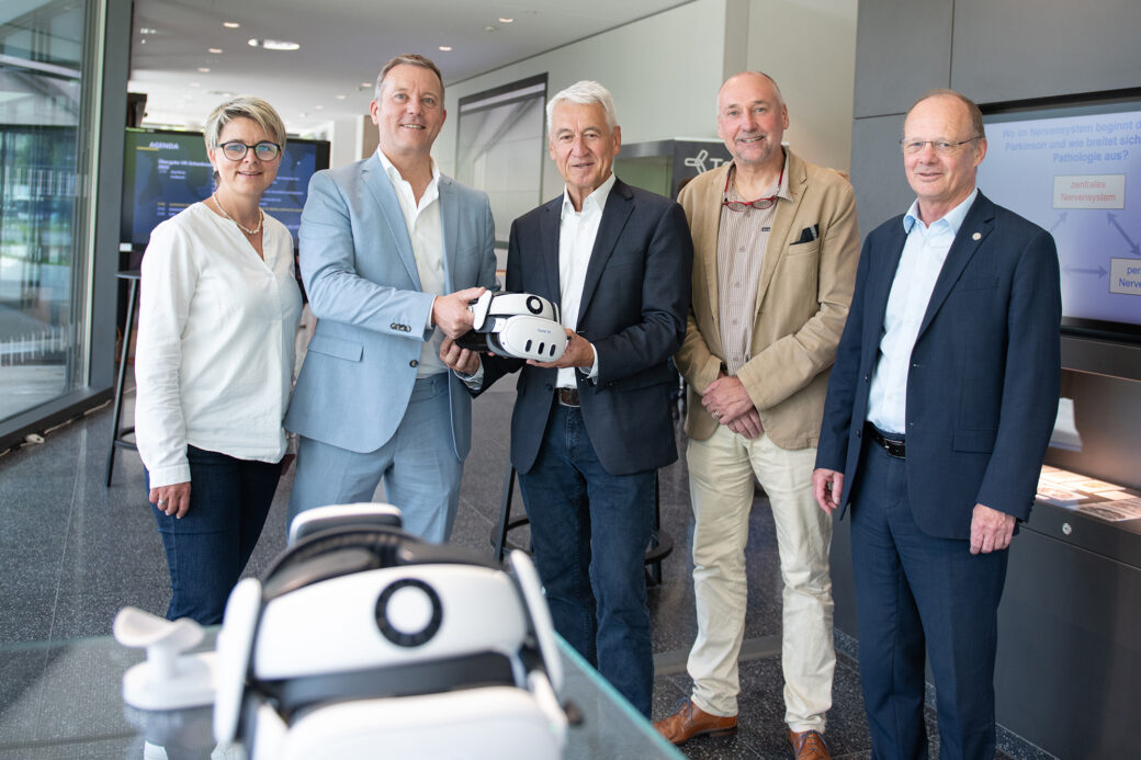 Medizinstudierende in Ulm trainieren Notfälle in der virtuellen Realität28. Juli 2025 Medizinstudierende trainieren im virtuellen Schockraum die Notfallbehandlung eines Patienten (Foto: Daniela Stang, Uni Ulm) Medizinstudierende der Uni Ulm können in einem virtuellen Schockraum trainieren und dort Behandlungsabläufe einüben. Zusammen mit der Firma TriCAT haben die Verantwortlichen eine hochmoderne, virtuelle Lehrnumgebung geschaffen, die sich am realen Trainings-Schockraum im Trainingshospital TTU der Medizinischen Fakultät orientiert. „Team-Timeout“, ruft Medizinstudent Jonas Mattig seinen Kommilitoninnen zu. Konzentriert hören die drei in den kommenden zehn Sekunden ihrem Team-Leader zu. Er fasst die erfolgten Behandlungen am virtuellen Patienten zusammen, fragt Vitalparameter ab und sagt die nächsten Schritte an. Was die Studierenden hinter ihren großen VR-Brillen sehen, ist die rein virtuelle 3-D-Kopie eines Schockraums, wie er in vielen Notaufnahmen existiert. Detailgetreu nachgebildet sind die medizinischen Geräte, ein Patient liegt auf der Untersuchungsliege, die anderen Teammitglieder sind als digitale Avatare zu sehen. Auf zwei großen Bildschirmen an den Wänden läuft die Simulation ebenfalls ab; Tutoren geben den Teilnehmenden Tipps und Ratschläge. „Für kompetente, reflektierte und empathische Ärzte von morgen“ „Ich bin froh, dass wir solche Notfallsituationen einüben und uns mit dem Stress realistisch vertraut machen können“, sagt Medizinstudentin Carmen Maier, die in der Simulation die Rolle der Anästhesistin bei der Versorgung eines verunfallten Motorradfahrers übernommen hat. Ihre Kommilitonin Jutta Karmann fügt hinzu: „Wir können unser erlerntes Wissen praktisch anwenden, das ist toll.“ Seit dem Sommersemester sind zwei 90-minütige-VR-Sessions im virtuellen Schockraum Teil der Medizin-Ausbildung an der Uni Ulm. „Mit diesem innovativen Lernsetting heben wir die realitätsnahe Ausbildung in der Medizin auf ein neues Niveau“, sagt Dr. Claudia Grab-Kroll, Leiterin des Geschäftsbereichs Studium und Lehre an der Medizinischen Fakultät. „Wir ergänzen und erweitern damit das Angebot unseres TTUs“, so Studiendekan Prof. Tobias Böckers, „Unsere Vision ist eine Lehre, die klassische und digitale Elemente verbindet – für kompetente, reflektierte und empathische Ärztinnen und Ärzte von morgen.“ „Neue Maßstäbe in der digitalen Lehre und Medizindidaktik“ Drei Jahre lang dauerte es von der ersten Idee bis hin zum fertigen virtuellen Schockraum. Die Entwicklung wurde vom Kompetenzzentrums eEducation in der Medizin an der Medizinischen Fakultät angestoßen und vom Ulmer Softwareunternehmen TriCAT realisiert, das auf virtuelle Lern- und Arbeitsumgebungen spezialisiert ist. „Die Universität Ulm setzt mit diesem Projekt neue Maßstäbe in der digitalen Lehre und Medizindidaktik“, betont Markus Herkersdorf, CEO des Unternehmens TriCAT. Ein derart umfassend virtualisierter Schockraum sei in dieser Form bislang einzigartig. Mit dieser Art der Ausbildung gehen Universität und Medizinische Fakultät den nächsten Schritt im Bereich Digitalisierung und KI, sind sich auch Universitätspräsident Prof. Michael Weber und Medizin-Dekan Prof. Thomas Wirth einig. v.l.: Claudia Grab-Knoll (Leiterin des Bereichs Studium und Lehre der Medizinischen Fakultät), Markus Herkersdorf (CEO TriCAT GmbH), Thomas Wirth (Dekan Medizin), Prof. Tobias Böckers (Studiendekan Medizin) und Michael Weber (Präsident der Uni Ulm). (Foto: Elvira Eberhardt/Uni Ulm) Training für mehr Sicherheit Behandlungsabläufe, Teamwork und Entscheidungen über Diagnose, Behandlung oder Pflege sollen die Studierenden in der virtuellen Umgebung trainieren können. „Fehler sind dabei ausdrücklich erlaubt und sogar erwünscht“, erklärt Tutor Felix Groß, selbst Medizinstudent im 10. Semester, der das Projekt in den vergangenen eineinhalb Jahren begleitet hat und jetzt auch darüber promoviert. „Die Studierenden erhalten von uns ein qualifiziertes Eins-zu-eins-Feedback und können so weiter an ihren Fähigkeiten arbeiten.“ Ein weiterer Vorteil der Simulation: deutlich mehr Studierende können verschiedene Szenarien üben – und so sicherer und kompetenter werden. „Ich würde gerne noch öfter und auch früher im Studium an solchen virtuellen Übungsszenarien trainieren. So kann ich mich besser auf Notfälle vorbereiten, die in der Realität selten vorkommen und deshalb kaum geübt werden können. Das gibt mir Sicherheit“, sagt Medizinstudentin Jutta Karmann, nachdem der virtuelle Patient erstversorgt ist. Für die Entwicklung der Lernumgebung virtueller Schockraum standen bislang rund 70.000 Euro aus der „Sonderlinie Medizin“ des Landes Baden-Württemberg zur Verfügung.