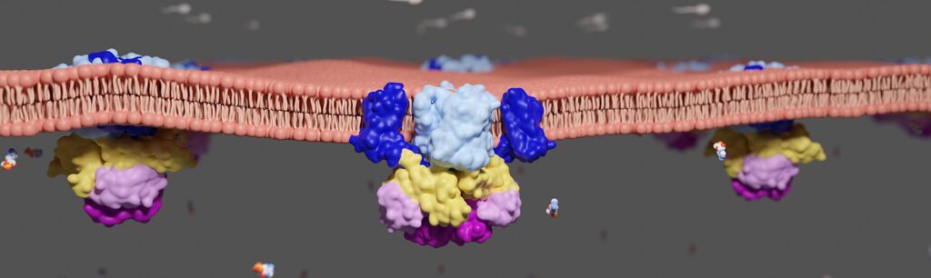 Membrantransporter sorgen für Mobilität von Spermienzellen27. Oktober 2023 Die drei Grundformen des Transports über die Zellmembran. Grafik: extender_01 – stock.adobe.com Ein neu entdeckter Mechanismus trägt zum besseren Verständnis der molekularen Grundlagen der Fortpflanzungsfähigkeit bei. Die Forscher veröffentlichten ihre Erkenntnisse im Fachjournal „Nature”. Für die Beweglichkeit von Spermienzellen sind Membrantransporter von entscheidender Bedeutung. Einem Forschungsteam des Biochemiezentrums der Universität Heidelberg (BZH) unter Leitung von Prof. Cristina Paulino ist es mithilfe der Kryo-Elektronenmikroskopie gelungen, erstmals den Aufbau eines solchen Transporters und dessen Mechanismus zu entschlüsseln. Nach Angaben der Wissenschaftler ermöglichen diese Erkenntnisse ein besseres Verständnis molekularer Grundlagen der Fortpflanzungsfähigkeit und könnten über lange Sicht dazu beitragen, neue Ansätze zur Behandlung von Fertilitätsstörungen und neue Methoden zur spezifischen Verhütung zu entwickeln.Spermienzellen unterscheiden sich in Aufbau und Funktion grundlegend von allen anderen Zelltypen. Letztlich besteht ihre einzige Aufgabe darin, die Eizelle aufzufinden und mit ihr zu verschmelzen. Ihre volle Aktivität erlangen Spermien erst in der sogenannten Kapazitation, das heißt bei der Reifung der Samenzellen. In einem der letzten Schritte dieses biochemischen Prozesses muss die Beweglichkeit der Spermien erhöht werden. Sind sie nicht oder lediglich in eingeschränktem Maße in der Lage, sich eigenständig zu bewegen, folgt daraus in der Regel eine verringerte Fruchtbarkeit oder vollständige Unfruchtbarkeit. Die Samenzellen können dann die Eizelle nicht erreichen und befruchten.Innerhalb dieses finalen Reifungsprozesses kommt speziellen Membrantransportern, die sich in der Hülle des Spermiums befinden, eine besondere Bedeutung zu. Sie sind dafür verantwortlich, zum Beispiel Nährstoffe in die Zelle hinein oder aus der Zelle heraus zu transportieren. „Bei Spermien hat der Transport von bestimmten Ionen in die Zelle hinein eine Erhöhung der Eigenbeweglichkeit zur Folge. Daher sind die für den Transport verantwortlichen Proteine direkt verbunden mit der Fertilität eines Spermiums und damit mit der Fruchtbarkeit eines männlichen Lebewesens“, betont Paulino. Ihre Forschungsgruppe beschäftigt sich am BZH mit Membrantransportern von Seeigeln, einem Modellsystem für die Forschung an Spermien. Membrantransporter auf molekularer Ebene entschlüsseltMithilfe der Kryo-Elektronenmikroskopie konnten die Wissenschaftler nun den Aufbau eines wichtigen Membrantransporters für Spermien auf molekularer Ebene entschlüsseln. Sie haben dabei unter anderem herausgefunden, wie dessen funktionelle Einheiten aussehen, wie diese zusammenhängen und wie sie miteinander interagieren. „Wir haben beobachtet, dass das entscheidende Protein wie ein Legospielzeug aus verschiedenen Baueinheiten aufgebaut ist. Diese Bauteile sind im Grunde von anderen Proteinen bekannt, wurden allerdings noch nie zusammenhängend beobachtet. Mithilfe dieser Informationen konnten wir zum ersten Mal den Mechanismus dieses Transporters entschlüsseln“, erläutert Dr. Valeria Kalienkova von der Universität Bergen (Norwegen), die zuvor Paulinos Forschungsgruppe angehört hat. Nach den Worten von Dr. Martin Peter, Mitglied im Team von Paulino, sind diese neuen Erkenntnisse hilfreich, um in einem nächsten Schritt potenzielle Substanzen zu entwickeln, die diesen Mechanismus beeinflussen. Damit ließen sich die Funktionen der Proteine möglicherweise aktivieren oder auch deaktivieren. Inwieweit sich diese Erkenntnisse auch auf den Mechanismus von humanen Spermien übertragen lassen, bedürfe weiterer Forschung, betonen die Forscher. Auf lange Sicht bärgen sie das Potenzial, neue Wege bei der Behandlung von Unfruchtbarkeit oder umgekehrt bei der absichtlichen Verhinderung einer Befruchtung der Eizelle durch Spermien zu eröffnen.Die Ergebnisse der Forschungsarbeiten sind in der Fachzeitschrift „Nature“ erschienen. Sie wurden mit dem Wechsel der Forschungsgruppe von den Niederlanden nach Deutschland zunächst an der Universität Groningen und anschließend am Biochemiezentrum der Universität Heidelberg durchgeführt. Gefördert wurden die Arbeiten von der Nederlandse Organisatie voor Wetenschappelijk Onderzoek, der Niederländischen Organisation für wissenschaftliche Forschung, sowie vom Schweizerischen Nationalfonds zur Förderung der wissenschaftlichen Forschung.(Universität Heidelberg / ms) Aufbau des neu entschlüsselten Proteins, das sich in der Hülle von Spermienzellen befindet. Mithilfe der Farben wurden die verschiedenen Einheiten des Proteins markiert, die sich wie ein Legospielzeug zu einem funktionstüchtigen Protein zusammensetzen. Grafik: Martin F. Peter