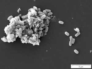 Mikrobe des Jahres 2023: das segensreiche Wirken von Bacillus subtilis29. Dezember 2022 Die Mikrobe des Jahres 2023, Bacillus subtilis, bildet Biofilme mit vielfältigen Strukturen. Foto: © Grüppen, Pelzer et al. Evonik, Halle Westfalen Bacillus subtilis gilt als gesundheitsfördernd und ist als Probiotikum im Handel, sodass jeder die Mikrobe des Jahres 2023 in der Apotheke kaufen kann. Als Nahrungsbestandteil ist die Mikrobe in Asien schon lange bekannt. In der Tierhaltung wird dieses Bakterium als Antibiotika-Alternative eingesetzt. Das mikrobielle Multitalent produziert zudem Vitamine und Enzyme im industriellen Maßstab, etwa für Waschmittel. Und sogar Risse im Beton heilt Bacillus subtilis. Die Vereinigung für Allgemeine und Angewandte Mikrobiologie (VAAM) wählte das Ausnahmebakterium zur zehnten Mikrobe des Jahres. Die Mikrobe des Jahres 2023, Bacillus subtilis, bildet dauerhafte Sporen, was für vielfältige Einsätze genutzt wird, etwa im Hygiene- und Tierfutterbereich. Scanning Electron Microscope 500x Abb.: © Evonik, Halle Westfalen Wer an einer Autobahnraststätte eine Toilettenpause einlegt, profitiert vom segensreichen Wirken von Bacillus subtilis. Denn diese harmlosen Bakterien bilden Dauerformen (Sporen), die sich leicht dem Spülwasser beisetzen lassen, wo sie unter guten Bedingungen schnell auskeimen und sich rasant vermehren. So verdrängen sie andere, meist langsamer wachsende Mikroorganismen und sorgen für hygienische Verhältnisse. Enzyme aus Bacillus subtilis verwenden wir beim Wäschewaschen: Amylasen, Proteasen, Lipasen aus Bacillus-Stämmen bauen die wichtigsten Verschmutzungen ab, nämlich Stärke, Eiweiße und Fette – und dies bei niedrigen Temperaturen, was Energie beim Waschen spart.Auch in der Ernährung spielt die Mikrobe des Jahres 2023 eine Rolle: Viele Menschen in Asien „vergären“ Sojabohnen mit Hilfe von Bacillus subtilis zu traditionellen Nahrungsmitteln, die reich an Mineralien und Vitaminen sind und eine gesundheitsfördernde Wirkung haben, beispielsweise das japanische Natto. Bacillus subtilis wird auch als Probiotikum eingesetzt, also als Mikroorganismus mit gesundheitlicher Wirkung. Die Sporenbildung trägt zu dieser Nutzung bei: Sporen ausgewählter Stämme überleben eine Hitzebehandlung (etwa von Tierfutter) und die saure Umgebung in Magen und Dünndarm. Im Körper hemmen sie Krankheitserreger, stärken die Darmbarriere und das Immunsystem.Gesundheitsfördernd – für Mensch und Tier Weil Bacillus subtilis robust ist und schnell wächst, setzt er effizient organische Substrate in biotechnologische Produkte um. Daher wird er für zahlreiche Produktionsprozesse genutzt. So stellt Bacillus subtilis Vitamin B2 (Riboflavin) her sowie Pantothensäure (Vitamin B5) und γ-Polyglutaminsäure – als Verdicker, Befeuchter oder Gefrierschutzmittel in der Nahrungsmittel- und Kosmetikindustrie. Bacillus subtilis kann auch die Verwendung von Antibiotika in der Tierhaltung verringern: Ein Bacillus-basiertes Probiotikum verhindert einen in der Geflügelhaltung häufigen Darminfekt. Die Bakterien stärken zudem das Wachstum von Pflanzen, schützen sie vor Krankheitserregern und helfen, Nährstoffe aus dem Boden aufzunehmen. Außerdem bildet Bacillus subtilis komplexe und robuste Biofilme – Zusammenschlüsse von Zellen, Zuckern und Proteinen, mit denen sie sich an Oberflächen heften können. Einen interessanten Einsatz von Bacillus-subtilis-Biofilmen verspricht die mögliche Anwendung bei der Alzheimer-Krankheit: Im Tiermodell schützen die Biofilme die Nervenzellen.Risse im Beton heilen Auch in der Bauwirtschaft hilft Bacillus subtilis. Im Alterungsprozess des Betons entstehen kleine Risse; Mikroben können diese Risse schließen: Sie bilden Carbonat(CO₃²⁻)-Ionen im Beton – eine wahre Meisterleistung in diesem stark alkalischen, sauerstoffarmen und heißen Milieu (beim Aushärten entstehen Temperaturen von 60°C). Sporen von Bacillus subtilis werden zur Selbstheilung von Beton eingesetzt: Das durch Risse eindringende Wasser lässt die Sporen auswachsen, die dann Carbonat bilden und so die Spalten schließen.Das Genom von Bacillus subtilis ist sehr gut dokumentiert. Es wurde künstlich auf einen MiniBacillus reduziert, um zu verstehen, welche Mindest-Komponenten für zelluläres Leben benötigt werden. Dies ist auch hilfreich für biotechnologische Anwendungen, um gezielt mikrobielle Stoffe ohne Nebenprodukte zu produzieren. Schon jetzt ist Bacillus subtilis in vielen Industriezweigen unverzichtbar, und viele weitere Innovationen sind zu erwarten.Text: Anja Störiko (VAAM)Über die Mikrobe des Jahres Die Mikrobe des Jahres weist auf die bedeutsame Rolle der Mikroorganismen für die Ökologie, Gesundheit, Ernährung und Wirtschaft hin. Die Vereinigung für Allgemeine und Angewandte Mikrobiologie (VAAM) wählt sie seit zehn Jahren aus, um auf die Vielfalt der mikrobiologischen Welt aufmerksam zu machen. Alle Informationen sind auch auf Englisch verfügbar unter https://microbeoftheyear.org/.Die VAAM ist Gründungsmitglied im VBIO und vertritt über 3400 mikrobiologisch orientierte Wissenschaftlerinnen und Wissenschaftler aus Forschung und Industrie. Die Bandbreite der Forschung reicht von Bakterien, Archaeen und Pilzen in allen Ökosystemen und in Lebensmitteln über Krankheitserreger bis hin zu Genomanalysen und industrieller Nutzung von Mikroorganismen, ihren Enzymen und Stoffwechselprodukten. http://mikrobe-des-jahres.de/ https://www.vaam.dehttps://www.vbio.de/