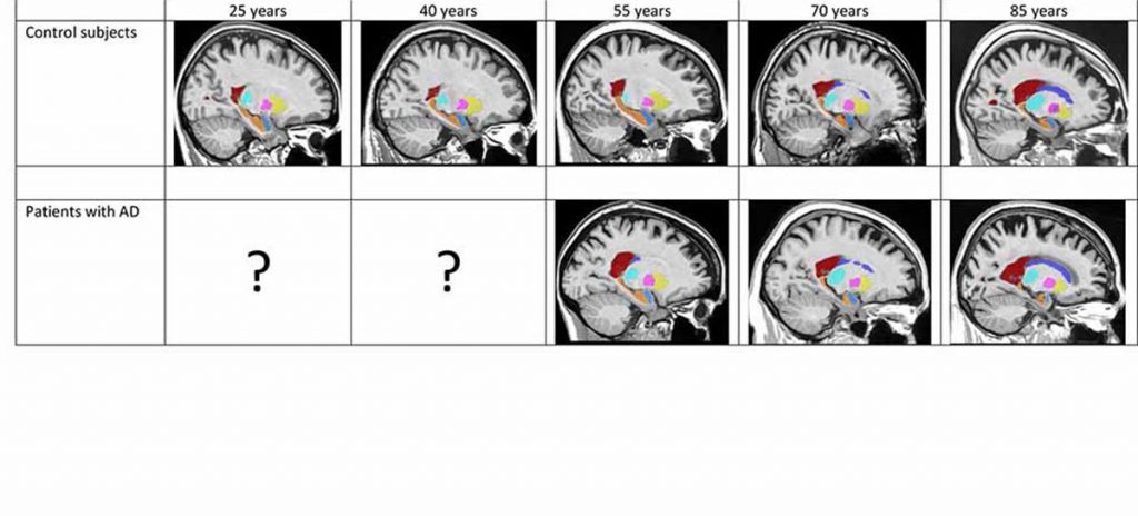Mit Big Data Alzheimer auf der Spur17. April 2019 Entwicklung der Gehirnatrophie bei späteren Alzheimer-Patienten im Alter von 40 Jahren. (© Pierrick Coupé/ LABRI – rashadashurov/Stock.adobe.com) Eine Webplattform, die mit Hirnscandaten Tausender Menschen jeden Alters und Gesundheitszustandes gespeist wurde, zeigt die Veränderungen in der Gehirnstruktur, die den Beginn der Alzheimer-Krankheit beim Menschen unter 40 Jahren markieren – lange bevor die typischen Anzeichen erkennbar werden. Die Früherkennung der Alzheimer-Demenz ist schwierig, da es an Langzeitdaten dazu mangelt, wie sich die Erkrankung über die Lebensspanne entwickelt. Um diese Wissenslücke zu schließen, wählte ein französisch-spanisches Forschungsteam einen neuen Ansatz: Durch die Analyse des Gehirnvolumens von mehr als 4000 Probanden über eine Big-Data-Plattform erstellten die Wissenschaftler Modelle der Lebenserwartung von Alzheimer-Patienten und nicht Erkrankten, um genau zu identifizieren, wie und wann Anomalien in den Gehirnstrukturen auftauchen. Im Mittelpunkt des Projektes steht volBrain: ein Big-Data-Processing Tool, das aus einer früheren französisch-spanischen Zusammenarbeit entstanden ist. Als die Technik zur automatischen Analyse von MRT-Aufnahmen entwickelten, beschlossen sie, „eine Open-Access-Webplattform einzurichten, damit möglichst viele Forscher weltweit kostenlos davon profitieren können”, berichtet die französische Hälfte des Duos. Seit 2015 laden Anwender auf allen Kontinenten Brain-Scan-Daten auf die Plattform, die bisher automatisiert verarbeitet wurden. Im Rahmen einer Studie, die den Zusammenhang zwischen Gefäßerkrankungen und Demenz untersuchte, bemerkten die Forscher, dass die Hippocampi der Probanden, die am Ende Alzheimer entwickelten, sieben Jahre vor der Diagnose Unterschiede im MRT aufwiesen. Da für diese Probanden keine Daten über die gesamte Lebensspanne vorliegen, war es den Forschern nicht möglich, die Entwicklung der beobachteten Pathologie zu verfolgen. “Wir haben diese Trajektorie aus Massen von Einzelbildern von Menschen jeden Alters rekonstruiert”, sagte Pierrick Coupé vom Laboratoire Bordelais de Recherche en Informatique in Bordeaux, Frankreich. “Dazu haben wir auf mehrere Open-Access-Datenbanken zurückgegriffen, um Daten von mehr als 4000 Kontrollpersonen und Patienten mit Alzheimer zu erhalten, die wir zu einer sehr großen Datenbank zusammengeführt haben.” Nachdem die Forscher die Gehirnstrukturvolumina aller Probanden mit dem volBrain-Tool gemessen hatten, fütterten sie die Daten in zwei separate Modelle. Erstens, ein Modell der “normalen” Gehirnentwicklung, das 2944 gesunde Probanden im Alter von 9 Monaten bis 94 Jahren widerspiegelt. Zweitens, ein Modell der durchschnittlichen Wirkung von Alzheimer auf das Gehirn, basierend auf Daten von 1385 Betroffenen im Alter von 55 bis 96 Jahren, gepaart mit Daten von 1877 jüngeren Probanden, die auch dem ersten Modell angehörten, unter der Annahme, dass die Kindheit und das frühe Erwachsenenalter beider Bevölkerungsgruppen wahrscheinlich ähnlich sind. Vergleiche der beiden Modelle zeigten, welche Gehirnbereiche bei den an Alzheimer erkrankten Menschen betroffen sind – und auch wann. Auf diese Weise identifizierte die Studie die bislang frühesten Biomarker, die die Entwicklung der Krankheit signalisieren, nämlich die Atrophie des Hippocampus im Alter von 40 Jahren, gefolgt von der Volumenabnahme der Amygdala im Alter von etwa 40 Jahren. Die Ergebnisse deuten auch auf eine Vergrößerung der Seitenventrikel im Alter von etwa 40 Jahren hin. Da eine solche Vergrößerung aber auch bei älteren gesunden Probanden auftrat, ist sie als Indikator für Alzheimer, insbesondere bei älteren Menschen, weniger aussagekräftig. rot = laterale Ventrikel, orange = Hippocampus blau = Amygdala Die Aufnahmen zeigen eine frühere und ausgeprägtere Atrophie des Hippocampus und der Amygdala sowie eine frühe Vergrößerung der lateralen Ventrikel bei Alzheimer-Patienten. (© Pierrick Coupé/ LABRI) Die Forscher glauben, dass ihre Ergebnisse die Kosten für Studien an Alzheimer-Medikamenten senken und damit deren Erforschung fördern könnte. Darüber hinaus bestätige die Studie den Nutzen der Entwicklung von volBrain – das derzeit nur der Grundlagenforschung dient – als diagnostisches Instrument. Tatsächlich biete Bid-Data-Plattform durch die Messung des Volumens der Gehirnstruktur eine wertvolle quantitative Grundlage, um Diagnosen abzusichern, “während Kliniker dazu neigen, nur qualitative visuelle Beurteilungen von MRTs vorzunehmen”, sagte Gwenaëlle Catheline vom Institut de Neurosciences Cognitives et Intégratives d’Aquitaine in Bordeaux, Frankreich. Das Forscherteam selbst untersucht weiter die Wirkung von Alzheimer auf die Gehirnstrukturen. Die neuesten Software-Entwicklungen des Teams, so Coupé, beinhalten “ein Modul, das die Teilbereiche des Hippocampus analysieren kann, um die Veränderungen zu verfolgen”. “Verschiedene Teile des Hippocampus scheinen von der Krankheit unterschiedlich betroffen zu sein”, erklärte Catheline. “Indem wir unsere Big Data-Studien auf einer feineren Analyseskala fortsetzen, hoffen wir, mehr über die Entwicklung dieser Pathologie zu erfahren”, schloss sie. Originalpublikation: Coupé P. et al.: Lifespan changes of the human brain in Alzheimer’s disease. Scientific Reports 2019:9(1):3998.