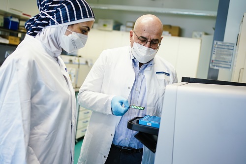 Moderne Krebsmedizin für Kinder in Jordanien25. April 2022 v.l.: Dr. Abdelghani Tbakhi, Leiter der Abteilung für Zelltherapie und angewandte Genomik am KHCC; Prof. Stefan Pfister Direktor KiTZ; Prinzessin Ghida Talal; Dr. Asem H. Mansour CEO & Direktor KHCC; Dr. Hikmat Abdel-Razeq, stv. Direktor und Leiter der Abteilung für innere Medizin; Dr. Amal Al-Omari, Direktorin Büro Wissenschaft und Forschungsentwicklung KHCC. Quelle Foto: King Hussein Cancer Foundation, KHCF Im Beisein der jordanischen Prinzessin und Schirmherrin Ghida Talal eröffnete das King Hussein Cancer Center (KHCC) in Jordanien gemeinsam mit dem Hopp-Kindertumorzentrum Heidelberg (KiTZ) seine neue Einheit zur molekularen Klassifikation von Hirntumoren und Bindegewebstumoren. Die Etablierung des neuen Verfahrens in Jordanien ist das Ergebnis der erfolgreichen Zusammenarbeit des KHCC mit Wissenschaftlern und Ärzten am KiTZ, am Universitätsklinikum Heidelberg (UKHD) und am Deutschen Krebsforschungszentrum, das im Jahr 2019 die Kooperation initiierte. Das KHCC gilt als führendes Krebszentrum im Nahen Osten. Die Behandlung von Krebs im Kindesalter ist dort ein wichtiger Schwerpunkt, weil es in Jordanien vergleichsweise viele junge Krebspatienten gibt. Das KiTZ ist eine gemeinsame Einrichtung des Deutschen Krebsforschungszentrums (DKFZ), des UKHD und der Universität Heidelberg (Uni HD). „Das King Hussein Cancer Center freut sich über die Partnerschaft mit dem DKFZ. Kooperationen mit internationalen Krebszentren spielen eine wichtige Rolle, um unsere Arbeit durch den Austausch von Erfahrungen und Informationen voranzubringen und Spitzentechnologien in der Forschung zu nutzen“, unterstrich Talal, Schirmherrin der King Hussein Cancer Foundation (KHCF) bzw. des KHCC. Mit dem Ziel, den wissenschaftlichen Austausch zur Entwicklung moderner Diagnose- und Therapiemöglichkeiten für Krebspatienten zu intensivieren, hatten das KHCC und das DKFZ im Jahr 2019 ein Memorandum unterzeichnet. Im Vordergrund dieser Kooperation stehen Krebserkrankungen von Kindern, Jugendlichen und jungen Erwachsenen, die in Jordanien eine besondere Rolle spielen. Initiiert durch das KiTZ konnte nun eine neue Einheit zur molekularen Tumorklassifikation am KHCC eingerichtet werden, die am 20. April im Beisein der Prinzessin eröffnet wurde. In Jordanien erkranken jedes Jahr 500 Kinder an Krebs. Im Verhältnis zur Einwohnerzahl sind das doppelt so viele wie in Deutschland, weil Jordanien eine sehr junge Bevölkerung hat. Zudem ist die Bevölkerung Jordaniens vergleichsweise eng miteinander verwandt. Daraus ergeben sich auch andere Ursachen und Verteilungsmuster bei Krebserkrankungen: Das Auftreten erblicher Krebserkrankungen bei Kindern ist dort mutmaßlich um ein Vielfaches höher, wobei genaue Zahlen noch fehlen. Familiäre Fälle machen hier vermutlich die Hälfte aller Darmkrebserkrankungen bei Kinder aus. In dem homogeneren Genpool treten auch bestimmte genetische Ursachen von Kinderkrebs zu Tage, die sich in anderen Teilen der Welt gar nicht untersuchen lassen. Solche seltenen genetischen Defekte treten in Jordanien bspw.beim Glioblastom auf. „Die Zusammenarbeit mit den Wissenschaftlern und Ärzten am KHCC ist eine große Bereicherung für uns und für krebskranke Kinder eine Chance, Behandlungsmöglichkeiten für seltene Tumoren zu finden, auch in ethnischen Gruppen, die typischerweise bei wissenschaftlichen Studien sehr stark unterrepräsentiert sind“, sagt Prof. Stefan Pfister, Direktor am KiTZ, Abteilungsleiter des DKFZ und Kinderonkologie am UKHD, der bei seinem Besuch am KHCC auch eine Vorlesung in Gedenken an den arabischen Biochemiker und Universalgelehrten Usama al-Khalidi hielt. Prof. Stefan Pfister, Direktor am KiTZ, wird von Prinzessin Ghida Talal für seine „Memorial Lecture“ in Gedenken an den arabischen Universalgelehrten Usama Al-Khalidi geehrt. Quelle Foto: King Hussein Cancer Foundation (KHCF) Das in Zusammenarbeit mit dem KiTZ, dem DKFZ und dem UKHD etablierte Verfahren für molekulare Tumorklassifikation am KHCC soll ermöglichen, bestimmte Tumor-Subgruppen bei Kindern besser abgrenzen und in Zukunft auch diagnostizieren zu können. Allein bei Tumoren des zentralen Nervensystems lassen sich schon mehr als 150 verschiedene Arten unterscheiden, die ganz unterschiedlich auf Strahlen- und Chemotherapien ansprechen. Die Variabilität ist groß, was die Standardisierung von Diagnoseverfahren erschwert. Das computerbasierte Verfahren, das nun lokal am KHCC installiert ist und zu einem diagnostisch nutzbaren Test weiterentwickelt werden soll, nutzt Methylierungen. Anhand dieser Muster können auch besonders seltene Tumorarten besser klassifiziert werden, um die erfolgversprechendste Behandlung einzusetzen. „Wir haben inzwischen schon viel Erfahrung in der Ausbildung von Kolleginnen und Kollegen in dieser Methode und überlegen derzeit sogar, ein Online-Tutorial dazu zu entwerfen“, sagt Prof. Felix Sahm, Leiter der Molekularen Neuropathologie am UKHD, der das Verfahren mit etablierte und die Installation am KHCC betreute. Dr. Abdelghani Tbakhi, Leiter der Abteilung für Zelltherapie und angewandte Genomik am KHCC besucht die Labore in Heidelberg. Olfat Ahmad, Wissenschaftlerin am KHCC nimmt derzeit am Clinician Scientist Programm des DKFZ in Heidelberg teil. Quelle Foto: U. Anspach/KiTZ „Wir freuen uns sehr über diesen erfolgreichen Start unserer Kollaboration. Die Etablierung des Methylierungsservices ist eines von vielen Projekten, die wir gemeinsam mit dem Team um Stefan Pfister und anderen Kollegen vom DKFZ umsetzen möchten. Unser Ziel ist es, modernste Genomik und Epigenomik-Assays auszubauen und unsere Forschungskooperation zu fördern“, sagt Dr. Abdelghani Tbakhi, Leiter der Abteilung für Zelltherapie und angewandte Genomik am KHCC. „Wir setzen sehr stark auf die internationale Zusammenarbeit, die wir auch durch gegenseitige Besuche und die gemeinsame Ausbildung von Experten weiter stärken möchten“, s