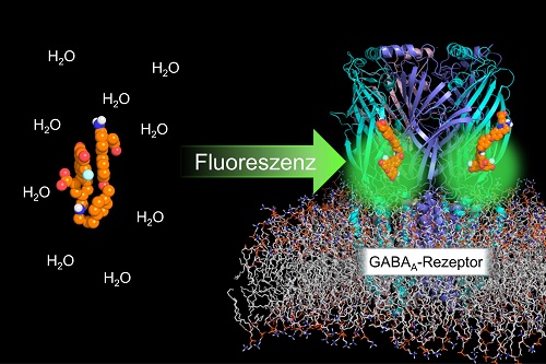 Molekulare Lichtschalter erlauben Einblicke in das zentrale Nervensystem1. Juni 2022 Schematische Lage der GABAA-Rezeptoren in den Synapsen des Menschen. (Abb.: © Nadja K. Singer) Fluoreszierende Farbstoffe spielen insbesondere in der pharmazeutischen Forschung eine wichtige Rolle. Durch sie lassen sich biologische Strukturen in Flüssigkeiten, Zellen oder Geweben sichtbar machen. Ein Team um die Theoretische Chemikerin Leticia González von der Universität Wien und die Neuropharmakologin Margot Ernst von der Medizinischen Universität Wien hat nun die Wirkungsweise eines fluoreszierenden Farbstoffes für die Neurowissenschaft untersucht. Seit Langem versucht die Pharmazie, Menschen mit neuropsychiatrischen Problemen mit Medikamenten zu helfen. Bedingt durch die Komplexität des Gehirns bleiben aber immer noch viele Fragen offen. Bei Erkrankungen wie Angststörungen, Epilepsie, Schizophrenie und Autismus ist bekannt, dass GABAA-Rezeptoren eine wichtige Rolle spielen. Diese Proteine finden sich in der Zellmembran von Nervenzellen im Gehirn und im Rückenmark. Von den vielen Subtypen dieser Rezeptoren tragen viele zur Hemmung des zentralen Nervensystems bei. “Um gezielt eine angstlösende, muskelrelaxierende oder sedierende Wirkung zu erzielen, kann die Funktionsweise der GABAA-Rezeptoren durch Medikamente gesteigert werden”, erklärt Nadja K. Singer, Erstautorin der Studie und Doktorandin des FWF-geförderten interdisziplinären Doktoratskollegs “Molecular Drug Targets” (MolTag): “Aus dem gleichen Grund werden wir übrigens auch durch Alkoholkonsum müde.” Medikamentenentwicklung mithilfe fluoreszierender Farbstoffe Um diese Art von Medikamenten zu verbessern und um neue zu entwickeln, bedienen sich Wissenschaftler der Hilfe fluoreszierender Farbstoffe. Diese Moleküle kann man unter Lichteinfluss mit einem Schalter vergleichen. Die vorliegende Studie untersucht ein spezielles Molekül, welches in Lösung dunkel ist (“Licht aus”), gebunden an einen GABAA-Rezeptor jedoch grün fluoresziert (“Licht an”). Der untersuchte Farbstoff konkurriert bei der Bindung an den Rezeptor mit dem natürlichen Neurotransmitter. Medikamente mit einem positiven Einfluss auf GABAA-Rezeptoren steigern die Affinität des Neurotransmitters und verringern daher die Fluoreszenz. Durch ein Mikroskop lässt sich leicht beobachten, wie das Licht, das der Farbstoff ausstrahlt, ausgeschaltet wird. Deshalb eignet sich das Molekül sehr gut, um potenzielle neue Medikamente auf ihre Wirkung auf GABAA-Rezeptoren zu untersuchen. “Schalter-Mechanismus” eines Farbstoffs geklärt Obwohl der Farbstoff schon vor einigen Jahren beschrieben wurde, war der genaue Mechanismus des Ein- bzw. Ausschaltens der Fluoreszenz bisher noch unklar. In der vorliegenden Studie haben die Wissenschaftler nun mithilfe von Computersimulationen herausgefunden, dass das Geheimnis in der räumlichen Anordnung des Farbstoffes liegt: In Lösung ist das Molekül zusammengefaltet wie ein Blatt Papier. Bei der Bindung an den Rezeptor faltet es sich auf, was schlussendlich die Fluoreszenz ermöglicht, welche in der zusammengefalteten Form unterdrückt ist. Molekularer Lichtschalter: In Wasser bleibt er dunkel, gebunden am GABAA-Rezeptor fluoresziert er grün. (Abb.: © Nadja K. Singer) Diese Ergebnisse bilden den Forschern zufolge die Grundlage für die Entwicklung und Verbesserung weiterer Farbstoffe und leisten somit einen wichtigen Beitrag zur pharmazeutischen Forschung.