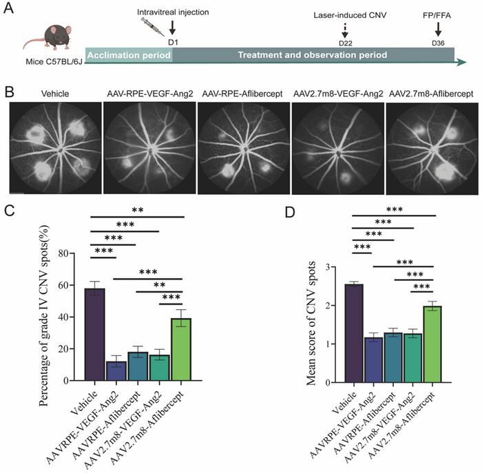 nAMD: Neuartige Gentherapie zeigt vielversprechende Ergebnisse11. August 2025 Die neue AAV-Gentherapie (XMVA09) konnte im Tiermodell zeigen, dass sie Neovaskularisationen und Gefäßleckage wirksam untrdrückt.Symolbild.©Joel bubble ben-stock.adobe.com In einer chinesischen Studie wurde ein neuer vielversprechender Gentherapieansatz zur Behandlung von neovaskulärer altersbedingter Makuladegeneration (nAMD) vorgestellt. Die derzeitige Erstlinienbehandlung für die nAMD sind Anti-VEGF-Wirkstoffe, die gute therapeutische Ergebnisse gezeigt haben. Trotz ihrer Wirksamkeit erfordern Anti-VEGF-Therapien häufige intravitreale Injektionen und regelmäßige Klinikbesuche, um ihre Vorteile aufrechtzuerhalten. Das bringt erhebliche Herausforderungen für die langfristige Compliance der Patienten und die Wirksamkeit in der Praxis mit sich. Daher müssen nach Meinung der Studienautoren neue langfristige Therapiestrategien für nAMD weiter untersucht werden. Neuer AAV-Vektor zielt auf VEGF-A und ANG-2 ab Adeno-assoziierte Viren (AAV) sind aufgrund ihrer Sicherheit und ihrer Fähigkeit, eine langfristige Transgenexpression in Netzhautzellen zu gewährleisten, ein weit verbreitetes Werkzeug für die Genübertragung in der okulären Gentherapie. Diese Forschungsarbeit beleuchtet die Entwicklung eines neuartigen, gentechnisch veränderten AAV-Vektors (AAV-RPE) sowie eines bispezifischen Antikörpers (VEGF-Ang2). Dieser zielt sowohl auf den vaskulären endothelialen Wachstumsfaktor A (VEGF-A) als auch auf Angiopoietin-2 (ANG-2) ab, zwei wichtige Auslöser für abnormales Blutgefäßwachstum und -leckagen bei nAMD. Eine einzige intravitreale Injektion der AAV-Gentherapie (XMVA09) trägt zur langfristigen Expression des therapeutischen Antikörpers speziell in RPE-Zellen bei. Neovaskularisation und Gefäßleckage werden im Tiermodell wirksam unterdrückt Präklinische Studien haben gezeigt, dass XMVA09 die Neovaskularisation und Gefäßleckage in CNV-Modellen sowohl bei Mäusen als auch bei nicht-menschlichen Primaten (NHPs) wirksam unterdrücken kann. Zudem weisen XMVA09, AAV-RPE-Aflibercept und AAV2.7m8-VEGF-Ang2 im Vergleich zu AAV2.7m8-Aflibercept (ADVM022) in Maus-CNV-Modellen einen signifikanten Vorteil hinsichtlich der therapeutischen Wirksamkeit auf (Abb.). Wirksamkeit der AAV-RPE- und AAV2.7M8-bezogenen Gentherapie bei laserinduzierten CNV-Läsionen bei Mäusen.Abbildung.© Yuan Cai et al. (2025) Auch ist die Gentherapie sicher und zeigt keine Anzeichen für eine Netzhauttoxizität sowie eine geringe Immunogenität wie die NHP-Studien ergeben haben. Darüber hinaus hat eine von Forschern initiierte klinische Studie gezeigt, dass die Gentherapie gut verträglich ist und nAMD-Patienten erhebliche klinische Vorteile gewährt. Fazit und Zukunftsaussichten Insgesamt bietet diese neue Gentherapie den Autoren zufolge eine sichere und wirksame Behandlungsoption für nAMD. Das Forschungsteam plant nun, größere klinische Studien durchzuführen, um die Sicherheit und Wirksamkeit zu bestätigen. Bei Erfolg könnte dieser Ansatz auch für andere durch Angiogenese verursachte Netzhauterkrankungen angepasst werden. (BIERMANN/SaS)