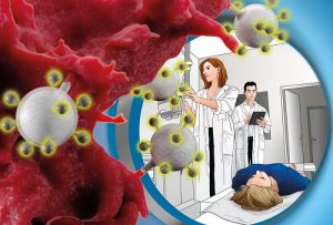 Nanopartikel gezielt zum Tumor lenken25. Februar 2020 Ein Team um Forscher des HZDR hat bioverträgliche Nanopartikel mit einem Antikörperfragment ausgestattet, das gezielt an ein Protein bindet, das von bestimmten Krebszellen im Übermaß produziert wird. Foto: HZDR / Juniks / iStockphoto, johnkellerman Ein interdisziplinäres Forscherteam vom Helmholtz-Zentrum Dresden-Rossendorf (HZDR) und der FU Berlin hat Nanopartikel hergestellt, die regelrecht auf bestimmte Krebszellen abgerichtet sind. Sie können die Tumorzellen aktiv ansteuern und in bildgebenden Verfahren sichtbar machen. Sowohl in der Petrischale als auch im Tiermodell ließen sich die Nanoteilchen effektiv zum Tumor lenken. Perspektivisch lässt sich das neue Verfahren mit therapeutischen Ansätzen koppeln. Ausgangspunkt für die HZDR-Forscher sind winzige bioverträgliche Nanopartikel aus sogenannten dendritischen Polyglycerolen, die als Trägermoleküle dienen. „Diese Partikel können wir modifizieren und verschiedene Funktionen einführen“, erläutert Dr. Kristof Zarschler, wissenschaftlicher Mitarbeiter am HZDR-Institut für Radiopharmazeutische Krebsforschung. „Wir bringen beispielweise auf dem Partikel ein Antikörperfragment an, das spezifisch an die Oberfläche von Krebszellen bindet. Dieses Antikörperfragment ist unsere zielsuchende Einheit, denn es leitet die Nanopartikel zu den Krebszellen.“ Im Fadenkreuz der modifizierten Nanopartikel befindet sich ein Antigen, das als EGFR (Epidermaler Wachstumsfaktor-Rezeptor) bekannt ist. Dieses Protein wird bei bestimmten Krebsarten wie etwa Brustkrebs oder Kopf-Hals-Tumoren im Übermaß produziert – die Zellen präsentieren es zuhauf auf ihrer Oberfläche. „Wir konnten nachweisen, dass unsere Nanopartikel durch das verwendete Antikörperfragment bevorzugt mit diesen Krebszellen interagieren“, bestätigt Dr. Holger Stephan, Gruppenleiter „Nanoskalige Systeme“ am HZDR. „In Kontrollversuchen mit gleichartigen Nanopartikeln, die jedoch mit einem unspezifischen Antikörper beladen waren, reicherten sich deutlich weniger Nanopartikel an den Tumorzellen an.“ Intensiv untersuchten die Wissenschaftler das Verhalten der Nanopartikel sowohl in Zellkulturen als auch im Tiermodell. Dazu verliehen sie den Nanopartikeln zusätzlich Reporter-Eigenschaften, wie Kristof Zarschler erläutert: „Wir haben dabei zwei sich ergänzende Möglichkeiten genutzt. Auf den Nanopartikeln haben wir neben dem Antikörper ein Farbstoff-Molekül sowie ein Radionuklid angebracht. Das Farbstoff-Molekül fluoresziert im Nah-Infrarot, sodass das emittierte Licht sogar durchs Gewebe dringt und unter einem entsprechenden Mikroskop sichtbar wird. Damit verrät uns der Farbstoff, wo die Nanopartikel genau sind.“ Das Radionuklid, Kupfer-64, hat einen ähnlichen Zweck. Es sendet Strahlung aus, die Detektoren eines PET-Geräts (Positronen-Emissions-Tomographie) registrieren. Aus den Signalen lässt sich anschließend ein dreidimensionales Bild erstellen, das die Verteilung der Nanopartikel im Organismus sichtbar macht. Vorteilhafte Eigenschaften im lebenden Organismus Mit diesen bildgebenden Verfahren konnten die Forscher beispielsweise zeigen, dass bei Mäusen zwei Tage nach Gabe der Nanopartikel eine maximale Anreicherung im Tumorgewebe erreicht wird. Anschließend werden die markierten Nanoteilchen über die Niere wieder ausgeschieden, ohne den Körper zu belasten. „Sie haben offenbar optimale Größe und Eigenschaften“, sagt Holger Stephan. „Kleinere Teilchen sind schon nach wenigen Stunden aus dem Blutkreislauf gefiltert und können daher nur kurze Zeit wirken. Wenn die Partikel hingegen zu groß sind, werden sie in Milz, Leber oder Lunge angereichert und nicht mehr über Niere und Blase aus dem Körper entfernt.“ Im Zusammenspiel der Nanopartikel – die exakt drei Nanometer groß sind – und angehefteten Antikörperfragmenten lassen sich offenbar die Verteilung und Verweildauer des Antikörpers im Organismus sowie dessen Ausscheidungsweg positiv beeinflussen. In künftigen Experimenten wollen die HZDR-Forscher testen, ob sich ihr Trägersystem mit anderen Komponenten ausstatten lässt. Kristof Zarschler beschreibt die Pläne: „Man kann diese Nanopartikel beispielsweise mit einem Wirkstoff beladen. Das würde uns erlauben, ein Arzneimittel ganz gezielt zum Tumor zu bringen. Dabei könnte es sich beispielsweise um ein therapeutisches Radionuklid handeln, das die Tumorzellen zerstört.“ Denkbar ist auch, die Nanopartikel mit anderen zielsuchenden Antikörperfragmenten auszustatten, um weitere Tumorarten ins Fadenkreuz zu nehmen. Publikation:K. Pant, C. Neuber, K. Zarschler, J. Wodtke, S. Meister, R. Haag, J. Pietzsch, H. Stephan: Active targeting of dendritic polyglycerols for diagnostic cancer imaging, in Small, 2019.