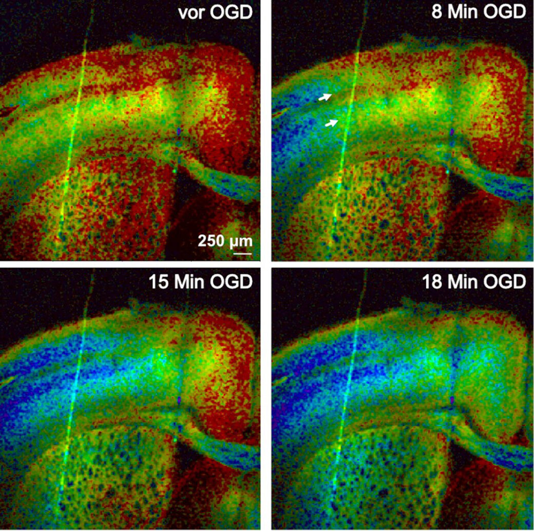 Neue Einblicke in den Energiehaushalt von Nervenzellen des Gehirns12. Mai 2025 Mithilfe hochauflösender Fluoreszenz-Mikroskopie konnten die Forschenden live beobachten, wie sich der ATP-Gehalt in einzelnen Nervenzellen während Depolarisationswellen verändert. (Symbolbild) | (Quelle: Foto: Colourbox) Ein Forschungsteam am Carl-Ludwig-Institut für Physiologie der Universität Leipzig hat erstmals gezeigt, wie sich der Energiegehalt einzelner Nervenzellen im Gehirn während Depolarisationswellen verändert. Die Ergebnisse liefern wichtige Grundlagen für das Verständnis des Energiestoffwechsels bei akuter Mangeldurchblutung, wie sie etwa beim Schlaganfall auftritt. Adenosintriphosphat, kurz ATP, ist der zentrale Energieträger in Nervenzellen. In der aktuellen Studie nutzten Wissenschaftler des Carl-Ludwig-Instituts für Physiologie eine eigens entwickelte Mauslinie, deren Nervenzellen im Gehirn ein fluoreszierendes Sensorprotein produzieren. Die Nervenzellen zeigten dadurch, wieviel Energie sie gerade zur Verfügung haben. Mithilfe hochauflösender Fluoreszenz-Mikroskopie konnten die Forschenden live beobachten, wie sich der ATP-Gehalt in einzelnen Nervenzellen während Depolarisationswellen verändert. Die Depolarisationswellen im Gehirn, bei der sich die Nervenzellen ähnlich wie bei einem Kurzschluss nacheinander entladen, werden mit einem fortschreitenden Gewebeschaden beim Schlaganfall in Verbindung gebracht. Bisher gab es keine Studien dazu, wie sich der zentrale Energieträger ATP in individuellen Nervenzellen während dieser Depolarisationswellen verändert. Dargestellt sind farbkodierte Signale des ATP-Sensors‚ den die Nervenzellen der Mäuse exprimieren. Die Bilder zeigen in zeitlicher Folge den ATP-Abfall im Zuge einer Depolarisationswelle ausgelöst durch Sauerstoff- (O2) und Glukose-Deprivation (OGD). (Quelle: © Dr. Karl Schoknecht) „Unsere Studie liefert erstmals hochauflösende Einblicke, wie und wann Nervenzellen im Gehirn bei akuter Mangelversorgung, wie bei einem Schlaganfall, ihre Energiereserven verlieren“, erklärt Dr. Karl Schoknecht vom Carl-Ludwig-Institut für Physiologie, Erstautor der Studie. „Interessanterweise erschöpfen sich die Energiereserven nicht gleichmäßig, sondern im Zuge der Depolarisationswellen. Das Modell soll in weiteren Projekten genutzt werden, um therapeutische Ansätze bei Schlaganfällen zu testen, die den massiven Energieverlust bei Depolarisationswellen verhindern sollen“, berichtet der Wissenschaftler der Medizinischen Fakultät. Die Untersuchungen in der aktuellen Studie zeigen: Schon im gesunden Gewebe führen diese Wellen zu einem kurzfristigen Abfall des ATP-Gehalts. Besonders deutlich wurde der Effekt der Depolarisationswellen unter Bedingungen von Energiemangel – wie sie beim Schlaganfall herrschen. Hier beschleunigten sie den ATP-Abfall massiv, sodass sich die Energiereserven der Nervenzellen erschöpften. Selbst nach dem Auftreten von Depolarisationswellen sind Nervenzellen grundsätzlich noch in der Lage, ihre ATP-Reserven wieder aufzufüllen, sofern ihnen erneut Glukose und Sauerstoff zugeführt werden. Der Zusammenbruch des Energiestoffwechsels ist also prinzipiell noch umkehrbar. Für die Untersuchungen simulierte das Team Schlaganfall-ähnliche Bedingungen, indem sie Glukose und Sauerstoff in der Nährlösung entfernten. Parallel wurden die Depolarisationswellen mit elektrophysiologischen Methoden erfasst. Den Forschenden zufolge sind die Ergebnisse grundlagenwissenschaftlicher Natur.