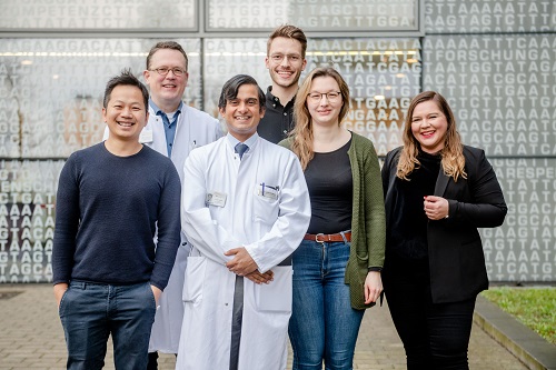 Neue Methode bringt genauere Informationen zu Leukämien17. Februar 2022 Genetische Analysen sind Standard, um die Ursache von Leukämien zu ergründen. Foto: © RUB, Marquard Genetische Analysen sind Standard, um die Ursache von Leukämien zu ergründen und die optimale Behandlungsstrategie abzuleiten. Ein Forschungsteam aus Bochum und Essen hat eine neue Methodik untersucht, die dabei mehr Genauigkeit bietet. Die optische Genomkartierung brachte in zwei Dritteln aller untersuchten Fälle genauere Informationen zu den genetischen Grundlagen der Krankheit hervor. Das Team unter Leitung von Prof. Huu Phuc Nguyen, Inhaber des Lehrstuhls für Humangenetik der Ruhr-Universität Bochum (RUB), und Prof. Roland Schroers, Leiter der Abteilung Hämatologie, Onkologie, Stammzell-/Immuntherapie im Universitätsklinikum Knappschaftskrankenhaus, berichtet in der Zeitschrift “International Journal of Cancer” vom 22. Januar 2022 darüber.Laser bringt Moleküle zum LeuchtenFür die optische Genomkartierung werden sehr lange Moleküle des menschlichen Erbguts bspw. aus routinemäßig abgenommenen Blutproben oder Knochenmarkmaterial von Patienten gewonnen. Diese langen DNA-Moleküle werden an über einer halben Million unterschiedlichen Positionen des gesamten menschlichen Erbguts mit leuchtenden Farbstoffmolekülen markiert und auf einem speziellen Chip durch sehr dünne Nanokanäle geleitet. Das RUB-Team der Humangenetik v.l.n.r. Prof. Huu Phuc Nguyen, Prof. Roland Schroers, Dr. Deepak Vangala, Marco Tembrink, Dr. Verena Nilius-Eliliwi, Dr. Wanda Gerding. Foto: ©RUB, Marquard Während sich die DNA-Moleküle durch die Nanokanäle bewegen, werden sie mit einem Laser zum Leuchten gebracht und mithilfe eines Mikroskops fotografiert. Die Bilder des gesamten Genoms werden dann bioinformatisch analysiert. „Dabei geht es darum, Veränderungen in Regionen, welche für die Entstehung von Krebs bedeutend sind, ausfindig zu machen und auszuwerten“, erläutert Dr. Wanda Gerding aus der Bochumer Humangenetik.Die optische Genomkartierung bietet somit die Möglichkeit, bekannte und für die Klassifikation und Therapie von Leukämien wichtige Regionen genomweit mit nur einer Methodik zu untersuchen. Darüber hinaus erlaubt sie es, auch neue relevante genomische Bereiche und neue Gene zu identifizieren.Zuverlässige und erweiterte ErgebnisseIn der aktuellen Studie hat das Team das neue Verfahren im Vergleich zur derzeitigen Standarddiagnostik bei Patienten mit akuter myeloischer Leukämie sowie myelodysplastischen Syndromen untersucht. Die Forschenden konnten zeigen, dass die neue Methode in 93 Prozent der untersuchten Proben mit den Ergebnissen aus einer klassischen Untersuchung, dem zytogenetischen Karyogramm der Träger des Erbguts, übereinstimmt. In 67 Prozent der Proben konnten sogar erweiterte gesamtgenomische Informationen abgeleitet werden.Die neue Methode kann somit Strukturveränderungen im Genom nicht nur genauer nachweisen, sondern hat auch das Potenzial, ein wichtiger Baustein der Routinediagnostik für Patienten mit Leukämien zu werden. „Als weiteres Plus können der Genomforschung Daten und neue Erkenntnisse für weitere Forschungsarbeiten im Bereich der Tumorbiologie bereitgestellt werden“, so Gerding.KooperationspartnerFür das Projekt kooperierten die Abteilung Humangenetik der RUB unter Leitung von Nguyen mit der Hämatologie, Onkologie, Stammzell- und Immuntherapie des Knappschaftskrankenhauses Bochum unter Leitung von Schroers, zugehörig zum Zentrum für Hämatoonkologische Erkrankungen (ZHOE) der RUB, und Prof. Peter Reimer aus der Hämatologie, Internistischen Onkologie und Stammzelltransplantation der Evangelischen Kliniken Essen-Mitte. Die enge wissenschaftliche Zusammenarbeit beider Fachabteilungen erfolgte durch Gerding, Dr. Deepak Vangala, Dr. Verena Nilius-Eliliwi (gefördert durch das „Female Clinical Scientist“-Programm der Medizinischen Fakultät der RUB) und den Promotionsstudenten Marco Tembrink (Humangenetik, mit Förderung der Promotionsarbeit im Rahmen des strukturierten Promotionsprogramms (FoRUM RUB)). Für das Projekt wurde von der Ethik-Kommission der Medizinischen Fakultät der RUB ein positives Votum ausgesprochen (Nr. 20-7063).