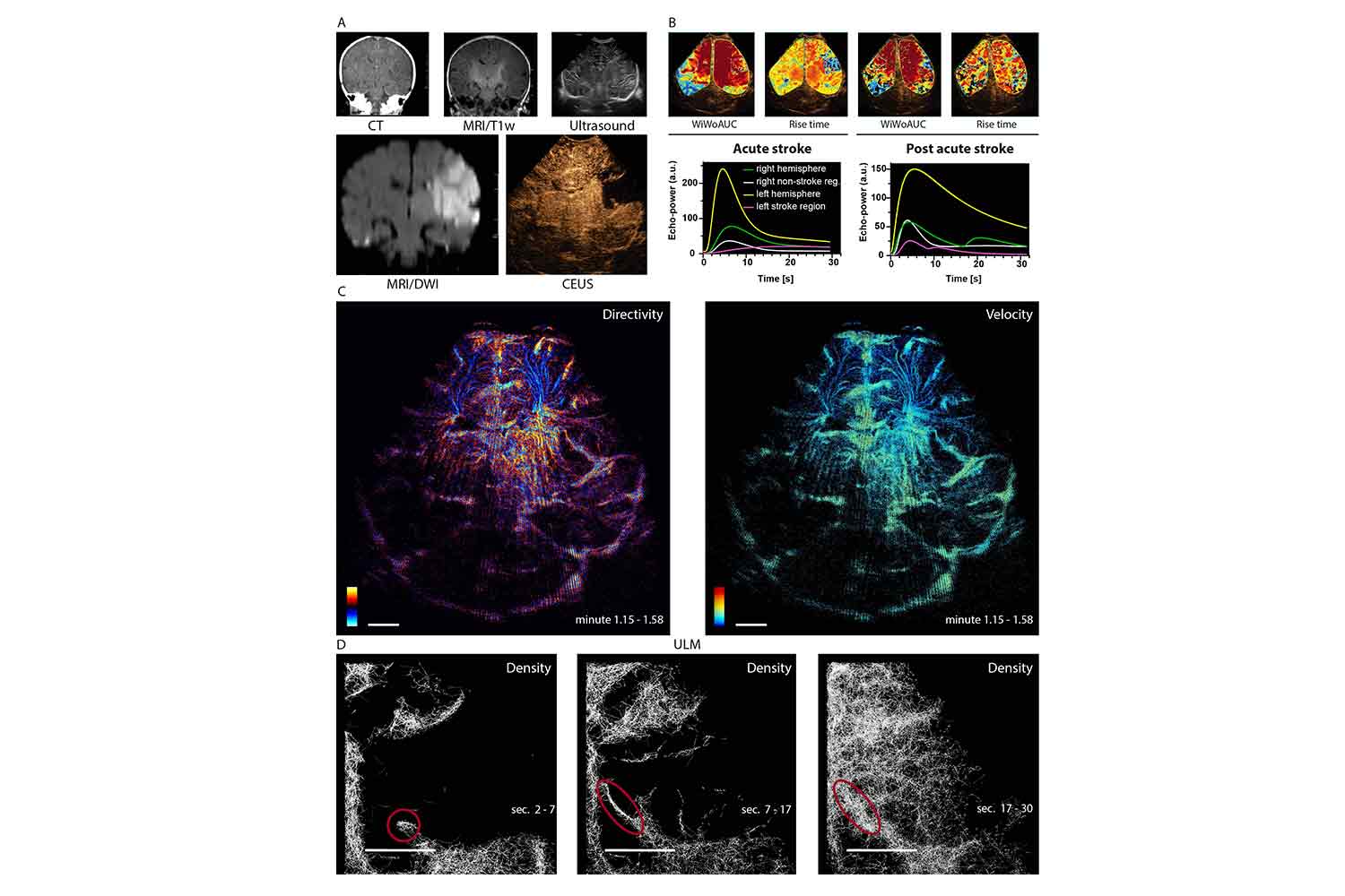 Neue Ultraschall-Methode gewährt detaillierte Einblicke ins Gehirn von Neugeborenen25. November 2024 Die Fontanelle gewährt Forschenden Einblick ins Gehirn. (Foto: © demphoto – stock.adobe.com) Neuartige Hochgeschwindigkeits-Ultraschallgeräte erlauben in Kombination mit einer KI-gestützten Bildanalyse hoch aufgelöste Einblicke ins Säuglings-Gehirn. Forschende der Friedrich-Alexander-Universität Erlangen-Nürnberg (FAU) wollen diese Methode weiterentwickeln und mögliche Einsatzgebiete untersuchen. Manche Säuglinge erleiden während oder direkt nach der Geburt einen Schlaganfall. Die Diagnose erfolgt bislang meist mit einem Magnetresonanz-Tomographen (MRT). Doch die MRT-Untersuchung von Neugeborenen ist besonders herausfordernd; zudem verfügen nicht alle Krankenhäuser über ein derartiges Gerät. Die neue Ultraschall-Technologie könnte sich den Forschenden zufolge zumindest für eine erste schnelle Abklärung eignen und damit auch die Einleitung einer passenden Therapie beschleunigen. „Die Fontanelle erlaubt es uns, das Gehirn von Säuglingen per Ultraschall zu untersuchen“, erklärt PD Dr. Dr. Adrian Regensburger, Oberarzt in der Kinder- und Jugendklinik am Uniklinikum Erlangen. „Bei Erwachsenen lässt sich dagegen per Ultraschall nur sehr wenig erkennen, weil der Schädel das Gehirn abschirmt.“ Doch auch bei Säuglingen bilden normale Ultraschall-Geräte die Gefäße im Gehirn oft nicht genau genug ab, als dass die Bilder sich zur Schlaganfall-Diagnose eignen würden. Regensburger untersucht daher zusammen mit seinen Kollegen PD Dr. Dr. Ferdinand Knieling und Dr. Gregor Hanslik, ebenfalls Oberärzte in der Kinderklink des Uniklinikums, eine deutlich verbesserte Methode. Bei ihr werden den kleinen Patienten einige Tropfen Kontrastmittel in die Vene injiziert. Die Flüssigkeit enthält kleine Gasbläschen, jedes so groß wie ein rotes Blutkörperchen. Sie erscheinen im Ultraschall hell. KI verfolgt die Reise der Kontrastmittel-Bläschen durchs Gehirn Entsprechend trainierte Verfahren der Künstlichen Intelligenz (KI) können im Ultraschall-Film einzelne Kontrastmittel-Bläschen erkennen und ihre Reise durch das Gehirn verfolgen. „Dadurch können wir nicht nur die Gefäße sichtbar machen, sondern auch genau analysieren, wo es Verengungen oder Blockaden gibt“, erklärt Regensburger. Um der KI ihre Arbeit zu erleichtern, nutzen die Wissenschaftler zudem Hochgeschwindigkeits-Ultraschallgeräte. Diese zeichnen nicht wie meist üblich zwanzig Bilder pro Sekunde auf, sondern bis zu dreihundert und mehr. Dadurch verändern die Bläschen von Aufnahme zu Aufnahme nur sehr wenig ihre Position. Sie lassen sich daher sehr viel einfacher nachverfolgen. Ultraschall-Lokalisierungsmikroskopie (ULM) des perinatalen ischämischen Schlaganfalls.A: Aufnahmen des Kopfes eines Neugeborenen in der Frontalebene mittels Computertomographie (CT), Magnetresonanztomographie/diffusionsgewichteter Bildgebung (MRI/DWI; rekonstruiert) und B-Mode-Ultraschall. Mit allen bildgebenden Verfahren wurde ein Infarkt der linken mittleren Hirnarterie nachgewiesen. Für die Diagnose der Schlaganfallregion waren die diffusionsgewichtete MRI-Sequenz und der transfontanellare kontrastverstärkte Ultraschall (CEUS) die überlegenen Methoden.B: Die Zeit-Intensitäts-Kurve analysiert die zerebrale Durchblutung der linken und rechten Hemisphäre, des ischämischen Bereichs und des entsprechenden Bereichs auf der Gegenseite. Visualisierung zweier berechneter Perfusionsparameter (Fläche unter der Kurve während der Ein- und Ausspülungsphase [Wash-In- and Wash-Out-Phase; WiWoAUC] und die Anstiegszeit) innerhalb der betroffenen Regionen. Die Bildgebung wurde während der akuten und postakuten Phase durchgeführt und zeigt eine Verbesserung der Perfusion im Infarktgebiet.C und D: ULM des gesamten Gehirns (C) und zeitaufgelöstes Bild des infarzierten Bereichs (D) während der akuten Phase. Dargestellt sind Karten der Richtwirkung und Geschwindigkeit während der Niedrigflussphase (1,15-1,58 Minuten nach Ankunft der ersten Blase), die eine Hyperperfusion der linken Hemisphäre zeigen. Das Schlaganfallgebiet wurde direkt nach dem Eintreffen der ersten Mikroblase und in den darauffolgenden Zeiträumen (2-7, 7-17 und 17-30 Sekunden) analysiert, um die verbleibende Durchblutung im Schlaganfallbereich nach Zeit zu darzustellen (Kreise). Länge des Maßstabsbalkens: 1 cm(Quelle: © Stroke) „Zusätzlich wollen wir in kommenden Studien einen speziellen Schallkopf nutzen, mit dem wir dreidimensionale Bilder erzeugen können“, berichtet der Wissenschaftler. „Durch die Kombination dieser Maßnahmen können wir die Gefäße im Gehirn und ihren Zustand in sehr hoher Auflösung analysieren.“ Die Forscher haben kürzlich in einer Publikation in der Zeitschrift „Stroke“ veröffentlicht, welches Potenzial diese sogenannte Ultrasound Localization Microscopy hat. In einem von der DEGUM mit 180.000 Euro geförderten Projekt wollen sie das Verfahren noch weiterentwickeln. Außerdem möchten sie untersuchen, inwiefern es sich zur schnellen Diagnose eines Schlaganfalls eignet. „Wir hoffen, dadurch auch früher Behandlungsschritte einleiten zu können, etwa um das verursachende Blutgerinnsel aufzulösen“, erläutert Regensburger. Ein weiterer Schwerpunkt liegt auf der Asphyxie, einem bedrohlichen Sauerstoffmangel nach der Geburt. Die Forschenden wollen zum Beispiel herausfinden, ob sie mit ihrer Methode die Hirngebiete sichtbar machen können, die besonders stark unter der Mangelversorgung leiden. Außerdem wollen sie untersuchen, wie das Gehirn auf die Notlage reagiert – ob es beispielsweise die Durchblutung der betroffenen Regionen erhöht und dafür die Versorgung anderer Bereiche herunterfährt. „Uns interessiert in diesem Zusammenhang auch, inwiefern wir aus Mechanismen wie diesen mögliche Therapiemaßnahmen ableiten können, um bleibende Schäden des Gehirns zu verhindern“, erklärt der Mediziner.