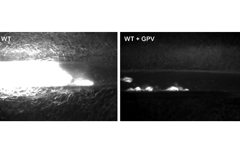 Neuer Regulationsmechanismus der Blutgerinnung entdeckt28. März 2023 Zusammenfassende Skizze: GPV wird durch Thrombin gespalten, bleibt an dieses gebunden und lokalisiert zusammen mit Thrombin an Fibrin. Fibrinbildung wird dadurch reduziert. So kontrolliert GPV räumlich-zeitlich die Thrombusbildung. Bild: ©RVZ Eine Würzburger Arbeitsgruppe rund um Studienleiter Prof. Bernhard Nieswandt hat einen von Blutplättchen vermittelten Regulationsmechanismus der Fibrinbildung bei der Blutgerinnung entschlüsselt und leitet daraus neue Therapieansätze ab. In der in „Nature Cardiovascular Research“ publizierten Studie decken die Forschenden das Glykoprotein GPV als Schaltstelle für die Blutstillung und Thrombusbildung auf. Wird Fibrin im Übermaß gebildet, zum Beispiel bei chronischen Wunden, kann es zu Thrombosen kommen. Deshalb ist eine strenge Regulierung der Fibrinbildung wichtig. Doch wie die Gerinnung begrenzt wird, war bislang nicht vollständig verstanden. In einem von der Würzburger Universitätsmedizin koordinierten, internationalen Projekt haben Forschende jetzt einen zentralen Regulationsmechanismus der Fibrinbildung entschlüsselt und daraus neue Therapieansätze abgeleitet.GPV kontrolliert die Aktivität von Thrombin und Bildung von FibrinIn der Studie gelangt die Arbeitsgruppe rund um Studienleiter Nieswandt zu grundlegend neuen Erkenntnissen: „Wir konnten erstmals eine neue Schaltstelle aufdecken, die sowohl die Blutstillung als auch die Bildung von Thrombosen reguliert. Diese Schaltstelle ist das Glykoprotein V, kurz GPV, das sich auf der Oberfläche von Blutplättchen befindet. GPV kontrolliert die Aktivität des Enzyms Thrombin, das für die Bildung von Fibrin verantwortlich ist“, erläutert Nieswandt, Leiter des Lehrstuhls für Experimentelle Biomedizin I und Vorstand des Rudolf-Virchow-Zentrum – Center for Integrative and Translational Bioimaging (RVZ) der Universität Würzburg.Thrombin ist ein entscheidendes Enzym in der Blutgerinnung und seine Aktivität muss daher zeitlich-räumlich sehr genau kontrolliert sein. Bisher war bekannt, dass der Oberflächenrezeptor GPV während der Aktivierung der Blutplättchen durch Thrombin abgespalten wird. Dadurch wird GPV als lösliche Rezeptorform freigesetzt. Die physiologische Funktion dieses Rezeptors war jedoch weitestgehend unbekannt. Mit genetischen und pharmakologischen Ansätzen haben die Forschenden gezeigt, dass eine Thrombin-vermittelte Abspaltung von GPV die Bildung von Fibrin begrenzt. Indem das lösliche GPV an Thrombin gebunden bleibt, verändert es die Aktivität von Thrombin, sodass dieses weniger Fibrin bilden kann.„Erkenntnisse werden Lehrbuchwissen verändern“In einer Reihe von Versuchen an experimentellen Thrombosemodellen konnte gezeigt werden, dass lösliches GPV unter anderem die Bildung von gefäßverschließenden Thromben verhindert und einen deutlichen Schutz vor experimentellem Schlaganfall und damit verbundener Hirnschädigung vermittelt. Nieswandt ist davon überzeugt, dass diese neuen Erkenntnisse das Lehrbuchwissen erweitern werden, und dankt den beteiligten Wissenschaftlern des RVZ und des Universitätsklinikums Würzburg (UKW), die von Kollegen aus Mainz, Maastricht und den USA unterstützt wurden.Antikörper gegen GPV bieten großes klinisches Potential bei Behandlung einer gestörten HämostaseIn einem weiteren Ansatz hat die Forschungsgruppe Antikörper gegen GPV generiert, die das Thrombin-vermittelte Abspalten von GPV verhindern. „In unseren Studien konnten wir zeigen, dass diese Antikörper die Thrombin-Aktivität erhöhen und es dadurch zu einer vermehrten Fibrinbildung kommt. Unsere Idee war es deshalb, diese Antikörper im Zusammenhang mit einer gestörten Hämostase zu nutzen, um die Fibrinbildung zu erhöhen“, führt Prof. David Stegner, Leiter der Arbeitsgruppe Vaskuläre Bildgebung am RVZ und einer der Letztautoren der Studie, weiter aus. Neben genetischen Ursachen kann eine gestörte Hämostase auch auf pharmakologisch-bedingte Beeinträchtigungen der Thrombozytenanzahl oder -funktion zurückgeführt werden. Dies ist zum Beispiel nach Einnahme von Thrombozytenaggregationshemmern wie etwa Clopidogrel der Fall, die zur Vorbeugung eines Herzinfarkts oder eines Schlaganfalls und zur Behandlung von Durchblutungsstörungen eingesetzt werden.„In einem experimentellen Modell zur Blutstillung konnte unser neuer Antikörper tatsächlich die Hämostase unter Bedingungen wiederherstellen, unter denen ansonsten keine Blutstillung möglich ist. Dies weist auf eine Unterstützung der Hämostase durch Verbesserung der Thrombin-abhängigen Fibrinbildung hin.“ ergänzt Dr. Sarah Beck, Wissenschaftlerin am Würzburger Institut für Experimentelle Biomedizin und Erstautorin der Studie. „Eine Anti-GPV-Behandlung könnte großes klinisches Potential haben und ist ein Ansatzpunkt, den wir in Zukunft näher verfolgen werden.“ Behandlung einer Maus mit löslichem GPV verhindert die Bildung eines gefäßverschließenden Thrombus im experimentellen Modell zur Thrombosebildung (rechts). Im Vergleich dazu ist ein gefäßverschließender Thrombus einer unbehandelten Maus gezeigt (links). Bild: © Sarah Beck / RVZ