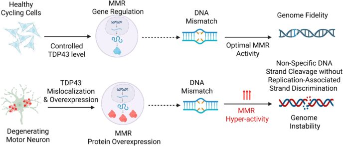 Mehr erfahren zu: "Demenzforschung: Protein TDP43 steuert DNA-Reparatur in Neuronen" Demenzforschung: Protein TDP43 steuert DNA-Reparatur in Neuronen Das Protein TDP-43, das mit ALS und Demenz verknüpft ist, reguliert überraschenderweise auch die DNA-Mismatch-Reparatur. Fehlerhafte Regulation kann Neuronen schädigen und ist zudem mit Krebs verknüpft.