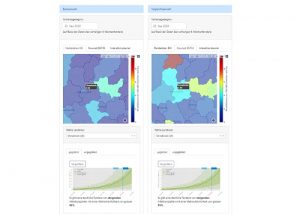 Neues Modell für landkreisbezogene COVID-19-Vorhersagen entwickelt23. September 2020 Tagesaktuelle Corona-Auswertung für jeden deutschen Landkreis (Vorhersagebeginn: 22.9.2020): Vergleich der Meldedaten (links oben) und der Abschätzung der aktuellen realen Fallzahlen (Nowcast, rechts). © Universität Osnabrück / Forschungszentrum Jülich Neuroinformatiker der Universität Osnabrück und Datenspezialisten des Jülich Supercomputing Centre liefern mit einem neuen Modell für landkreisbezogene COVID-19-Vorhersagen täglich aktuelle Auswertungen des Infektionsgeschehens. Die Modellergebnisse enthalten tagesaktuelle Schätzungen der gemeldeten Neu-Infektionen und eine 5-Tages-Vorhersage für jeden deutschen Landkreis. Die Prognosen beruhen auf Daten des Robert Koch-Institutes, die mit einem neuen, wahrscheinlichkeitsgewichteten Modell der Osnabrücker Neuroinformatiker auf Höchstleistungsrechnern des Jülich Supercomputing Centre (JSC) statistisch analysiert werden. Das „COVID-19 Bayesian Modelling for Outbreak Detection“, kurz BSTIM-Modell, besitzt zwei wesentliche Merkmale, die es von anderen Methoden unterscheidet: „Zum einen liefert die neue Methode einen Vorhersagehorizont, der es ermöglicht, die Verlässlichkeit der Prognosen zu beurteilen. Weiterhin wird der Einfluss vom örtlich benachbarten Infektionsgeschehen mit einbezogen. Das erlaubt uns, auch die Dynamik der Ausbreitung zu bewerten“, erklärt Prof. Gordon Pipa, Leiter der Arbeitsgruppe Neuroinformatik auf dem KI-Campus an der Universität Osnabrück, die das BSTM-Modell erst kürzlich in einem anderen Kontext entwickelt hat. Eine von mehreren Herausforderungen bei der Auflösung nach einzelnen Landkreisen sind die niedrigen Fallzahlen. „Eine einzelne Prognosekurve kann irreführend sein, da sich die Verlässlichkeit der Vorhersage nicht beurteilen lässt“, erläutert Pipa. „Das von uns verwendete BSTIM-Modell berechnet daher nicht nur einen einzelnen wahrscheinlichen Verlauf, sondern berücksichtigt viele mögliche Verläufe, die zu den Daten konform sind. Dies ermöglicht die Berechnung sogenannter Vorhersagehorizonte als Maß für die Streuung der Wahrscheinlichkeiten. Auf diese Weise ist eine Einschätzung der Situation einschließlich statistischer Unsicherheiten möglich, die auch bei niedrigen Fallzahlen hilfreiche Informationen liefern kann.“ Das BSTIM-Modell errechnet überdies den Einfluss angrenzender Regionen. Ein Interaktionskernel beschreibt, wie sehr sich eine hohe oder niedrige Infektionszahl in einer benachbarten Region auf das Infektionsgeschehen in einem Landkreis auswirkt. Die Osnabrücker Arbeitsgruppe Neuroinformatik und das Robert Koch-Institut hatten den Interaktionskernel bereits 2019 erfolgreich eingesetzt, um den Verlauf von Infektionen mit dem Rotavirus sowie Borreliose und Campylobacter-Bakterien zu beschreiben. Tagesaktuelle Corona-Auswertung für jeden deutschen Landkreis (Vorhersagebeginn: 22.9.2020): Vergleich der Meldedaten (links oben) und der Abschätzung der aktuellen realen Fallzahlen (Nowcast, rechts oben) sowie der Prognosen für unterschiedliche Landkreise (unten). © Universität Osnabrück / Forschungszentrum Jülich Experten des Jülich Supercomputing Centre (JSC) halfen dabei, die Methode für COVID-19-Daten zu adaptieren, und den Code für die Analyse auf den Jülicher Superrechnern anzupassen. „Die Ermittlung des Vorhersagehorizonts ist äußerst rechenintensiv, da wir dazu auf sehr viele Modellvariationen abgewiesen sind. Daher braucht die statische Modellierung deutlich mehr Rechenzeit als Methoden die auf einen Vorhersagehorizont verzichten. Um die Analysen täglich unmittelbar nach der Verfügbarkeit der RKI-Daten zur Verfügung stellen zu können, nutzen wir Ressourcen des Jülich Supercomputing Centre – normale Arbeitsplatzrechner wären damit weit überfordert“, erklärt Jens Henrik Göbbert vom JSC. Die tagesaktuellen Auswertungen sowie die Möglichkeit räumlicher und zeitlicher Vergleichsdarstellungen sind öffentlich zugänglich und werden auf der Webseite möglichst allgemeinverständlich dargestellt. „Wir wollten die Ergebnisse schnell und auf verständliche Weise zur Verfügung stellen, damit eine breite Zielgruppe zeitnah über Inhalte reden kann und man sich nicht an der Technik aufhalten muss“, erklärt Göbbert. Besucher der Seite können etwa interaktiv Fünf-Tages-Prognosen für frei wählbare Landkreise aufrufen, oder die aktuellen Meldedaten des Robert-Koch-Instituts mit den geschätzten tatsächlichen Neuinfektionen vergleichen. Aufgrund von Verzögerungen bei der Datenübermittlung weichen die gemeldeten Zahlen oftmals und teils erheblich von der tatsächlichen Zahl der neuen Fälle ab. Ein „Nowcast“ verfolgt dabei das Ziel, zunächst die aktuellen Zahlen mittels statistischer Analysen abzuschätzen. Ein „Forecast“ liefert eine Schätzung der Entwicklung für weitere fünf Tage. Auch für künftige Herausforderungen im Bereich der Pandemieforschung hat das Projektteam schon eine Idee. Pipa: „Solche interdisziplinären Teams könnten als Kompetenzzentren über die Grenzen von Instituten hinweg etabliert werden, um sich zum Beispiel durch Simulation von Krisensituationen auf verschiedene Szenarien und deren notwenigen Schritte bei der Datenbeschaffung und Datenanalyse vorzubereiten, ähnlich dem Katastrophenschutz.“