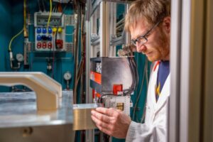 Neutronen zeigen, wie Fertigspritzen verstopfen2. Juni 2023 Michael Schulz untersucht die Spritzen an der Neutronen-Radiografieanlage ANTARES am FRM II. (Foto: © Astrid Eckert/TUM) Injektionsnadeln vorgefüllter Fertigspritzen können bei falscher Lagerung verstopfen. Ein Forschungsteam hat den Prozess detailliert und systematisch untersucht, unter anderem an der Forschungs-Neutronenquelle FRM II der Technischen Universität München (TUM). Vorgefüllte Fertigspritzen sind einfach zu handhaben und ermöglichen eine exakte Dosierung. Patienten können sich ihr Medikament daher ohne Probleme selbst spritzen. Sie sind bei so verschiedenen Krankheiten wie Asthma, Krebs oder auch Chronisch-entzündlichen Erkrankungen wie Morbus Crohn nicht mehr aus der Therapie wegzudenken. Doch die Fertigspritzen funktionieren nicht immer einwandfrei, die Injektionsnadeln können während der Lagerung verstopfen, was zu Fehldosierungen bei der Injektion führen kann. Neutronen zeigen Flüssigkeit in Nadelspitze „Dieses Problem steht weltweit im Fokus der Pharma-Hersteller und der Zulassungsbehörden“, sagt Prof. Stefan Scheler. Er arbeitet für die technische Forschungs- und Entwicklungsabteilung des Schweizer Pharmaunternehmens Novartis und lehrt an der Hochschule Kaiserslautern Pharmazeutische Technologie und Biopharmazie. Scheler und sein Kollege Dr. Alexander Zürn haben eine detaillierte und systematische Studie angefertigt, die die Vorgänge beim Verstopfen der Nadeln mathematisch modelliert und so ein besseres Verständnis für die Hintergründe dieses unerwünschten Prozesses schafft. Dazu nutzten die Forschenden auch die Neutronen-Radiografieanlage ANTARES der TUM am Heinz Maier-Leibnitz Zentrum in Garching. Gutes Bild trotz geringem Nadeldurchmesser „Röntgenstrahlen können das Metall der Nadel nur unzureichend durchdringen“, erklärt Dr. Michael Schulz, der für die TUM die Neutronenmessungen an der Radiografieanlage geleitet hat. „Neutronen hingegen durchdringen das Metall und zeigen zudem einen guten Kontrast zwischen Wasser und Luft.“ Genau darauf kam es den Wissenschaftlern an. Eine Schwierigkeit war dabei nicht zuletzt der geringe Innendurchmesser der Spritzennadeln, der nur etwa 0,2 mm beträgt. Der Detektor des ANTARES-Gerätes war jedoch in der Lage, luft- und flüssigkeitsgefüllte Segmente im Innern klar unterscheidbar und in guter Auflösung darzustellen. Wirkstofflösungen verfestigen sich in der Nadel Insgesamt 27 verschieden behandelte Fertigspritzen haben die Forschenden durchleuchtet. So wurden manche etwa Temperaturschwankungen ausgesetzt, statt sie vorschriftsgemäß im Kühlschrank zu lagern. Auch Schütteln und Druckschwankungen, zur Simulation von Luftfrachttransporten, sowie unterschiedlich lange Lagerungszeiten untersuchten die Pharmazeuten. „Die Neutronenexperimente haben uns eindeutig gezeigt, unter welchen Bedingungen Flüssigkeit in die Nadel dringt“, sagt Scheler. Ein Überdruck im Spritzeninneren gegenüber der Umgebungsluft führt zu einem schnelleren Verstopfen. Auch die Lagerdauer und hohe Temperaturen wirken sich negativ aus. Nadelverstopfungen könnten in Zukunft ein wachsendes Problem darstellen „Dass Nadeln verstopfen, könnte in Zukunft öfter passieren“, prophezeit Scheler. Denn um auch hohe Wirkstoffdosen in kleinen Volumina subcutan verabreichen zu können, werden die Wirkstoffkonzentrationen in den Spritzen immer höher gewählt. Die Gefahr von Nadelverstopfungen steigt auf diese Weise. „Wir arbeiten jetzt daran, das bereits im Herstellungsprozess zu verhindern“, sagt Scheler. Eine Möglichkeit sei es etwa, den Füllprozess zu ändern und einen leichten Unterdruck in der Spritze zu erzeugen, der den Eintritt von Flüssigkeit in die Nadel während der Lagerung verhindert. Um derartige Maßnahmen zu optimieren, könnten weitere Untersuchungen mit Neutronen durchgeführt werden. An der Studie waren neben Angestellten der Novartis Pharma AG und Sandoz GmbH Forschende der Hochschule Kaiserslautern und der Technischen Universität München beteiligt.