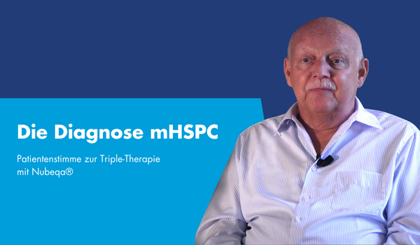 Nach der Diagnose de novo mHSPC erhält der Patient Joachim P. die Triple-Therapie mit Nubeqa® und kann seinen PSA-Wert, der initial bei fast 10.000 ng/ml lag, auf 85 ng/ml senken. Mittlerweile liegt der Wert sogar unter der Nachweisgrenze. Im Video berichtet er von seinen Erfahrungen mit der Behandlung, insbesondere wie er die Chemotherapie vertragen hat.
