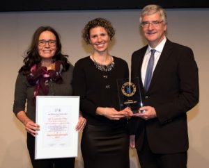 Oskar Medizin-Preis für Orthopädische Uniklinik Bad Abbach und Institut für Sportwissenschaft der Universität Regensburg6. November 2017 Rückenschmerzen-Prävention bei Kindern: Praxistests an Schulen beweisen die Wirkung. Hier eine Entspannungsübung, bei der sich die Schüler gegenseitig mit einem Tennisball die durch das Sitzen belastete Rückenmuskulatur massieren. (Foto: Orthopädische Uniklinik Bad Abbach) Das Ärzte- und Wissenschaftlerteam der Universität Regensburg erhält die mit 50.000 Euro dotierte Auszeichnung für die Forschungsarbeit im Bereich der Rückenschmerzen-Prävention bei Kindern. Das Oberpfälzer Forscherteam (v.l.) mit Petra Jansen, Silvia Dullien und Projektleiter Joachim Grifka nahmen in Berlin den Preis entgegen. (Foto: Orthopädische Uniklinik Bad Abbach/Jan Evers) Der Oskar Medizin-Preis zählt zu den renommiertesten und höchstdotierten Auszeichnungen für Ärzte in Deutschland. In diesem Jahr wurde nach 2014 zum zweiten Mal ein Forschungsprojekt der Orthopädischen Universitätsklinik Bad Abbach mit dem Stiftungspreis ausgezeichnet – für eine richtungsweisende Strategie zur Rückenschmerzen-Prävention bei Kindern unter dem Projektnamen “Rückenfit – unsere Schule macht mit”. Die Juroren, bestehend aus O&U-Experten Deutschlands, Österreichs und der Schweiz, entschieden sich einstimmig für die wissenschaftliche Arbeit des dreiköpfigen Forscherteams aus Ostbayern unter der Projektleitung von Prof. Joachim Grifka (Direktor der Orthopädischen Universitätsklinik), Prof. Petra Jansen (Lehrstuhlinhaberin am Institut für Sportwissenschaft, Universität Regensburg) und Dipl. Sportwissenschaftlerin Silvia Dullien (Orthopädische Uniklinik). “Gezieltes Rückentraining schon vom Kindesalter an ist der wirksamste Schutz vor späteren Rückenbeschwerden”, sagt Grifka. Das Ziel des Projektes war und ist es, bereits 10 bis 12-jährigen Kindern das nötige Rüstzeug, also eine Gebrauchsanweisung für einen gesunden Rücken mit auf den Lebensweg zu geben. “Gerade die kindliche Wirbelsäule ist in Wachstumszeiten – ab dem 12. Lebensjahr setzt der pubertäre Wachstumsschub ein – besonders anfällig für Störungen”, betont die Sportwissenschaftlerin Dullien. Das von der Bad Abbacher und Regensburger Forschungsgruppe entwickelte Trainings- und Präventionsprogramm wurde gezielt so strukturiert, dass es sich problemlos und ohne Mehraufwand für die Lehrer in den Schulalltag integrieren lässt. “Dieses Programm wurde gemeinsam mit Lehrern und Fachbetreuern gestaltet”, so Silvia Dullien. Praxistests bestätigen Wirksamkeit “Rückenfit – unsere Schule macht mit” wurde im Rahmen der Studie über ein Schuljahr an verschiedenen 5. Klassen im Alltag getestet. Dabei lernten die Kinder, wie ihr Rücken aufgebaut ist, was ihn krank macht und was man selbst für einen gesunden Rücken tun kann. Tägliche Rücken-, Kräftigungs- und Mobilisierungsübungen im Klassenzimmer während oder zwischen den Unterrichtsstunden gehörten dabei ebenso zum Programm wie die Verpflichtung, jede Sportstunde mit mindestens einer Kräftigungsübung für die Bauch- und Rückenmuskulatur zu beginnen. Alle 10 Minuten wurden die Schüler/innen von den Lehrkräften außerdem angehalten, ihre Sitzposition zu ändern, um so andauernde Fehlbelastungen im Sitzen und damit Überlastungen der Rückenstrukturen zu vermeiden. Das Wissen um den gesunden Rücken steigt “Der Erfolg des täglichen systematischen Rückentrainings war im Zuge der einjährigen Praxiserprobung eindrucksvoll und messbar”, sagt. Der Wissenstest am Ende des Schuljahres hat im Vergleich zur Kontrollgruppe gezeigt, dass die Kinder ein umfassendes Problembewusstsein und Wissen zum Thema “Gesunder Rücken” erworben haben. Dieses Wissen ist die Grundlage für eine anhaltende Verhaltensänderung mit mehrfachem Nutzen. Eine Parallelstudie des beteiligten Wissenschaftlerteams hatte gezeigt, dass Rückenprogramme bei Kindern auch deren motorische Fähigkeiten verbessern. Was die Studie ebenfalls bestätigte: Mit Blick auf einen gesunden Rücken sollten Schulranzen maximal 10 Prozent des Körpergewichts der Kinder wiegen und am besten auf dem Rücken getragen werden. Schlüssel für den Langzeiterfolg: Kontinuität Ein Schlüssel für die hohe Bewertung des Bad Abbacher Projektes durch die Oskar-Preisjury war die Strategie das Rücken-Präventionsprogramm harmonisch in den Schulalltag zu integrieren. Dies stellt sicher, dass sehr viele Kinder erreicht werden können und zum anderen der tägliche Rückenschutz durch eine “angelernte Kontinuität” langfristig wirkt. “Wird das Rückentraining tagtäglich wiederholt, wird es irgendwann zur Alltagsroutine, so wie das tägliche Zähneputzen. Zwei Kräftigungsübungen am Morgen und die meist durch eine schwache Rückenmuskulatur ausgelösten Rückenschmerzen würden deutlich zurückgehen”, ist sich Grifka sicher. Mit den 50.000 Euro Preisgeld soll nach dem Willen des Bad Abbacher Forscherteams die Verbreitung des Projektes vorangetrieben und zusätzliches Unterrichtsmaterial erstellt werden. Außerdem ist eine weitergehende Studie zur Rückengesundheit von Grundschülern geplant. Der Preis wurde auf dem Deutschen Kongress für Orthopädie und Unfallchirurgie am 27. Oktober in Berlin übergeben.