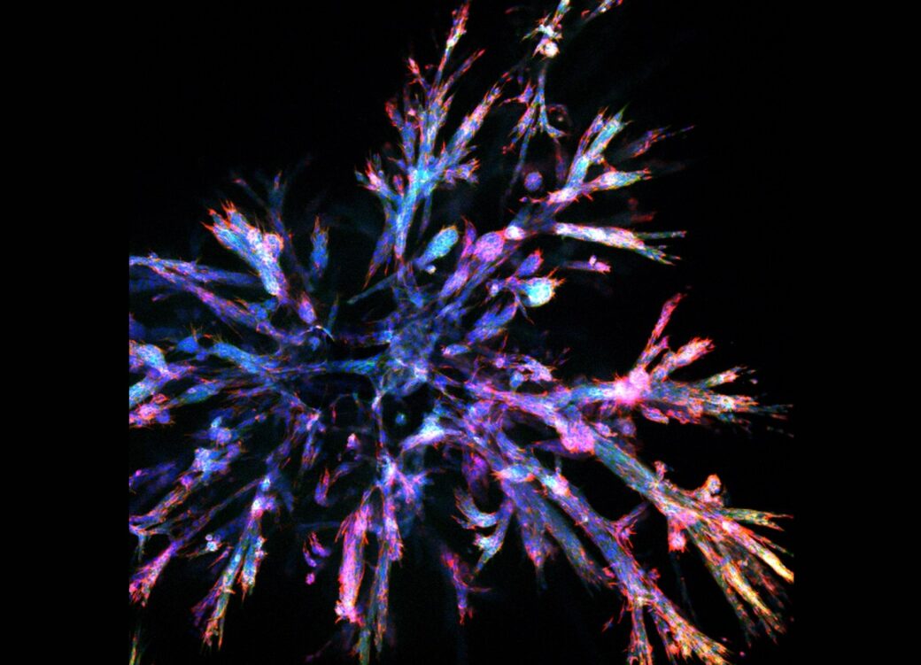 Pankreaskarzinom: Organoide bilden erstmals komplexe Zelllandschaft ab11. Dezember 2024 Darstellung eines Pankreaskarzinoms. (Abbildung: © Crystal light/stock.adobe.com) Ein Team um Forschende der Technischen Universität München (TUM) hat erstmals Tumor-Organoide gezüchtet, welche die unterschiedlichen Strukturen und Eigenschaften von Bauchspeicheldrüsenkrebs nachbilden. Die Wissenschaftler haben untersucht, wie die verschiedenen Tumor-Organoide auf etablierte und neuartige Behandlungen reagieren. Dies eröffnet neue Möglichkeiten für die Entwicklung effektiver Therapien. Die Zellen eines Bauchspeicheldrüsentumors unterscheiden sich nicht nur stark in ihrer Struktur, sondern auch in ihren damit verknüpften biologischen Eigenschaften, beispielsweise wie aggressiv sie sind. Grob kann man Bauchspeicheldrüsenkrebszellen aufgrund ihrer Erscheinung und ihres molekularen Profils in einen epithelialen und eine mesenchymalen Subtyp einteilen. „Die Tumorzellen können allerdings im Lauf der Krankheit ihre Struktur und Funktion verändern“, sagt Maximilian Reichert, Professor für Translationale Pankreaskarzinomforschung am Klinikum rechts der Isar der TUM. „Inzwischen ist bekannt, dass es innerhalb dieser beiden Subtypen ein großes Spektrum verschiedener Erscheinungsformen gibt, die sich sehr unterschiedlich verhalten können.“ Vielfältige Strukturen im Labor nachgezüchtet Ein Team um Reichert hat nun erstmalig die zelluläre Komplexität von Bauchspeicheldrüsenkrebs im Labor nachgebildet. „Tumorzellverbände sind im Körper drüsenartig geformt, mit vielen gangähnlichen Verzweigungen“, erklärt Aristeidis Papargyriou, Erstautor der Studie. „Entnimmt man einzelne Tumorzellen und züchtet daraus im Labor künstliche, dreidimensionale Zellkulturen, Organoide genannt, erhält man nach der üblichen Vorgehensweise aber nur unverzweigte, runde Strukturen. Diese haben nicht die gleichen Eigenschaften wie die Zellverbände im Körper. Wir können jetzt Organoide erzeugen, die den echten, verzweigten Zellverbänden sehr ähnlich sind. Damit können wir erstmals die Vielfalt von Bauchspeicheldrüsenkrebs im Labor abbilden.“ Welche Therapie wirkt? Verschiedene Organoide reagieren unterschiedlich Mithilfe Maschinellen Lernens haben die Forschenden die neu gezüchteten Organoide anhand ihrer Strukturen in definierte Gruppen unterteilt, um damit systematisch weiterarbeiten zu können. Papargyriou: „Wir haben verschiedene Phänotypen innerhalb der beiden großen Kategorien epithelial und mesenchymal identifiziert. Das sind vereinfach gesagt Gruppen, die sich in Aussehen, Physiologie und Verhalten unterscheiden.“ Bauchspeicheldrüsenkrebs-Organoid. (Abbildung: © Aristeidis Papargyriou / TUM) Zunächst haben sie mit Organoiden aus Maustumorzellen gearbeitet. „Beispielsweise sind ‚Sternartige Organoide‘ in der Mitte rund und nach außen hin besonders stark verzweigt, während ‚TEBBO-Organoide‘ dicke Verästelungen und stumpfe Enden haben.“ Diese Phänotypen unterscheiden sich nicht nur stark in ihrem Aussehen, sondern unter anderem auch darin, wie sie sich vermehren, Stoffwechsel betreiben oder sich bei Sauerstoffmangel verhalten. Insbesondere reagieren sie auch unterschiedlich auf Behandlungen: So waren beispielsweise die sternartigen Organoide gegen das in der Studie eingesetzte Chemotherapeutikum resistent, sprachen aber stark auf Bestrahlung an.Auf dieser Grundlage gelang es den Wissenschaftlern, auch erste Bauchspeicheldrüsenkrebs-Phänotypen aus Krebszellen von Patientinnen und Patienten im Labor zu züchten und auf Behandlungen zu testen. Ansätze für zukünftige Therapien Die neuen Organoide könnten für die Entwicklung von Therapien von Nutzen sein. Wenn bekannt ist, welche Phänotypen bei einem Patienten vorkommen und wie diese auf Behandlungen reagieren, könnten Ärzte Therapien individueller und gezielter ausrichten.Die Forschenden verfolgen auch noch einen weiteren Ansatz, um aus dem Wissen zukünftig effektivere Behandlungen zu entwickeln. „Mehrere Phänotypen eines Tumors gleichzeitig zu bekämpfen ist sehr schwierig“, betont Reichert. „Behandelt man sie mit dem gleichen Medikament, reagieren sie möglicherweise völlig unterschiedlich oder weichen der Behandlung aus indem sie sich in andere Phänotypen umwandeln und werden therapieresistent. Deswegen war unsere Idee, zunächst die Anzahl verschiedener Phänotypen innerhalb eines Tumors zu reduzieren, bis im Idealfall nur noch sehr wenige übrigbleiben, die sich nicht weiter verändern. Für diese verbliebenen könnte man eine Therapie entwickeln und sie so in einem zweiten Schritt gezielt bekämpfen.“Die Forschenden testeten diesen Ansatz an den neuentwickelten Organoiden und gaben dafür verschiedene Wirkstoffe dazu. Manche Phänotypen wurden dadurch verdrängt, andere wandelten sich um oder entwickelten sich zu neuen Phänotypen. Übrig blieben wie beabsichtigt hauptsächlich nur noch zwei Phänotypen, die sich nicht weiter veränderten. Für diese wollen die Forschenden zukünftig Substanzen finden, mit denen sie sich behandeln lassen, und den Ansatz weiterentwickeln.