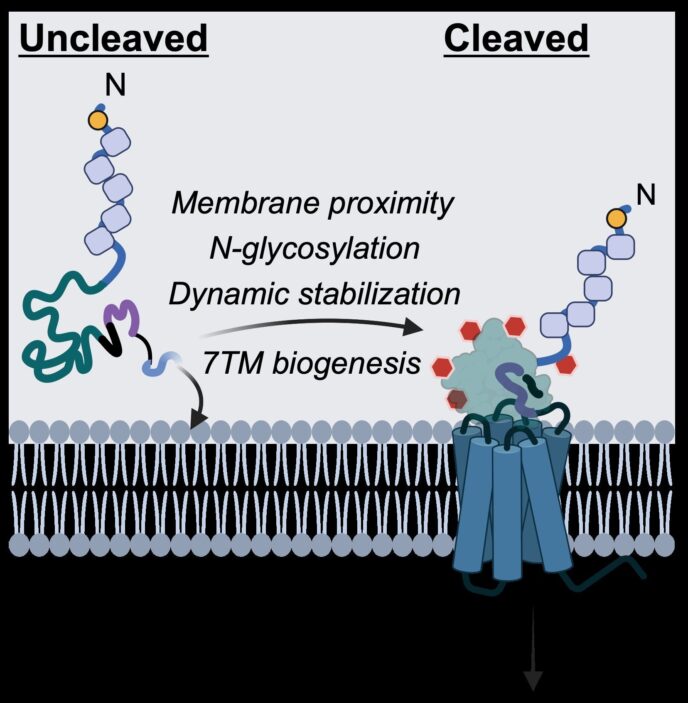 Mehr erfahren zu: "„Sicherheitscheck“ in der Zelle: Selbstspaltung als eingebaute Qualitätskontrolle" „Sicherheitscheck“ in der Zelle: Selbstspaltung als eingebaute Qualitätskontrolle Wissenschaftler der Universitäten Leipzig und Halle haben untersucht, wie sich Adhäsions-G-Protein-gekoppelte Rezeptoren (aGPCRs) selbst in zwei Teile spalten.