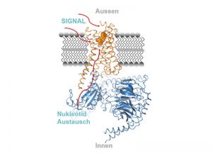 Reizverarbeitung: Was passiert, nachdem ein Signal auf seinen Rezeptor gestoßen ist?21. Juni 2019 Illustration der Vorgänge an der Zellinnen- und -außenseite bei Auftreffen eines Signals. Bild: Berlin Institute of Health (BIH) Wissenschaftlern des Berlin Institute of Health (BIH) ist es gelungen, Empfängermoleküle dabei zu beobachten, wie sie Signale in das Zellinnere übertragen. Körpereigene Botenstoffe, aber auch Medikamente, entfalten ihre Wirkung oft über Rezeptoren auf der Oberfläche der Zellen. Zwei Gastwissenschaftler am BIH konnten nun gemeinsam mit weiteren Kooperationspartnern erstmals die initialen Schritte beobachten, wie der Rezeptor auf der Zellinnenseite sogenannte G-Proteine bindet und so das Signal gezielt in die Zelle überträgt. Das gelang ihnen, indem sie ihre Expertisen in der Strukturbiologie beziehungsweise in High-performance-Computermethoden kombinierten. Ihre Erkenntnisse haben die Wissenschaftler in der Zeitschrift Cell veröffentlicht. Beide BIH-Visiting-Professoren werden von der Stiftung Charité gefördert. Signale spielen im Körper eine entscheidende Rolle: Licht wird in der Retina unseres Auges durch lichtempfindliche Rezeptoren in körpereigene Signale umgewandelt, die im Gehirn zu dem zusammengefügt werden, was wir sehen. Das Stresshormon Adrenalin signalisiert Gefahr und sorgt für erhöhte Pulsschlag- und Atemfrequenz. Botenstoffe wie Serotonin sorgen dafür, dass Nervenzellen in bestimmten Gehirnarealen aktiviert werden und so etwa Glücksgefühle entstehen. Bei all diesen Vorgängen spielen spezielle Antennen auf der Zelloberfläche, G-Protein-gekoppelte Rezeptoren (GPCR), eine alles entscheidende Rolle: Sie empfangen die Signale, leiten sie weiter und können damit eine bestimmte Antwort auslösen. Peter Hildebrand hat eine Professur für biophysikalische Computersimulationen an der medizinischen Fakultät der Universität Leipzig und beschäftigt sich mit der Computersimulation krankheitsrelevanter Eiweißmoleküle im Körper. „Wir interessieren uns seit vielen Jahren dafür, was passiert, nachdem das Signal auf seinen Rezeptor an der Zelloberfläche gestoßen ist“, erzählt Hildebrand, der am BIH Visiting-Professor ist. „Wir wollen wissen, wie der Rezeptor das Signal in die Zelle hineinreicht und wie es dann innerhalb der Zelle weitergeht: Diese ersten Schritte entscheiden, welches Programm in der Zelle im Anschluss abläuft und welche Antwort die Zelle darauf liefert.“ Für Antworten auf genau diese Fragen hat der Strukturbiologe Brian Kobilka von der Universität Stanford im Jahr 2012 den Nobelpreis für Chemie erhalten. “Und deshalb ist es für uns auch so ein großes Glück, dass wir mit Brian Kobilka ,der am BIH als BIH-Einstein-Visiting-Professor tätig ist, hier in Berlin zusammenarbeiten können“, freut sich Hildebrand. Schnappschüsse vom Moment der Bindung „Brian Kobilka hat Schnappschüsse von Rezeptoren im Moment der Bindung des von außen kommenden Botenstoffs und ebenfalls im Moment der Bindung an die G-Proteine innerhalb der Zelle aufgenommen“, erklärt Hildebrand. „Wir konnten die Bewegungen dieser Moleküle in ihrer natürlichen Umgebung simulieren.“ Der Biophysiker Hildebrand tat sich daraufhin in Berlin mit dem Strukturbiologen und Mediziner Kobilka zusammen: „Wir wollten genau verstehen, was unter der Zelloberfläche bei der Signalübertragung passiert. Die entscheidenden Bewegungen laufen dabei in sehr kurzer Zeit, also wenigen Bruchteilen von Sekunden ab“, beschreibt Hildebrand das Problem. „Wir konnten nur zusammen herausfinden, wovon es abhängt, ob ein Signal weitergereicht wird und ob es in die eine oder in die andere Richtung weitergeleitet wird.“ Dazu haben sie die Bewegungen des Rezeptors am Computer simuliert und anschließend im Labor mit strukturbiologischen Methoden überprüft, ob die Simulation die Vorgänge korrekt widerspiegelte. Die mikroskopisch kleinen ultraschnellen Bewegungen, die Kobilka und Hildebrand nun erstmals beobachten konnten, entscheiden zu einem wesentlichen Teil darüber, welche Wirkung ein natürliches oder körpereigenes Signal entfaltet: Auch ein Drittel der Medikamente wirkt über diese Rezeptoren, etwa Herzmedikamente, Psychopharmaka oder Schmerzmittel. „Und da kommt es auf die speziellen Bewegungen an, die das Medikament bewirkt, wenn es an den Rezeptor bindet“, erklärt Hildebrand. „Die jetzt veröffentlichten Erkenntnisse sind ein wichtiger Schritt, um in Zukunft abzuschätzen zu können, ob ein Medikament Nebenwirkungen hervorrufen wird, weil es nicht nur einen, sondern mehrere oder den falschen Signalweg in der Zelle aktiviert,“ ordnet Hildebrand die aktuelle Veröffentlichung ein. Originalpublikation: Liu et al. Structural Insights into the Process of GPCR-G Protein Complex Formation, Cell (2019). https://doi.org/10.1016/j.cell.2019.04.021 Quelle: Berliner Institut für Gesundheitsforschung / Berlin Institute of Health (BIH)