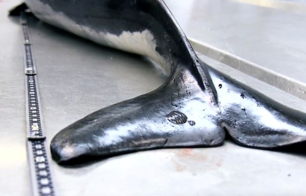 Schweinswale durch Munitionssprengungen verletzt27. Januar 2022 Toter Schweinswal (Symbolbild, gehört nicht zur unten aufgeführten Studie) Foto: © ITAW TiHo Untersuchungen an 24 toten Schweinswalen aus der Ostsee zeigen bei zehn Tieren, dass Unterwasserexplosionen durch ungeschützte Sprengung von Fliegerbomben aus dem Zweiten Weltkrieg für Verletzungen sorgten. Ein Forschungsteam aus dem Institut für Terrestrische und Aquatische Wildtierforschung (ITAW) der Stiftung Tierärztliche Hochschule Hannover untersuchte 24 tote Schweinswale auf Hörschäden und veröffentlichte die Ergebnisse im Fachmagazin „Environment International“. Eingesammelt wurden die Schweinswale mit Hilfe des vom Ministerium für Energiewende, Landwirtschaft, Umwelt, Natur und Digitalisierung des Landes Schleswig-Holstein finanzierten Strandungsnetzes. Die Tiere wurden zwischen September und November 2019 an verschiedenen Orten der Ostseeküste Schleswig-Holsteins tot aufgefunden – einige Wochen nachdem 42 britische Fliegerbomben aus dem Zweiten Weltkrieg ohne weitere Schallschutzmaßnahmen nahe dem Schutzgebiet Fehmarn in der Ostsee gesprengt wurden. Die Todesursache von zehn Schweinswalen bringen die Forschenden mit Explosionsverletzungen in Verbindung. Die auf Meeressäuger spezialisierten Tierärztinnen und Tierärzte sowie Biologeninnen und Biologen des ITAW führten eine umfassende pathologische Untersuchung der Tiere durch, die besonders auch den Hörapparat und das akustische Fett berücksichtigten. Um andere Erkrankungen ausschließen zu können, nahmen sie nach der Obduktion zudem weiterführende feingewebliche, mikrobiologische, virologische und parasitologische Untersuchungen vor. Das Institut für Osteologie und Biomechanik des Universitätsklinikums Hamburg-Eppendorf führte gemeinsam mit den Gehör-Fachleuten des ITAW bildgebende Verfahren durch, um auch minimalste Schäden an den für die Orientierung der Tiere wichtigen Ohren entdecken zu können. Die Obduktionsergebnisse Bei den entlang der Eckernförder, Kieler und Lübecker Bucht aufgefundenen Schweinswalen handelte es sich um drei Neugeborene, 15 Jungtiere und sechs ausgewachsene Tiere (14 Weibchen und 10 Männchen). Bei zehn Schweinswalen fanden die Forschenden krankhafte Auskugelungen und Frakturen der Mittelohrknochen, Blutungen im akustischen Fett des Unterkiefers und des Gehörapparates sowie der Melone. Derartige Verletzungen können nur durch starke Druckwellen, wie sie bei Explosionen entstehen, hervorgerufen werden. Die Melone ist ein für die Echoortung wichtiges Organ aus verschiedenen Fettgewebsschichten und von essentieller Bedeutung für Orientierung, Kommunikation und Beutefang. Einer dieser Schweinswale zeigte zusätzlich schwere Blutungen und Hämatome in der Muskel- und Fettschicht, was auf ein stumpfes Explosionstrauma hindeutet. Ein weiterer junger Schweinswal mit Explosionsverletzungen wurde beigefangen. Bei beiden Tieren gehen die Forschenden davon aus, dass Sprengungsverletzungen die Orientierungsfähigkeit der Tiere erheblich herabgesetzt hatten. Schwanzflosse eines toten Schweinswals (gehört nicht zu der Studie “Schweinswale durch Munitionssprengungen verletzt; 27. Januar 2022”). Foto: © ITAW TiHo Schadenspotenzial ungeschützter Unterwasserexplosionen für Schweinswale ITAW-Leiterin Professorin Dr. Ursula Siebert sagt: „Dank der Finanzierung unserer Spezialuntersuchungen durch das Bundesamt für Naturschutz konnten wir erstmals zeigen, dass die Unterwassersprengungen schwere Auswirkungen auf Schweinswale haben können. Dies unterstreicht das hohe direkte und indirekte Schadenspotenzial der Sprengungen.“ Da die Menge der Munitionsaltlasten in der deutschen Nord- und Ostsee riesig sei, so Siebert weiter, und mit zunehmenden Aktivitäten, wie etwa dem Bau von Offshore-Windkraftanlagen, regelmäßig kurzfristig Sprengungen vorgenommen würden, müssen Schweinswale und andere Meerestiere besser geschützt werden. Um die Auswirkungen von Explosionen auf Populationsebene beurteilen zu können, sollten umfangreiche gesundheitliche Bewertungen des Gesundheitszustandes gestrandeter Wale inklusive Gehöruntersuchungen vorgenommen werden. „Die Sprengungen sorgen außerdem dafür, dass die Tiere ihr Verhalten deutlich ändern und unter Stress stehen, sodass dies auch in die Bewertung der Gesamtbelastung der Schweinswalpopulationen in deutschen Gewässern einbezogen werden muss“, so Siebert. Anthropogene Einflüsse gefährden Schweinswale Der Schweinswal ist Deutschlands einzige Walart. Doch die empfindsamen Meeresbewohner sind stark gefährdet und in der zentralen Ostsee vom Aussterben bedroht. Ihr Lebensraum ist einer Vielzahl anthropogener Einflüsse ausgesetzt. Gefährdungen für den Bestand der Schweinswale sind neben Erkrankungen und klimatischen Veränderungen vor allem menschliche Tätigkeiten wie Fischerei, Tourismus, Schifffahrt und zunehmender Lärmeintrag durch Bau und Betrieb von Offshore-Windanlagen, seismische Erkundungen, U-Boote und Unterwassersprengung von Militärmunition. In der Ost- und Nordsee befinden sich noch immer große Munitionsvorkommen, die während und nach dem Zweiten Weltkrieg in großen Mengen ins Meer geworfen wurden und nun bei neuen Aktivitäten, wie dem Bau von Offshore-Windkraftanlagen, Pipelines oder der Verlegung von Schiffsrouten, häufig schnell gezündet werden müssen. Die Detonationen führen zu extremen Schallbelastungen, die für die meisten Tiere im Nahbereich tödlich sind und auch in weiten Entfernungen noch erhebliche Schäden verursachen können.