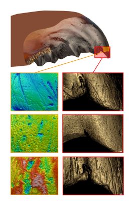 Speiseplan von Insekten an der Abnutzung ihres Kiefers erkennbar16. April 2024 Bild einer Grille. Ihre Mundwerkzeuge sind aus diesem Blickwinkel nur schlecht zu sehen. Abb.: © Shinji Nagata, Universität Tokyo Zeige mir deine Kiefer, und ich sage dir, was du isst: So könnte das Motto einer Studie lauten, die an der Christian-Albrechts-Universität zu Kiel (CAU) und der Universität Tokyo durchgeführt wurde. Die Methode könnte Einblicke in vergangene ökologische Umbrüche geben. Die Esswerkzeuge von Grillen nutzen sich je nach Art der Ernährung unterschiedlich ab, zeigt eine aktuelle Studie der Universitäten Kiel und Tokyo. Mit Hilfe von dreidimensionalen Mikroskopie-Aufnahmen lässt sich die Art und Stärke der Abnutzung objektiv bestimmen. Die Methode lässt sich beispielsweise nutzen, um Insektensammlungen in Museen zu analysieren. Die Ergebnisse können Hinweise auf ökologische Veränderungen in der Vergangenheit geben. Die Forschenden haben darin untersucht, ob sich an der Abnutzung der Esswerkzeuge von Insekten ihre Ernährungsgewohnheiten ablesen lassen. Bei Wirbeltieren sind derartige Analysen seit Jahrzehnten Standard. Denn aus den Ergebnissen können Wissenschaftlerinnen und Wissenschaftler weitreichende Erkenntnisse zu den Lebensumständen der untersuchten Arten gewinnen. Bei Wirbeltieren ist das insbesondere für Fossilfunde interessant: Der Blick auf die Zähne verrät viel über die ökologische Nische, in der das entsprechende Tier vor Millionen von Jahren gelebt hat.Eisen-Einlagerung statt Zahnschmelz„Wir wollten wissen, ob sich diese Methode auch auf Insekten übertragen lässt“, erklärt Dr. Daniela Winkler vom Zoologischen Institut der CAU. „Sie haben zwar keine Zähne, aber sogenannte Mandibeln, mit denen sie ihre Nahrung zerkleinern.“ Ähnlich wie Zähne verfügen auch die Insekten-Kiefer über eine Schutzschicht, die sie gegenüber Abrieb unempfindlicher macht. Diese besteht jedoch nicht aus Zahnschmelz, sondern aus eingelagerten Metallen wie Zink oder Eisen. „Wir haben untersucht, welche Spuren bestimmte Nahrungsbestandteile trotz dieser Schutzschicht in den Mandibeln hinterlassen“, sagt Winkler.Die Zoologin ist Expertin für Zahnanalysen – und zugleich eine Pionierin auf diesem Gebiet: Als erste Wissenschaftlerin weltweit konnte sie vor einigen Jahren nachweisen, dass sich auch die Kauwerkzeuge von Reptilien je nach Ernährung auf charakteristische Weise abnutzen. Ihre Ergebnisse erlauben beispielsweise völlig neue Einblicke in die Lebensweise von Dinosauriern. Auch bei den Insekten beschritt sie nun mit ihren Kolleginnen und Kollegen aus Japan Neuland. „Wir haben Experimente mit Grillen durchgeführt, die wir unterschiedlich gefüttert haben“, sagt sie. „Alle Tiere erhielten zu Pellets gepresste Bestandteile der Saat-Luzerne. Wir mischten dieser Grundnahrung aber unterschiedliche Bestandteile bei, darunter verschieden groben Quarzsand oder Vulkanasche.“ Die Mikroskopie-Aufnahmen zeigen Grillen-Mandibeln an Tag 21 des Experiments – oben nach Fütterung mit Pellets ohne Beimischungen (Kontrolle), in der Mitte mit Pellets und 8 Prozent Quarzstaub, unten mit Pellets und 4 Prozent Vulkanasche Abb.: © Daniela Winkler, Uni Kiel Mandibeln verschleißen ganz ähnlich wie Meerschweinchen-ZähneInsgesamt lief das Experiment über einen Monat. In dieser Zeit fertigten die Forschenden mehrfach mit einem speziellen Mikroskop dreidimensionale Oberflächenscans von den Mandibeln an. Mit Hilfe einer computergestützten automatisierten Auswertungsmethode vermaßen sie dann die Topografie der Mandibel-Oberfläche – vereinfacht gesagt: ihre Rauheit. Dazu erfassten sie insgesamt mehr als 40 Parameter, darunter die durchschnittliche Tiefe der Kratzer und die Komplexität der Abnutzungsmuster. Ein Ergebnis hat Winkler dabei selbst überrascht: „Wir haben früher auf ähnliche Weise die Abnutzung von Meerschweinchen-Zähnen untersucht – und zwar ebenfalls mit Hilfe von Futterpellets, denen wir Quarzsand oder Asche beigemischt hatten, um die Aufnahme solcher Partikel im natürlichen Lebensraum zu simulieren. Denn das kommt bei Pflanzenfressern tatsächlich häufig vor“, sagt sie. „Die Mandibeln der Grillen verschleißen auf fast identische Weise, obwohl die Tiere erheblich kleiner sind und ihre Esswerkzeuge einen ganz anderen Aufbau haben.“Verlässlicher Einblick in den Speiseplan der GrillenTatsächlich ließ sich aus den Parametern schon einige Tage nach Start des Experiments mit großer Sicherheit ablesen, auf welche Weise die Tiere gefüttert worden waren. Die Spuren auf den Mandibeln geben also offensichtlich einen verlässlichen Einblick in den Speiseplan der Grillen. Für fossile Insekten-Funde eignet sich das Verfahren allerdings wohl nicht. Denn dazu müssen die Mandibeln in dreidimensionaler Form erhalten sein; das ist aber nur selten der Fall. Auch Insekten-Einschlüsse in Bernstein lassen sich auf diese Weise nicht analysieren, da die Kiefer dort von einer Harzschicht bedeckt sind. Dennoch könnten die Ergebnisse in der Fachwelt auf großes Interesse stoßen: Weltweit verfügen viele naturkundliche Museen über große Insektensammlungen. Die Grillen, Käfer, Wanzen und Libellen darin sind zum Teil mehrere hundert Jahre alt. Ihre Mandibeln dokumentieren, wie sich ihre ökologische Nische seit damals verändert hat – durch menschliche Eingriffe, Umweltzerstörung, Klimawandel oder auch die Einwanderung neuer Pflanzenarten. „Zudem lässt sich an den Spuren ablesen, wie schnell sich die Insekten auf diesen Wandel einstellten“, erklärt Winkler: „Ob sie sich zum Beispiel direkt neue Nahrungsquellen erschlossen, wenn ihre Lieblingspflanze seltener wurde – oder ob sie das erst taten, wenn sie anders nicht mehr überleben konnten.“