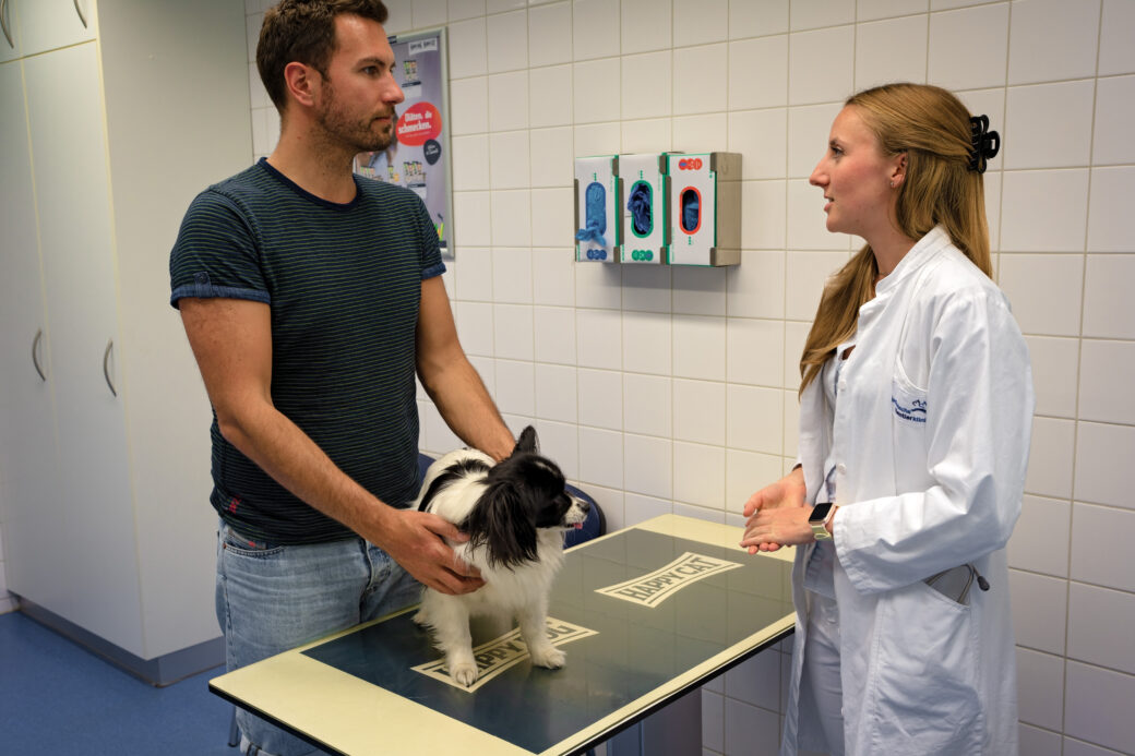 Schlank und fit: Spezialsprechstunde an der Kleintierklinik der LMU München eingerichtet12. Juli 2024 Privatdozentin Dr. Petra Kölle freundet sich mit Timmy an und prüft sein Gewicht Foto: © LMU München Katzen und Hunde zählen zu den beliebtesten Haustieren in Deutschland. Rund 15,7 Millionen Samtpfoten und 10,5 Millionen Hunde leben in deutschen Haushalten*. Unsere tierischen Mitbewohner werden geliebt und verwöhnt. Das bleibt oft nicht ohne Folgen. Wenn mit der Liebe auch die Pfunde der Vierbeiner wachsen, sollten Tierbesitzer hellhörig werden. Studien belegen, dass fast die Hälfte der Hunde und Katzen in Deutschland übergewichtig ist. Tendenz steigend. „Mit wachsendem Übergewicht sinkt nicht nur die Lebensqualität, sondern auch die Lebensdauer betroffener Tiere, im Durchschnitt um 2 bis 3 Jahre“, sagt Privatdozentin Dr. Petra Kölle, Leitung der Ernährungsberatung an der Kleintierklinik der Ludwig-Maximilians-Universität (LMU) München. Ihre Kollegin, Tierärztin Lilly Baum, ergänzt: „Vielen Tierbesitzern ist gar nicht bewusst, dass Übergewicht und Adipositas bei Hunden und Katzen mit schweren Krankheiten, wie etwa Allergien, Atembeschwerden, Bluthochdruck, Diabetes mellitus, Gelenkproblemen, Herz-Kreislauf-Erkrankungen, vermehrter Neigung zu Tumoren oder auch Lebererkrankungen einhergehen können.“ Übergewicht ist also ein ernst zu nehmendes Problem. Die Expertinnen für Ernährung an der Kleintierklinik der LMU: Privatdozentin Dr. Petra Kölle (r) und Tierärztin Lilly Baum (l) Foto: © LMU München Der Body Condition Score Ist mein Tier nur knuffig und niedlich oder ist es bereits alarmierend dick? Wie erkenne ich denn, ob mein Tier zu viel Speck auf den Rippen hat? Lilly Baum erklärt: „Der Body Condition Score, kurz BCS, ist eine gute Methode, den Gewichtsstatus des eigenen, erwachsenen Tieres einzuschätzen.“ Bei Welpen und Junghunden bis 12 Monaten sollte man sich an der Wachstumskurve orientieren. Jeder Tierbesitzer eines erwachsenen Tieres kann, auch gerne mit Unterstützung des Haustierarztes, den BCS mithilfe des 2-Schritte-Plans ermitteln: 1. Schritt: Silhouette seitlich und von oben prüfen Die Silhouette des Tieres wird von der Seite her angeschaut. So lassen sich Fettdepots erkennen. Der Verlauf der Bauchlinie, vom Rippenbogen zur Leiste, steigt bei Tieren mit Idealgewicht an. Bei übergewichtigen Tieren verläuft die Bauchlinie eher gerade und bei adipösen Tieren hängt der Bauch abfallend herunter. Dann wird das Tier von oben angeschaut, damit das Verhältnis zwischen Taille und Hüfte eingeschätzt werden kann. Eine gut erkennbare Taille deutet auf Normalgewicht hin, eine nicht erkennbare Taille auf Übergewicht oder Adipositas. Tierärztin Lilly Baum beim BCS-Check Foto: © LMU München 2. Schritt: Abtasten der Rippen, Wirbelsäule und Beckenknochen Mit der flachen Hand werden Rippen, Wirbelsäule und Beckenknochen abgetastet. Wenn die einzelnen Rippen kaum fühlbar sind, dann ist das Tier übergewichtig oder adipös. Der BCS basiert auf einem Punktesystem von 1 (untergewichtig) bis 5 (fettleibig). Ab Punkt 4 (übergewichtig) liegt das Gewicht des Tieres meist rund 10 bis 20 Prozent über dem Normalgewicht. Dann sollte gehandelt werden. Gesund Abnehmen – so geht’s Hilfe, mein Tier ist zu dick – was soll ich jetzt tun? „Wer sich diese Frage stellt, ist bereits sensibilisiert, seinen vierbeinigen Liebling beim Abnehmen zu unterstützen“, weiß Dr. Petra Kölle. Jedes Tier ist individuell und hat seine eigenen Bedürfnisse. Daher gibt es auch keinen allgemein gültigen Königsweg für alle Tiere. Das Team um Privatdozentin Dr. Petra Kölle an der Kleintierklinik der LMU hat es sich zur Aufgabe gemacht, Tierbesitzer und ihre Lieblinge professionell beim Abnehmen zu unterstützen. Tierärztin Lilly Baum: „Unsere Spezialsprechstunde: ‚Schlank und fit: Mehr Lebensqualität für Hunde und Katzen‘ nimmt Tierbesitzer und ihre Lieblinge behutsam an Hand und Pfote und begleitet beide durch den Prozess des Abnehmens.“ Interessierte Tierbesitzer können sich gerne, auch unter Einbeziehung ihres Haustierarztes, via E-Mail zur Spezialsprechstunde „Schlank und fit: Mehr Lebensqualität für Hunde und Katzen“ anmelden. Die Spezialsprechstunde wird partnerschaftlich unterstützt von iQ petfood. „Als Hersteller und Pionier hochwertiger Premium-Tiernahrung liegt uns das Wohl und die Gesundheit unserer vierbeinigen Freunde sehr am Herzen. Übergewicht belastet die Gelenke der Haustiere und kann das Risiko für bestimmte Erkrankungen, wie z.B. Diabetes, stark erhöhen. Die Unterstützung der Spezialsprechstunde der LMU München ist für uns somit ein ganz besonderes Anliegen, um Hunde und Katzen, sowie deren Besitzer auf dem Weg zum Idealgewicht und zu mehr Lebensqualität zu begleiten“, so Georg Müller, Inhaber der iQ petfood. Spezialsprechstunde: Schlank und fit: Mehr Lebensqualität für Hunde und Katzen Dr. Petra Kölle: „Unsere Spezialsprechstunde ist deutschlandweit einzigartig, da wir jedes Tier individuell behandeln und mit unserer Expertise durch den Prozess des Abnehmens führen.“ Wie läuft die Spezialsprechstunde ab? Anamnese Tierbesitzer nehmen per E-Mail Kontakt auf und erhalten einen Fragebogen, in dem sie Fütterung, Erkrankungen und Medikamente angeben. Danach wird ein persönliches Gespräch vor Ort oder ein Telefonat mit dem Tierbesitzer über die Vorgeschichte des Tieres geführt. Hier werden die individuellen Bedürfnisse des Tieres und des Besitzers abgefragt. Während dieses ersten Termins wird das Tier vermessen, gewogen und es werden Fotos des Tieres für die Verlaufskontrolle angefertigt. Anhand dieser Informationen ermittelt Dr. Petra Kölle mit ihrem Team das Zielgewicht des Tieres und den Zeitraum der Gewichtsreduktion. Tierärztin Lilly Baum gibt Tipps zur Fütterung und motiviert zum Durchhalten. Foto: © LMU München Therapie Nun erstellen die Spezialisten einen individuellen Diätplan entweder au