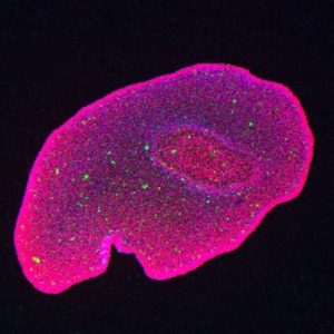 Stammplatz für die einfachsten Vielzelligen Tiere9. Dezember 2022 Trichoplax adhearens ist eine Art, die zum Tierstamm der Plattentiere gehört. © Institut für Tierökologie Ein internationales Forschungsteam erstellte erstmals einen vollständigen Stammbaum für den Tierstamm der Plattentiere (Placozoa): Sie analysierten molekulare Merkmale und ganze Genome, um die Verwandtschaftsverhältnisse der Kleinstlebewesen zu entschlüsseln. Damit umgehen sie das Problem, dass Placozoa kaum äußere morphologische Merkmale besitzen. Die Gruppe der einfachsten Vielzelligen Tiere der Welt hat nun einen Stammbaum. Eine Forschungsgruppe unter der Leitung der Stiftung Tierärztliche Hochschule Hannover (TiHo), des American Museum of Natural History und des St. Francis College veröffentlichte ihre Systematik-Arbeit heute in der Fachzeitschrift „Frontiers in Ecology and Evolution“. „Die Studie kommt mehr als 100 Jahre nach der Entdeckung dieser winzigen und strukturell einfachsten aller Vielzelligen Tiere und ist das erste – und vermutlich einzige – Mal in diesem Jahrhundert, dass eine vollständige Taxonomie für einen ganzen Tierstamm erstellt wird“, sagt Professor Dr. Bernd Schierwater aus dem Institut für Tierökologie der TiHo. Er ist der Senior-Autor der Studie und führender Placozoen-Experte. Die Forschungsergebnisse basieren auf vorhandenen oder fehlenden Genen und nicht auf dem äußeren Erscheinungsbild, das traditionell zur Klassifizierung von Organismen verwendet wird. Trichoplax adhearens vermehrt sich größtenteils ungeschlechtlich, indem sich die Tiere in zwei Teile teilen. Diese Aufnahme zeigt eine seltene Dreiteilung.© Institut für Tierökologie Placozoen sehen aus wie winzige, formveränderliche Scheiben und selbst Taxonomen finden mit leistungsstarken Mikroskopen fast keine Merkmale, um sie zu unterscheiden. Es war aber bekannt, dass es auf genetischer Ebene sehr unterschiedliche Abstammungslinien gibt. Schierwater sagt: „Nach jahrzehntelangen Diskussionen bekommt dieser spannende Stamm endlich die Aufmerksamkeit, die er verdient. Jetzt können wir ein klares Bild davon zeichnen, wie diese Tiere miteinander und mit anderen verwandt sind.“ In Notsituationen pflanzt sich Trichoplax adhearens geschlechtlich fort und bildet Eizellen und Spermien, aus denen wiederum Schwimmlarven hervorgehen. In der Mitte dieses Tieres ist eine Eizelle zu sehen.© Institut für Tierökologie Die Forschenden führten molekulare Analysen durch, für die sie Unterschiede in DNA-Sequenzen und anderen molekularen Strukturen heranzogen, um die Verwandtschaftsverhältnisse der Tiere zu bestimmen. Auf diese Weise erstellten sie eine grundlegende Taxonomie mit zwei neuen Klassen, vier neuen Ordnungen, drei neuen Familien, einer neuen Gattung und einer neuen Art. Die neue Art heißt Cladtertia collaboinventa. Der Artname betont, dass die Entdeckung nur durch die internationale Zusammenarbeit möglich war. Die Forschungen deuten darauf hin, dass die Plattentiere nahe mit den Nesseltieren (Quallen und Korallen) und den Bilateriern verwandt sind. Bilaterier sind vielzellige Tiere mit einem spiegelbildlichen Aufbau. Etwa 95 Prozent aller Tiere sind Bilaterier, so auch der Mensch. Trichoplax adhaerens besitzt die Fähigkeit zur Regeneration: Der ovale Bereich in der rechten Hälfte ist ein geschlossenes Loch.© Institut für Tierökologie Schierwater betont, dass diese Studie ein Anreiz dazu sein kann, die Systematik auch anderer Organismengruppen zu überdenken, die an der Oberfläche sehr ähnlich aussehen, wie Bakterien, Pilze und Protisten. „Wir schlagen vor, dass die Morphologie von Molekülen, wie zum Beispiel von Proteinen, die unverwechselbare Strukturen haben, nicht als etwas anderes als die traditionelle Morphologie betrachtet werden sollte. So könnte ein neues Zeitalter der Systematik beginnen”, so Schierwater. Tierstämme sind die höchste Rangstufe in der hierarchischen Gliederung der Tiere. Sie bilden die Ebene unter den Reichen von Lebewesen: Tierreich, Pilzreich, Pflanzenreich. Die Unterteilung einzelner Tierarten nach Stämmen erfolgt aufgrund von Gemeinsamkeiten in der Stammesgeschichte, Abstammung und den letzten gemeinsamen Vorfahren. Innerhalb der Tierstämme existieren Unterstufen bzw. Unterränge, wie Überstamm, Stamm und Unterstamm. Die Arbeit wurde zum Teil vom U.S. Department of Energy, Biological and Environmental Research Grant # DE-SC0014377 und dem Deutschen Akademischen Austauschprogramm unterstützt.