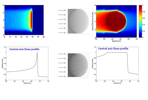 Strahlentherapie weiter voranbringen21. Juni 2022 Aufbau für ein FLASH-Experiment bei GSI/FAIR: Hierbei wird eine hohe Strahlendosis in sehr kurzer Zeit von etwa 100 Millisekunden appliziert. Foto: Biophysik / GSI Helmholtzzentrum für Schwerionenforschung Es ist ein wichtiger Schritt, um die künftigen Behandlungsmethoden im Kampf gegen den Krebs zu erweitern: Das GSI Helmholtzzentrum für Schwerionenforschung, die Technische Hochschule Mittelhessen (THM) und die Firma Varian, ein Siemens Healthineers Unternehmen aus Palo Alto, Kalifornien, wollen gemeinsam die medizinisch-technischen Entwicklungen im Bereich der FLASH-Therapie vorantreiben und den Weg in die klinische Anwendung weiter ebnen. Dazu wurde eine Vereinbarung zwischen den drei Beteiligten geschlossen. Die Zusammenarbeit hat das Ziel, den Einsatz neuester Technologien für die Patientenbestrahlung mit ultra-hohen FLASH-Dosisraten zu ermöglichen. Das Thema FLASH-Bestrahlung steht aktuell weltweit stark im Fokus und ist auch ein Arbeitsschwerpunkt innerhalb der Abteilung GSI-Biophysik, die von Prof. Marco Durante geleitet wird. Das FLASH-Verfahren ist eine neue, vielversprechende Möglichkeit der experimentellen Strahlentherapie. Das englische Wort Flash bedeutet Blitz; in der Strahlenmedizin geht es entsprechend um eine ultrakurze und hoch dosierte Bestrahlung. Bei der traditionellen Strahlentherapie sowie bei der Protonen- und Ionentherapie werden den Erkrankten über einen Zeitraum von einer Minute oder länger die Strahlendosen verabreicht, während FLASH-Bestrahlungen so angewandt werden, dass sie in nur wenigen hundert Millisekunden oder sogar kürzer erfolgen. FLASH könnte in Zukunft potenziell die Nebenwirkungen im gesunden Gewebe reduzieren und damit das therapeutische Fenster vergrößern. Der Vorteil von FLASH-Bestrahlungen wurde in vielen präklinischen Studien signifikant nachgewiesen, insbesondere für Elektronenstrahlung. Allerdings ist der hoffnungsträchtige Effekt aus strahlenbiologischer Sicht noch nicht vollständig verstanden. Um eine solche FLASH-Bestrahlung durchzuführen – also eine hohe Strahlendosis in sehr kurzer Zeit zu applizieren –, müssen die klinischen Beschleuniger mit der höchsten Intensitätsstufe betrieben werden, damit sie die nötige Dosisleistung bereitstellen können. Doch hierbei gibt es eine entscheidende Herausforderung: Üblicherweise wird bei der Partikeltherapie das Rasterscan-Verfahren eingesetzt, eine Bestrahlungsmethode, bei der die Strahlen in ihrer Intensität präzise moduliert und mit schnellen Magneten exakt über den Tumor geführt werden, eine Technologie, die am GSI Helmholtzzentrum in den Neunzigerjahren entwickelt wurde. Zusätzlich wird dabei die Energie variiert, denn wie weit er ins Gewebe eindringt, hängt von der jeweiligen Energie des Strahls ab. Mit dieser Methode kann das Tumorvolumen maßgeschneidert und millimetergenau behandelt werden. Doch dieses Verfahren ist aus Zeitgründen bei der FLASH-Bestrahlung nicht möglich; eine Multi-Energie-Rasterabtastung würde viel zu lange dauern. Hier setzt die aktuelle Forschung von GSI/FAIR, THM und Varian an. Die Beteiligten nehmen dabei die FLASH-Therapie mit Protonen in den Fokus. Ziel der Zusammenarbeit ist die Entwicklung und Validierung eines neuen klinischen Workflows. Statt des Raster-Scannings mit seinen etwa 30 bis 60 verschiedenen Energieschritten wird nur ein einziger Energieschritt verwendet. Damit die Bestrahlung trotzdem an das Tumorvolumen angepasst werden kann, wird ein sogenannter patientenindividueller 3D-Reichweitenmodulator („3D-RM“) eingesetzt, um ein vergleichbares Ergebnis – jedoch in viel kürzerer Zeit im Millisekundenbereich – zu erzielen. Strahlenanwendung mit dem 3D-Reichweiten-Modulator: Die Illustration zeigt das Prinzip der 3D-Modulation für die Anpassung des Hochdosisbereiches an das Targetvolumen. Bild: © Biophysik GSI / THM Mittelhessen Dieser relativ kompakte 3D-RM wird mit hochqualitativen 3D-Druckern hergestellt, ist für die jeweilige Tumorform optimiert und besteht aus vielen pyramidenförmigen Grundstrukturen, die alle eine mikroskopisch genau definierte Form haben. Der Reichweitenmodulator wird für jeden Patienten individuell hergestellt und in der Strahlführung vorgeschaltet, bevor die Teilchen auf den Körper treffen. So kann die gewünschte Tumor-angepasste Verteilung der Dosis erfolgen. In den kommenden zwei Jahren werden die Forschungsteams mit VARIAN daran arbeiten, diesen Ablauf wissenschaftlich-technisch zu etablieren und zu optimieren. Dr. Uli Weber, Technischer Projektleiter aus der GSI-Biophysik, ist sehr glücklich über die neue Kooperation mit Varian. „Was für mich in der Hauptsache zählt, ist die neue Modulatortechnik in die klinische Anwendung zu bringen. Und hier ist Varian der ideale Kooperationspartner, weil sie der Weltmarktführer in der Strahlentherapie sind und FLASH, sobald es sicher eingesetzt werden kann, möglichst früh in klinischen Studien mit ausgewählten Einrichtungen weiter testen wollen.“ Gemeinsam mit der wissenschaftlich-technischen Seite hat auch die GSI-Stabsstelle Technologietransfer, die von Dr. Tobias Engert geleitet wird, die neue Kooperation ausgestaltet. Das Ziel ist es, dass die innovativen Ideen und Technologien, die bei GSI/FAIR entstehen, in die Anwendung überführt werden können. Dafür bündelt die Stelle alle für den Transfer maßgeblichen Kompetenzen und Unterstützungsleistungen. Bei der aktuellen Kooperation von GSI, THM und Varian ist Technologietransfer-Managerin Dr. Alicja Surowiec für diese administrative Projekt-Koordination zuständig, Dr. Uli Weber und Dr. Christoph Schuy für die wissenschaftliche Projekt-Koordination und Durchführung bei GSI. Seitens der Technischen Hochschule Mittelhessen (THM) ist die Arbeitsgruppe von Prof. Klemens Zink verantwortlich für das Projekt. Bereits in den letzten 5 Jahren hat er gemeinsam mit seinen Doktoranden und mit Dr. Uli Weber von der GSI an der Wei