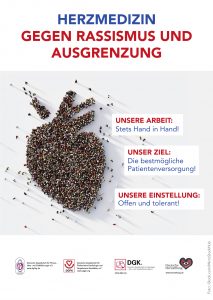 Mehr erfahren zu: "Schulterschluss der Herzmedizin – Wir dulden keinen Rassismus" Schulterschluss der Herzmedizin – Wir dulden keinen Rassismus Gemeinsam zeigen die medizinischen Fachgesellschaften und die Patientenorganisation der Herzmedizin mit ihrer Kampagne „Herzmedizin gegen Rassismus“, dass Toleranz, Integration und Vielfalt die gemeinsamen Werte sind, die sie vertreten. Man schätze […]