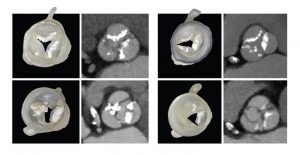 TAVI: Vorhersage undichter Herzklappen per 3-D-Druck11. Dezember 2018 CT-Scans und ein maßgeschneiderter parametrischer Modellierungsprozess wurden kombiniert, um physische Modelle von Aortenklappen von Patienten mit jeweils unterschiedlicher Größe, Form und Verkalkungsgrad zu erstellen. Bild: © Wyss Institute an der Harvard University Forscher des US-amerikanischen Wyss Institute haben eine Methode entwickelt, wie sie vor dem Einsatz einer TAVI-Aortenklappe die richtige Größe ermitteln können, um Lecks zu reduzieren. Die Software zur Modellierung der Segel und das 3D-Druckprotokoll stellen sie online frei zur Verfügung. Forscher des Wyss Institute for Biological Inspired Engineering an der Harvard University haben einen neuartigen 3D-Druckworkflow entwickelt, mit dem Kardiologen untersuchen können, wie verschiedene Klappengrößen mit der individuellen Anatomie jedes Patienten interagieren, bevor eine TAVI tatsächlich durchgeführt wird. Dieses Protokoll verwendet CT-Scandaten, um physikalische Modelle der Aortenklappen eines Patienten zu erstellen, zusätzlich zu einem „Sizer“ zur Bestimmung der perfekten Größe der Ersatzklappe. Die Arbeit wurde in Zusammenarbeit mit Forschern und Ärzten des Brigham and Women´s Hospital, der University of Washington, Massachusetts General Hospital, und des Max-Planck-Instituts für Kolloid- und Grenzflächenforschung durchgeführt und ist im “Journal of Cardiovascular Computed Tomography” erschienen. „Wenn Sie ein Paar Schuhe online kaufen, ohne sie vorher auszuprobieren, besteht eine gute Chance, dass sie nicht richtig passen. Die Größenbestimmung von TAVI-Klappen stellt ein ähnliches Problem dar, da Ärzte vor der Operation nicht die Möglichkeit haben, zu beurteilen, wie eine bestimmte Klappengröße zur Anatomie eines Patienten passt“, sagte Dr. James Weaver, Senior Research Scientist am Wyss Institute, korrespondierender Autor des Artikels. „Unser integratives 3D-Druck- und Klappengrößen-Bestimmungs-System liefert einen maßgeschneiderten Bericht über die einzigartige Aortenklappenform jedes Patienten. Dadurch werden viele Vermutungen beseitigt und jeder Patient erhält eine Klappe mit einer genauer angepassten Größe.“ Wenn ein Patient eine Ersatz-Herzklappe benötigt, erhält er häufig einen CT-Scan, der eine Reihe von Röntgenbildern des Herzens macht, um eine 3D-Rekonstruktion der inneren Anatomie zu erstellen. Während die Außenwand der Aorta und die damit verbundenen verkalkten Ablagerungen bei einer CT-Untersuchung leicht zu sehen sind, sind die empfindlichen Segel oft zu dünn, um gut sichtbar zu sein. “Nachdem eine 3D-Rekonstruktion der Herzanatomie durchgeführt wurde, sieht es oft so aus, als würden die verkalkten Ablagerungen einfach im Inneren der Klappe herumschweben. Dies gibt wenig oder keine Einsicht darüber, wie eine eingesetzte TAVI-Klappe mit ihnen interagieren würde”, erklärte Weaver. Um dieses Problem zu lösen, hat Ahmed Hosny, der zu dieser Zeit als wissenschaftlicher Mitarbeiter am Wyss Institute tätig war, ein Softwareprogramm entwickelt, das mithilfe parametrischer Modellierung virtuelle 3D-Modelle der Segel erstellt und dabei sieben Koordinaten auf den Klappen jedes Patienten verwendet, die auf CT-Scans sichtbar sind. Die digitalen Segel-Modelle wurden dann mit den CT-Daten zusammengeführt und so angepasst, dass sie korrekt in die Klappe passen. Das resultierende Modell, das die Segel und die damit verbundenen verkalkten Ablagerungen enthält, wurde dann in einem Modell mit mehreren Materialien 3D-gedruckt. In jedem 3D-gedruckten Herzklappenmodell befindet sich ein maßgefertiges “Sizer”-Gerät, das schrittweise ausgeweitet wird, bis der richtige Sitz erreicht ist. Bild: © Wyss Institute an der Harvard University Das Team druckte auch in 3D ein maßgefertigtes “Sizer”-Gerät, das in das 3D-gedruckte Klappenmodell passt und erweitert und verkleinert wird, um zu bestimmen, welche Größe der künstlichen Klappe für jeden Patienten am besten geeignet ist. Anschließend umwickelten sie den Sizer mit einer dünnen Schicht druckempfindlichen Films, um den Druck zwischen dem Sizer und den 3D-gedruckten Klappen und den damit verbundenen verkalkten Ablagerungen abzubilden, während der Sizer schrittweise erweitert wurde. “Wir stellten fest, dass die Größe und die Lokalisierung der verkalkten Ablagerungen auf den Segeln einen großen Einfluss darauf haben, wie gut eine künstliche Klappe in eine verkalkte Klappe passt”, sagte Hosny, der derzeit am Dana-Farber Cancer Institute arbeitet. “Manchmal gab es einfach keine Möglichkeit, dass eine TAVI-Klappe eine verkalkte Klappe vollständig abdichtet. Diese Patienten könnten tatsächlich mehr von einer Operationen am offenen Herzen profitieren, damit ein besseres Ergebnis erzielt wird.” Darüber hinaus könnte das Multimaterial-Design der 3D-gedruckten Klappenmodelle, die flexible Segel und starre kalzifizierte Ablagerungen in einer vollständig integrierten Form enthalten, das Verhalten realer Herzklappen während des Einsatzes künstlicher Klappen viel genauer nachahmen und bei Expansion des Sizers eine haptische Rückmeldung geben. 3D-gedruckte Modelle individueller Aortenklappen von vier Patienten werden neben den CT-Scans gezeigt, aus denen sie erstellt wurden (kalzifizierte Ablagerungen sind weiß dargestellt). Bild: © Wyss Institute an der Harvard University Das Team testete sein System anhand der Daten von 30 Patienten, die bereits einer TAVI unterzogen wurden. 15 von ihnen hatten Lecks an zu kleinen Klappen entwickelt. Die Forscher prognostizierten, auf der Grundlage, wie gut der Sizer in die 3D-gedruckten Modelle ihrer Aortenklappen passte, welche Klappengröße jeder Patient erhalten haben sollte und ob nach dem Eingriff Undichtigkeiten auftreten würden. Das System war in der Lage, das Ergebnis in Bezug auf Lecks bei 60-73% der Patienten (je nach Art der Klappe, die der Patient erhalten hatte) erfolgrei