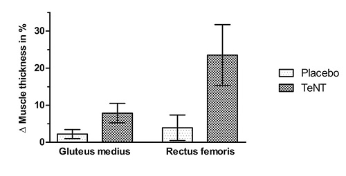 Tetanustoxin: Der erste Wirkstoff gegen Muskelabbau9. November 2021 Senior-Autor der Publikation und Projektleiter: Prof. David Liebetanz, Klinik für Neurologie, Universitätsmedizin Göttingen. (Foto: © privat) Erstmals zeigen Wissenschaftlern der Universitätsmedizin Göttingen und aus Berlin: Das hochpotente Nervengift Tetanustoxin wirkt gegen Muskelschwund. Veröffentlicht haben sie ihre Ergebnisse im “Journal of Cachexia, Sarcopenia and Muscle”. Schlaganfall, Multiple Sklerose oder Rückenmarksverletzungen zählen zu den häufigsten neurologischen Erkrankungen, bei denen es durch eine Störung im zentralen Nervensystem zu dauerhaften Lähmungen und Muskelschwund kommen kann. Bisher gibt es kein wirksames Medikament dagegen. Der Schwerpunkt der Therapie liegt daher auf Physio- und Ergotherapie. Um die Behandlungslücke schließen zu können, forschen Göttinger und Berliner Wissenschaftlerinnen und Wissenschatfler um den Neurologen Prof. David Liebetanz, Klinik für Neurologie der Universitätsmedizin Göttingen (UMG), seit etwa zehn Jahren an einer medikamentösen Therapie. Im Fokus steht dabei das hochgiftige Tetanustoxin, bekannt als Auslöser von Wundstarrkrampf. Jetzt ist den Forschenden ein wichtiger Meilenstein in Richtung klinischer Anwendung gelungen. Gemeinsam mit den Berliner Kooperationspartnern, dem Neurologen Prof. Stephan Hesse von der Klinik Medical Park Berlin Humboldtmühle und dem Tierarzt Dr. Martin Deutschland von der Neurologischen Überweisungspraxis für Haustiere, Berlin, führten Liebetanz und sein Team eine placebokontrollierte und doppelt verblindete Studie an Hunden durch, die aufgrund eines Bandscheibenvorfalls an einer Querschnittlähmung litten. Die Forscher konnten anhand ihrer Ergebnisse erstmals nachweisen, dass Tetanustoxin den Muskelschwund bei Querschnittlähmung deutlich verbessern kann. Erste Beobachtungen stammen aus dem zweiten Weltkrieg Die Idee, das eigentlich hochgiftige Tetanustoxin als mögliche Therapie für Lähmungen zu nutzen, geht auf den moldawischen Neurologen Boris Sharapov zurück. Sharapov berichtete in der Zeit des zweiten Weltkriegs von drei durch Schüsse verwundeten Patienten, zwei mit Querschnittlähmung und einem mit einer Halbseitenlähmung. Alle drei entwickelten zufällig auch eine Tetanusinfektion. Hierbei produziert das Bakterium Clostridum tetani aus der infizierten Wunde heraus große Mengen Tetanustoxin. Dies führt zu mehr oder weniger den ganzen Körper betreffenden Muskelkrämpfen, dem sogenannten Wundstarrkrampf. Im weiteren Verlauf kam es bei Sharapovs Patienten sowohl zu einer Zunahme des Muskeltonus als auch zu aktiven Bewegungen in den zuvor gelähmten Gliedmaßen. Nach wenigen Tagen stellte Sharapov fest, dass der halbseitig gelähmte Patient keinerlei Lähmungen mehr zeigte. Aus seinen Beobachtungen dieser zufälligen Tetanusinfektionen schloss er, dass das Tetanustoxin die noch erhaltenen Nervenzellen positiv stimuliert haben muss. In seinem Bericht von 1946 postulierte Sharapov eine mögliche therapeutische Verwendung des Tetanustoxins. Ermutigende Studie an Hunden „Heute wissen wir, dass Tetanustoxin, wenn wir es in den Muskel injizieren, hemmende Nervenzellen auf Rückenmarksebene ausschaltet. Dadurch werden motorischen Nervenzellen wieder aktiviert, die die betroffene Muskulatur direkt ansteuern. Auf Grundlage dieser einzigartigen Wirkungsweise lässt sich eine Zunahme der Muskelmasse von zuvor gelähmter Muskulatur erzielen“, sagt Dr. Anna Kutschenko, eine der Erst-Autorinnen der Publikation. 25 querschnittgelähmte Hunde wurden für die Studie über eine Annonce in einem Journal für Hundebesitzer zur Teilnahme nach Göttingen eingeladen. Neben umfangreichen klinischen Tests wurde bei den Hundepatienten eine sonographische Messung der Muskeldicke durchgeführt. „Vier Wochen nach der Injektion von Tetanustoxin in die vom Muskelschwund betroffene Muskulatur ergab die erneute Messung eine deutliche Zunahme der Muskeldicke im Vergleich zu den mit Placebo injizierten Hunden“, sagt Dr. Anja Manig, ebenfalls Erst-Autorin der Publikation und Ärztin in der Klinik für Neurologie der UMG. Die Säulengraphik zeigt die Muskeldicke von 2 betroffenen Muskeln vor und nach Behandlung mit Tetanustoxin im Vergleich zur Placebogruppe. (Grafik: umg/Liebetanz) Erstmals konnten die Göttinger und Berliner Forscher damit nachweisen, dass sich mit Tetanustoxin der ausgeprägte Muskelschwund bei Querschnittlähmung deutlich verbessern lässt. „Es ist das erste Mal überhaupt, dass mit einer medikamentösen Behandlung ein Muskelaufbau bei gelähmten Muskeln erzielt werden konnte“, sagt Liebetanz, Leiter des Projekts und Senior-Autor der Publikation. „Obwohl Tetanustoxin eine hohe Ähnlichkeit mit Botulinumtoxin aufweist, wirkt es genau gegenteilig. Während Botulinumtoxin zu Lähmung und Muskelatrophie führt, bewirkt Tetanustoxin eine Zunahme des Muskeltonus und der Muskelmasse“, erklärt der Neurologe. Bisher ist Tetanustoxin noch nicht zur Behandlung beim Menschen eingesetzt worden. Vor diesem Schritt wird das Forscherteam aus Göttingen und Berlin noch einige Untersuchungen durchführen. Diese betreffen vorwiegend die Sicherheit und die Dosierung des Nervengifts beim Menschen. Originalpublikation:Kutschenko A et al. Intramuscular tetanus neurotoxin reverses muscle atrophy: a randomized controlled trial in dogs with spinal cord injury. J Cachexia Sarcopenia Muscle, 27. Oktober 2021