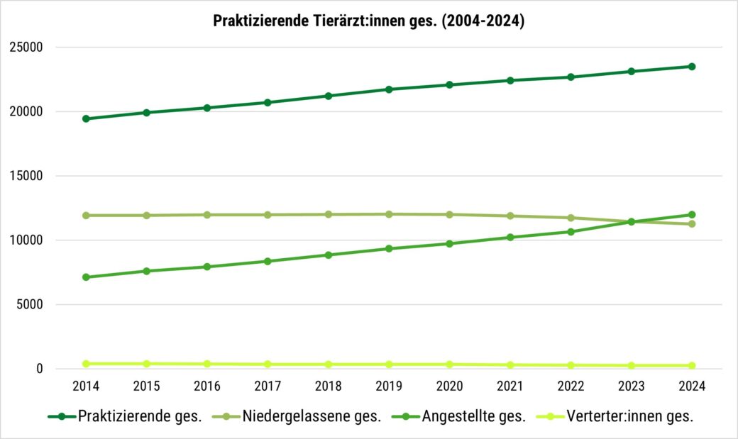 Tierärztliche Berufsausübung im Wandel – Spezialisierung nimmt deutlich zu9. Juli 2025 (Symbolbild) Foto: © Gorodenkoff – stock.adobe.com Am 2. Juli 2025 hat die Bundestierärztekammer (BTK) die Tierärztestatistik für das Jahr 2024 veröffentlicht. In dieser werden jährlich anhand der Meldedaten der Landes-/Tierärztekammern Zahlen zur deutschen Tierärzteschaft erhoben. Der Vergleich der Statistiken 2023 und 2024 verdeutlicht: Der tierärztliche Berufsstand befindet sich im strukturellen Wandel, der sowohl Herausforderungen als auch positive Entwicklungen mit sich bringt. Mehr Tierärzte und Tierärztinnen insgesamt – Selbstständigkeit nimmt ab Die Gesamtzahl der tierärztlich Tätigen ist im Jahr 2024 auf 34.364 gestiegen – ein Zuwachs von 519 Personen gegenüber 2023. Gleichzeitig ist ein weiterer Rückgang bei der Zahl der niedergelassenen Tierärzte und Tierärztinnen zu verzeichnen (minus 173), während die Zahl der angestellten Tierärzte deutlich angestiegen ist (Abb. 1). Diese Verschiebung unterstreicht den anhaltenden Trend hin zum Angestelltenverhältnis. Abb. 1: Praktizierende Tierärzte und Tierärztinnen (2004-2024) Abb.: © BTK Nachwuchs sichert die Zukunft des Berufsstands Hervorzuheben ist der Anstieg junger Tierärzte und Tierärztinnen unter 30 Jahren. Im Jahr 2024 sind es bereits 2.450 Tierärztinnen und 412 Tierärzte in dieser Altersgruppe (Abb. 2). Diese Entwicklung zeigt, dass der Beruf weiterhin attraktiv und der Nachwuchs weiblich geprägt ist. Der Frauenanteil insgesamt stieg auf 66 Prozent. Abb. 2: Altersstruktur Tierärzteschaft (2024) Abb.: © BTK Auslandstätigkeit und zunehmende Spezialisierung Immer mehr Tierärzte und Tierärztinnen entscheiden sich für eine Tätigkeit im Ausland. Die Zahl der im Ausland tätigen Tierärzte und Tierärztinnen stieg um 18 Prozent. Das mache deutlich, so die BTK, wie wichtig es ist, die Arbeitsbedingungen in Deutschland kritisch zu hinterfragen und gezielt zu verbessern, um die Attraktivität des Berufs langfristig zu sichern. Gleichzeitig ist ein deutliches Wachstum im Bereich der Spezialisierung durch Gebiets- und Zusatzbezeichnungen zu beobachten (Abb. 3). Diese Entwicklung spiegelt einerseits die wachsenden Ansprüche der Tierhaltenden sowie den medizinischen Fortschritt wider. Vor allem aber zeigt die kontinuierlich steigende Zahl das große Engagement innerhalb der Berufsgruppe – ein klarer Gewinn für die tiermedizinische Versorgung. Abb. 3: Anzahl Fachtierärzte und Fachtierärztinnen (2020-2024) Abb.: © BTK Regionale Unterschiede und Versorgungssicherheit Regionale Entwicklungen zeichnen ein differenziertes Bild: In einigen Bundesländern ist die Zahl tierärztlicher Praxen leicht zurückgegangen – ein Umstand, der die Frage nach der zukünftigen Sicherstellung einer flächendeckenden Versorgung erneut in den Fokus rückt. Fazit Die Tierärztestatistik 2024 zeigt, dass der Wandel in vollem Gange ist. Mehr angestellte Tierärzte und Tierärztinnen, mehr Spezialisierung, mehr Frauen und mehr internationale Mobilität. Diese Entwicklungen gilt es aktiv zu begleiten, um die tiermedizinische Versorgung in Deutschland auch künftig qualitativ hochwertig und flächendeckend sicherzustellen.