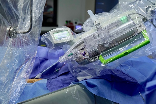 Universitätsklinikum Gießen führt erste robotische PCI in Deutschland durch19. Dezember 2019 Prof. Holger Nef, stellvertretender Direktor der Klinik Kardiologie und Angiologie am Uniklinikum Gießen, im Hintergrund: Prof. Albrecht Elsässer, Leiter der Akademie-eigenen Kurse der DGK. Foto: © Andi Mährlein/Universitätsklinikum Gießen Das Universitätsklinikum Gießen ist das erste Klinikum in Deutschland, an dem assistiert von einem Robotersystem ein Stent minimalinvasiv in ein verengtes Herzkranzgefäß eingesetzt wurde. Diese perkutane Koronarintervention (PCI) führte das Team von Prof. Holger Nef durch. Um den Katheter zu führen und den Stent zu setzen, nutzen die Ärzte ein endovaskuläres Roboter-System zusammen mit einem Angiographie-System. Die PCI ist im klinischen Alltag nach wie vor mit einigen potentiellen Risiken, sowohl für den Patienten als auch für das Personal des Herzkatheterlabors, verbunden. „Für den Patienten sind dies unter anderem die Strahlenbelastung, das akute Nierenversagen durch Kontrastmittelgabe und die Stentthrombose / Stentstenose bei falscher visueller Einschätzung der Läsionslänge“, berichtet Nef . Auch das klinische Personal ist auf Dauer einer Belastung ausgesetzt, welche sich vor allem durch das Tragen von schweren Bleischürzen und die Röntgenstreustrahlung bemerkbar macht. Interventionelle Kardiologen entwickeln bereits in frühen Lebensjahren häufiger Katarakte als Ärzte aus anderen Fachgebieten. In einer kürzlich publizierten Beobachtungsstudie wurde zudem die Sorge um einen möglichen Zusammenhang zwischen der lebenslangen Strahlenbelastung bei interventionellen Kardiologen und der Entwicklung von linksseitigen Hirntumoren geäußert. Nicht zuletzt aus diesen Gründen wurde seit Jahren nach einer Roboter-gestützten und ferngesteuerten Alternative geforscht. In diesem Zusammenhang wurden Roboter-gestützte und ferngesteuerte Systeme für koronare und endovaskuläre Eingriffe entwickelt, um einige dieser oben erwähnten Risiken zu minimieren. Roboter im OP: Ärzte am Universitätsklinikum Gießen nutzen erstmals in Deutschland das Robotersystem von Corindus, einem Tochterunternehmen von Siemens Healthineers. Foto: © Andi Mährlein/Universitätsklinikum Gießen Erste Versuche haben die Sicherheit, Anwendbarkeit und Effektivität des nun in Gießen eingesetzten Gerätes mit der konventionellen PCI verglichen. In der ersten veröffentlichten Studie beurteilen die Behandler die Leistungen des Robotersystems in 97,5 Prozent der Fälle als gleichwertig oder besser als das herkömmliche manuelle PCI-Verfahren. Die Strahlenbelastung des interventionellen Kardiologen reduzierte sich um 97 Prozent im Vergleich zur konventionellen PCI. Darüber hinaus wurden Robotersysteme für die PCI auch mit dem Ziel entwickelt, die Präzision zu erhöhen. So erlaubt ein Robotersystem durch seine mechanische Präzision eine exakte Steuerung der Stent- und Ballonpositionierung (0,5-mm-Schritte). „Eine genaue Positionierung von Stent und Ballon ist entscheidend für den prozeduralen Erfolg der PCI und das langfristige Ergebnis“ sagt Prof. Christian Hamm, Direktor der Medizinischen Klinik I, Kardiologie und Angiologie, am Uniklinikum Gießen. „Wenn koronare Läsionen nicht vollständig durch Stents abgedeckt werden, ist dies ein wesentlicher Risikofaktor für Folgeeingriffe durch Restenosen.“ Zukünftige Implementierung von künstlicher Intelligenz erlaubt zudem eine weitere Simplifizierung der PCI-Prozedur. Technische Innovationen ermöglichen komplexere Eingriffe Durch diesen technischen Fortschritt im Bereich der interventionellen Kardiologie kann es ferner gelingen, zunehmend komplexere Prozeduren wie beispielsweise Mehrgefäßerkrankungen, Hauptstammstenosen, Bifurkationsstenosen oder auch Wiedereröffnungen von chronischen Verschlüssen erfolgreich routinemäßig durchzuführen. „Gerade bei diesen Untersuchungen kann die Präzision durch robotische Unterstützung, sowie die Reduktion der Strahlenbelastung elementar wichtig sein.“ so Nef. Doch um die zahlreichen Optionen der Robotersysteme im Rahmen der Prozedur zu nutzen, sollte eine standardisierte und differenzierte Ausbildung der Interventionalisten mit dieser Technik erfolgen. “Hierdurch könnten wir optimale Eingriffsergebnisse bei gleichzeitiger Risikoreduktion für unsere Patienten erzielen”, so Prof. Albrecht Elsässer, Leiter der Akademie-eigenen Kurse der Deutschen Gesellschaft für Kardiologie (DGK). „Derzeit wird bereits ein Curriculum erstellt und der Ausbildungsprozess wissenschaftlich begleitet. Wenn wir von einer flächendeckenden Verbreitung der Methode in den kommenden Jahren ausgehen, können wir durch solche Programme eine hohe Versorgungsqualität der Patienten garantieren.“