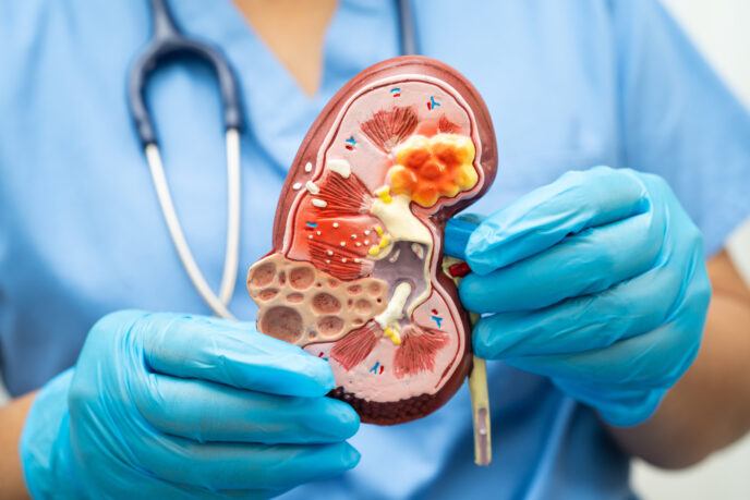 Universitätsklinikum Jena: Roboterassistierte Nierenoperationen sind schonender – und beliebter7. Mai 2025 Foto: © Tom/stock.adobe.com Die roboterassistierte Entfernung von Nierentumoren führt zu weniger negativen OP-Folgen und beeinträchtigt die Lebensqualität nicht so stark wie die offene Operation. Eine Überlegenheit konnte eine Studie der Unikliniken Jena und Tübingen aber nicht belegen. Nierenkrebs wird in Deutschland bei jährlich etwa 14.000 Menschen festgestellt – zum Glück meist in einem frühen Stadium. Bei der Behandlung spielt die operative Entfernung des Tumorgewebes die zentrale Rolle. Auch wenn die gesunde zweite Niere die Organfunktion übernehmen kann, wird möglichst nur der vom Krebs betroffene Teil der Niere entfernt. Die Operation kann offen über einen längeren Schnitt oder laparoskopisch mit mehreren nur kleinen Schnitten durchgeführt werden. Für diese minimalinvasive Methode werden immer häufiger Operationsroboter eingesetzt. „Aufgrund von retrospektiven Untersuchungen war anzunehmen, dass roboterassistierte Eingriffe weniger belastend sind und sich die Patienten schneller erholen,“ so Prof. Dr. Marc-Oliver Grimm, Direktor der Klinik für Urologie am Universitätsklinikum Jena. „Das wollten wir bei Nierentumoren, die wegen ihrer Größe bzw. Lage als eher schwierig zu operieren eingestuft wurden, in einer prospektiven Studie nachweisen und verglichen die roboterassistierte mit der offenen Operation.“ Gemeinsam mit Partnern in Tübingen erfasste das Forschungsteam an insgesamt zwölf Studienzentren in Deutschland Komplikationen des Eingriffs sowie u.a. onkologische Sicherheit, Erhalt der Nierenfunktion, Schmerz und befragten die Operierten nach ihrer Lebensqualität bis ein Jahr nach der Operation. Beide Operationsarten gleich erfolgreich Nach der Studienplanung sollten je 300 Patienten mit einem Nierentumor mittlerer oder hoher Komplexität, der organerhaltend entfernt werden konnte, nach der offenen Methode bzw. roboterassistiert operiert werden. Die Zuordnung zu den beiden Studiengruppen erfolgte nach dem Zufallsprinzip. Weil viele für eine offene Operation vorgesehene Teilnehmende sich letztlich doch für den Robotereingriff entschieden, musste die Studie nach 117 roboterassistierten und 90 offenen Operationen vorzeitig beendet werden. Die in der Fachzeitschrift „Annals of Oncology“ veröffentlichten Ergebnisse bestätigen die Entscheidung der Patienten: Beide Operationsarten konnten das Tumorgewebe erfolgreich entfernen und die Nierenfunktion gleich gut erhalten. Obwohl der roboterassistierte Eingriff länger dauert als der offene, erholten sich die Patienten schneller. Nach der roboterassistierten OP waren die Patienten eher wieder mobil und konnten die Klinik etwa einen Tag früher wieder verlassen. Im Vergleich zur offenen Operation berichteten die Patienten trotz geringerem Schmerzmittelverbrauch über weniger Schmerzen. Grimm kommentiert: „Leider reichte die Patientenzahl nicht aus, um den Unterschied in der Komplikationsrate statistisch signifikant nachzuweisen. Trotzdem konnten die bereits im Vorfeld angenommenen Vorteile der roboterassistierten partiellen Nephrektomie in Bezug auf Regeneration, Lebensqualität und Schmerz nach der Operation eindrücklich gezeigt werden.“