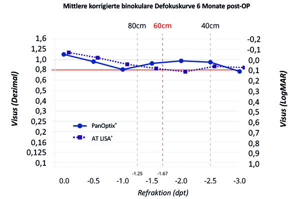 Anzeige EXPERTENINTERVIEW8. Juni 2021 Dr. med. Thilo Schimitzek, Gründer und Leiter der Augenklinik Kempten und des Laserzentrum Allgäu. „Unsere Patienten empfinden die AcrySof® IQ PanOptix® als enormen Gewinn im Alltag“ Lieber Herr Dr. Schimitzek, Sie implantieren die AcrySof® IQ PanOptix® bereits seit sechs Jahren. Was überzeugt Sie an dieser IOL? Schimitzek: Unser Zentrum hat als eines der ersten in Deutschland Patienten mit der AcrySof® IQ PanOptix® versorgt. Seither sind wir dieser IOL zur Presbyopiekorrektur aufgrund der guten und verlässlichen Ergebnisse treu geblieben und haben bereits über 1300 PanOptix® IOL implantiert. Grundsätzlich überzeugt mich an der PanOptix®, dass sie auf der bewährten AcrySof®-Plattform mit erprobtem hydrophobem IOL-Material basiert und sich komfortabel falten sowie minimalinvasiv implantieren lässt. Auch die niedrige Nachstarrate und der Blaulichtfilter sind Aspekte, die mir wichtig sind – gerade im Rahmen der Presbyopiekorrektur bei oftmals noch etwas jüngeren Patienten. Darüber hinaus hat mich von Anfang an das besondere Optikdesign der PanOptix® überzeugt, das für hohe Pupillenunabhängigkeit und Lichtausnutzung sorgt und den Intermediärfokus bei etwa 60 cm generiert. Das ist für mich ein wesentlicher Aspekt. Während bei allen anderen trifokalen IOL der Intermediärfokus bei etwa 80 cm und damit deutlich weiter entfernt vom Nahfokus liegt, befinden sich Nah- und Intermediärfokus bei der PanOptix® näher beieinander (Abb. 1). Insgesamt erzeugt die PanOptix® dadurch über einen weiten Sehbereich von nah bis fern und besonders in dem Bereich, der für viele Patienten im (Arbeits-)Alltag so wichtig ist, nämlich von Nähe bis Armlängenentfernung, ein stabiles Plateau mit einem gleichbleibend hohen Visus, innerhalb dessen der Blick gewissermaßen hin und her fließen kann. Auch für Handy- oder Tabletnutzung ist nach meiner Erfahrung eher ein Intermediärfokus im Bereich von etwa 60 cm wichtig. Abb. 1: PanOptix® ermöglicht einen natürlicheren Brennpunkt für den Intermediärbereich bei 60 cm. Daten nach [2].DACH-ACP-2100006Dr. med. Thilo Schimitzek, Gründer und Leiter der Augenklinik Kempten und des Laserzentrum Allgäu. Wie zufrieden sind Ihre PanOptix®-Patienten mit ihrem Sehvermögen? Schimitzek: Wir erreichen mit der PanOptix®-IOL eine sehr hohe Patientenzufriedenheit: Etwa 96 Prozent unserer Patienten sind nach der binokularen Implantation der PanOptix® ohne weitere Maßnahmen sehr zufrieden mit ihrem Sehvermögen. Dabei gibt es natürlich je nach Persönlichkeit auch Unterschiede: Manche Patienten sind sofort begeistert von der hohen Brillenunabhängigkeit. Bei anderen Patienten setzt die Begeisterung erst nach einer kurzen Gewöhnungsphase ein. Das gilt auch hinsichtlich der optischen Phänomene wie Halo oder Glare, die ja im Zusammenhang mit allen multifokalen IOL auftreten: Einige Patienten nehmen sie gar nicht wahr, andere benötigen etwas Zeit, um sie auszublenden. Bei den Patienten, die nach binokularer Implantation tatsächlich unzufrieden sind, liegt dies meistens an einer nicht präzise erreichten Zielrefraktion. Auch diese können wir in den allermeisten Fällen durch eine konsequente Nachbehandlung zufriedenzustellen. Explantationen als letzte Konsequenz sind bei uns extrem selten, was die meisten Patienten interessanterweise im Nachhinein aber doch bereuen. Insgesamt sind unsere Patienten mit der PanOptix® äußerst glücklich und empfinden es als große Erleichterung, ihren Alltag nun wieder weitestgehend ohne Brille gestalten zu können. Gerade im Berufsalltag wird die PanOptix® oftmals als enormer Gewinn empfunden, weil das ständige Brille putzen oder wechseln entfällt: Wir haben zum Beispiel Landwirte oder Dachdecker, die mit viel Staub und ständig verdreckter Brille zu kämpfen hatten, mit der PanOptix® sehr glücklich gemacht, ebenso Bäcker, deren Brille regelmäßig beim Öffnen des Ofens beschlug, oder TÜV-Prüfer, die permanent zwischen Nähe und Intermediärbereich wechseln mussten. All diese Menschen hatten unter den Nachteilen einer Brille gelitten, profitieren erheblich von der PanOptix® und sind natürlich sehr zufrieden. Wie informieren Sie Ihre Patienten über Möglichkeiten und Grenzen der Presbyopiekorrektur? Schimitzek: Nach meiner Erfahrung ist es zunächst wichtig, den Patienten sehr genau zuzuhören und ihre Sehanforderungen und -gewohnheiten ebenso zu erfragen wie ihre Erwartungen an die Presbyopiekorrektur. Dazu setzen wir zwar auch einen kurzen Fragebogen für den ersten Überblick ein, aber das meiste erschließt sich ohnehin schnell im Gespräch. Im nächsten Schritt informieren wir die Patienten offen und fair über die Chancen aber auch die Grenzen der Presbyopiekorrektur. Unser Ziel ist es, Patienten zu einer realistischen Erwartungshaltung zu verhelfen und sie selbst in die Lage zu versetzen, entscheiden zu können, ob und welche Presbyopiekorrektur ihre individuellen Ansprüche am besten erfüllt. Dabei sind klare und offene Worte wichtig, damit Patienten ihr persönliches Nutzen/Risiko-Verhältnis abwägen können. Gleichzeitig ist es allerdings auch wichtig, die Patienten nicht durch zu viele Informationen zu verwirren. Stark vereinfacht ausgedrückt erläutern wir, dass mit der PanOptix® eine hohe Brillenunabhängigkeit über einen sehr großen Sehbereich von Nähe bis Ferne erreicht werden kann und mit großer Wahrscheinlichkeit für die meisten Tätigkeiten im Alltag keine Brille mehr benötigt wird. Gleichzeitig weisen wir daraufhin, dass in Einzelfällen und bestimmten Situationen dennoch eine Brille nötig sein kann, der Leseabstand manchen Patienten nach langjähriger Presbyopie zunächst recht nah erscheint, Halos und Glare auftreten können und gute Lichtbedingungen für ein gutes Sehvermögen erforderlich sind. Bei welchen Patienten setzen Sie die PanOptix® ein? Schimitzek: Fast alle unsere Patienten zur Presbyopiekorrektur kommen auf Empfe