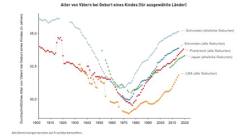 Väter bei Geburt von Kindern immer älter – Kein neues Phänomen10. April 2024 Das durchschnittliche Alter von Vätern bei der Geburt eines Kindes ist in Deutschland in den letzten Jahrzehnten stark gestiegen: Lag es 1991 noch bei 31,0 Jahren, waren Väter 2022 bei der Geburt ihrer Kinder im Schnitt 34,7 Jahre alt. (Foto: © Köpenicker – stock.adobe.com) Das durchschnittliche Alter von Vätern bei der Geburt eines Kindes ist in Deutschland in den letzten Jahrzehnten stark gestiegen. Von Teilen der Wissenschaft wird dieser Trend mit Sorge gesehen, da Kinder älterer Väter ein höheres Risiko haben, gesundheitlich beeinträchtigt zu sein. Forscher des Bundesinstituts für Bevölkerungsforschung (BiB) und der Universität Oldenburg zeigen nun allerdings, dass das Alter der Väter im historischen Vergleich nicht ungewöhnlich ist. Bei allen Ländern, für die Daten über die vergangenen 100 Jahre vorliegen, zeigt sich ein ähnliches Bild: Trotz hoher Anstiege in den zurückliegenden Jahrzehnten liegt das heutige Durchschnittsalter der Väter bei Geburt von Kindern mit 34,7 Jahren unter oder nur leicht über den zu Beginn des 20. Jahrhunderts verzeichneten Werten. So waren etwa in Frankreich um 1900 die Väter bei Geburt im Durchschnitt 34 Jahre alt, was dem heutigen Niveau entspricht. Bis in die 1970er-Jahre ging das Durchschnittsalter dann stark zurück und lag Anfang der 1970er um die 30 Jahre, bevor es ab 1980 wieder anstieg. Ähnliche Verläufe zeigen sich für Schweden, die USA, Japan und eine Reihe weiterer Länder. Für Deutschland sind Aussagen zu Langzeitentwicklungen nicht möglich, da Daten zum Alter der Väter bei Geburt ihrer Kinder erst seit 1991 durchgängig vorliegen. Alter von Vätern bei Geburt eines Kindes (für ausgewählte Länder). (Quelle: Bundesinstitut für Bevölkerungsforschung) Langfristig betrachtet sind niedrige Geburtsalter ungewöhnlich „Unsere Analysen vermitteln den Eindruck, dass eher die niedrigen Werte in den 1960er- und 1970er-Jahren ungewöhnlich waren“, erklärt Dr. Sebastian Klüsener vom BiB, Mitautor der Studie. Die hohen Alter zu Beginn des 20. Jahrhunderts erklären sich dadurch, dass die Familiengründung aus wirtschaftlichen Gründen relativ spät erfolgte. Damals gab es auch noch viele kinderreiche Familien, bei welchen die letzten Kinder in einem relativ hohen Alter geboren wurden. Dies änderte sich in der ersten Hälfte des 20. Jahrhunderts, als viele Gesellschaften sehr industriell geprägt waren. Damals konnten Erwerbstätige früh im Arbeitsleben höhere Einkommen erzielen, was für eine frühzeitige Familiengründung förderlich war. Gleichzeitig sank der Anteil kinderreicher Familien, sodass viele Eltern ihre Familienplanung früh abschlossen. Der für das Einkommen sorgende Ehemann und die sich um Haushalt und Kinder kümmernde Ehefrau waren das stark verbreitete Rollenbild dieser Zeit. Dies änderte sich ab den 1970er-Jahren. Im Zuge des Übergangs von einer Industrie- zu einer Dienstleistungsgesellschaft entstanden neue attraktive Karrieremöglichkeiten für Frauen. In dieser Zeit begannen sich auch die Rollenverständnisse von Frauen und von Männern zu ändern. Zusätzlich führten höhere Anforderungen an die berufliche Qualifikation und bessere Bildungsangebote zu längeren Ausbildungszeiten bei Männern und Frauen. Diese Entwicklungen trugen neben anderen Einflussfaktoren letztlich zu einem steigenden Geburtsalter bei. Einen älteren Vater zu haben kann auch von Vorteil sein Ob der Anstieg des Alters von Vätern bei der Geburt von Kindern tatsächlich Anlass zu Besorgnis ist, hängt von verschiedenen zum Teil noch wenig erforschten Faktoren ab. Während die mit dem Geburtsalter steigenden biologischen Gesundheitsrisiken für das Kind gut belegt sind, kann es auch von Vorteil sein, einen älteren Vater zu haben. Da ältere Väter in der Regel bereits mehr im Arbeitsmarkt etabliert sind, können sie ihren Kindern potenziell einen finanziell besser abgesicherten Start ins Leben ermöglichen. Außerdem gilt es die gestiegene Lebenserwartung und die Folgen des Fortschritts in der Medizin zu berücksichtigen: Ein heute 35 Jahre alter Mann ist im Durchschnitt gesünder als ein 35 Jahre alter Mann vor 50 Jahren. Durch den medizinischen Fortschritt werden zudem gesundheitliche Folgen abgemildert, die eine späte Vaterschaft für das Kind hat. „Wenn die bestehenden Forschungslücken weiter gefüllt sind, ist eine noch bessere Einschätzung der Vor- und Nachteile möglich“, meint Klüsener. „Die aktuellen oft als drastisch hoch bezeichneten Durchschnittsalter sind jedenfalls weder neu noch ungewöhnlich.“