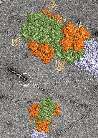 „Wachsendes Ende“ von Entzündungen entdeckt18. Mai 2022 Inga Hochheiser und Matthias Geyer (Foto: J.F.Saba/UKB) Forschende der Universitäten Bonn und Köln konnten zeigen, dass Entzündungsreaktionen eines wichtigen Sensorproteins in einer bestimmten räumlichen Richtung ablaufen. Diese Erkenntnis hat das Potenzial, Entzündungen möglicherweise am „wachsenden Ende“ zu stoppen, und somit chronischen Entzündungskrankheiten Einhalt zu gebieten. Wenn Bakterien oder Viren lebende Zellen befallen oder darin sonstige Fremdstoffe auftreten, wird der Gefahrensensor mit dem Kürzel NLRP3 aktiviert. “Auch die für die Alzheimer-Erkrankung charakteristischen Eiweißablagerungen im Gehirn, die sogenannten Amyloid-ß-Plaques, können NLRP3 in Gang setzen”, verweist Prof. Matthias Geyer vom Institut für Strukturbiologie des Universitätsklinikums Bonn auf frühere Studien. Wie diese vorangehenden Untersuchungen der Forscher zeigen, befeuert diese Reaktion sich zunehmend selbst: Die durch NLRP3 ausgelöste Entzündungsrektion fördert die weitere Ablagerung von Amyloid-ß-Plaques und trägt maßgeblich zum Krankheitsgeschehen bei. Einmal aktiviert, lagern sich mehrere NLRP3-Proteine aneinander an und bilden so den Keim für eine fadenförmige Struktur, an der sich immer weitere Proteine sammeln. “Die Reaktion kommt in Gang, sobald etwa ein Dutzend der NLRP3-Moleküle vorliegt”, berichtet Geyer. Theoretisch können sich unendlich viele NLRP3-Moleküle aneinander lagern und die fadenförmige Struktur – wissenschaftlich “Filament” genannt – immer weiter verlängern. Inga Hochheiser aus Geyers Team konnte nun zeigen, in welche Richtung dieses Filament wächst und sich weiter ausdehnt. “Diese Einblicke konnten wir mit Hilfe der Cryo-Elektronenmikroskopie gewinnen. Diese Methode erlaubt es, Eiweiß-Moleküle mit bis zu 80.000-facher Vergrößerung zu beobachten und so direkt sichtbar zu machen”, sagt Hochheiser.„Standbild” von der fadenförmigen Struktur unter dem Mikroskop Elektronenmikroskopische Aufnahme des Übergangs zwischen dem Gefahrensensor NLRP3 und seinem Signalprotein, dargestellt in der Vergrößerung mit der berechneten Proteinstruktur (Abb.: Inga V. Hochheiser) In winzigen Schritten träufelte die Wissenschaftlerin aus Zellen isoliertes NLRP3 auf einen Probenträger und fror diese Mischung schlagartig ein. Dadurch bekamen die Forscher unter dem Cryo-Elektronenmikroskop eine Art “Standbild” von der entstehenden fadenförmigen Struktur aneinandergelagerter NLRP3-Moleküle. “Aus diesen Einzelbildern ließ sich wie in einem Film nachvollziehen, wie sich die Filamente verlängern”, erklärt Hochheiser. Da beim Träufeln die Moleküle unterschiedlich auf den Probenträger fallen, sind sie unter dem Mikroskop aus verschiedenen Perspektiven zu sehen. Diese unterschiedlichen Ansichten lassen sich am Computer zu einem dreidimensionalen Bild kombinieren. Dabei zeigte sich, dass sich die Filamente nur in eine Richtung ausbilden. „So konnten wir einen Teil des Entzündungsapparates sichtbar machen und die Wachstumsrichtung buchstäblich ablesen“, ergänzt Geyer, der die Studie geleitet hat und Mitglied im Exzellenzcluster ImmunoSensation2 und dem Transdisziplinären Forschungsbereich „Life and Health“ der Universität Bonn ist.Chronische Entzündungskrankheiten stoppen “Die technische Herausforderung bestand darin, die Übergänge in den fadenförmigen Strukturen zu finden und im Bild sichtbar zu machen”, erklärt Prof. Elmar Behrmann vom Institut für Biochemie der Universität zu Köln. “Die neuen Erkenntnisse erlauben nun, das wachsende Ende der Entzündungsreaktion mit Hilfe von Antikörpern oder Wirkstoffen gezielt zu adressieren”, so Hochheiser. Damit kommen die Forschenden dem Ziel näher, den weiteren Aufbau des Entzündungsapparates zu stoppen und auf diese Weise chronischen Entzündungen entgegenzuwirken. Beteiligte Institutionen und Förderung: Neben dem Institut für Strukturbiologie und dem Institut für Angeborene Immunität des Universitätsklinikums Bonn sind an der Studie das Institut für Biochemie der Universität zu Köln sowie The Walter and Eliza Hall Institute of Medical Research in Melbourne (Australien) beteiligt. Am Forschungszentrum caesar in Bonn und dem Rudolf-Virchow-Zentrum der Universität Würzburg wurden Messungen durchgeführt. Die Studie wurde durch die Else Kröner-Fresenius-Stiftung und die Deutsche Forschungsgemeinschaft gefördert