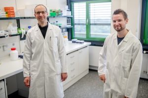 Warum Wirkstoffe manchmal ganz anders wirken als gewünscht6. Oktober 2020 Mithilfe einer speziellen Applikationstechnik und elektrophysiologischer Messungen konnten die Forscher die Arbeit der Rezeptoren vermessen. Das Bild zeigt einen Messstand für elektrophysiologische Patch-Clamp Messungen. (© RUB, Marquard) Manche besonders zielgenauen Wirkstoffe entfalten in Nervenzellen einen unerwünschten Effekt. Sie vermindern nicht nur die Aktivierung bestimmter Rezeptoren, sondern auch deren Abschaltung. Um bestimmte Gehirnkrankheiten gezielter und nebenwirkungsärmer zu behandeln, setzt die Forschung auf Medikamente, die ausschließlich bestimmte Subtypen von Rezeptoren für den Botenstoff Glutamat hemmen. Doch unter einigen Bedingungen entfalten solche Wirkstoffe eine gegenteilige Wirkung. Statt der gewünschten Hemmung der Rezeptoren wird deren Aktivität potenziert, wie Prof. Andreas Reiner und Stefan Pollok aus der Nachwuchsgruppe Zelluläre Neurobiologie der Ruhr-Universität Bochum (RUB) herausgefunden haben. Gesucht: Zielgenauere Wirkstoffe Glutamat ist der am häufigsten genutzte Botenstoff des Gehirns, um erregende Signale weiterzugeben. Die Rezeptoren für diesen Botenstoff sind ein vielversprechender Ansatzpunkt für die Entwicklung von Medikamenten, denn sie sind an vielen krankhaften Prozessen beteiligt. So spielen sie zum Beispiel bei Epilepsien, psychischen Störungen, Schlaganfall oder Hirntumoren eine Rolle. “In diesen Fällen wäre es wünschenswert, die Aktivität der Glutamatrezeptoren zu verringern”, erklärt Reiner. Für diesen Zweck wurden Wirkstoffe entwickelt, die die Aktivierung der Glutamatrezeptoren hemmen. Viele dieser Antagonisten hemmen allerdings alle Subtypen der Glutamatrezeptoren und führen damit zu unerwünschten Effekten und zahlreichen Nebenwirkungen. Um dieses Problem zu umgehen, wird derzeit verstärkt nach Wirkstoffen gesucht, die nur an bestimmte Subtypen binden. Wirkung der Substanzen direkt messen Daher untersuchten die Forscher die Wirkung solcher Antagonisten im Detail für ausgewählte Subtypen. Dazu verwendeten sie kultivierte Zellen, die nur einzelne Rezeptorsubtypen oder bestimmte Kombinationen enthalten. Mithilfe einer speziellen Applikationstechnik und elektrophysiologischer Messungen konnten die Forscher die schnelle Aktivierung der Glutamatrezeptoren, so wie sie an Synapsen im Gehirn erfolgt, nachbilden und damit den Einfluss der Antagonisten direkt messen. Machten eine überraschende Beobachtung: Andreas Reiner (l.) und Stefan Pollok. (© RUB, Marquard) Potenzierung statt Hemmung “Dabei haben wir eine überraschende Beobachtung gemacht”, berichtet Pollok. “Für bestimmte Rezeptorkombinationen kam es zwar wie erwartet zu einer Reduktion der Aktvierung. Gleichzeitig wurde aber der natürliche Abschaltvorgang vermindert oder sogar ganz außer Kraft gesetzt.” Im Ergebnis zeigte sich eine länger anhaltende und insgesamt stärkere Antwort als ohne den Antagonisten. Statt der gewünschten Hemmung war ein potenzierender Effekt zu beobachten. In weiteren Experimenten konnte das Team die molekularen Mechanismen dieses Verhaltens genauer klären: Der potenzierende Effekt ist immer dann zu beobachten, wenn die Antagonisten an Rezeptoren binden, die aus verschiedenen Untereinheiten bestehen, und dabei nur auf einen Teil dieser Untereinheiten wirken. “Solche sogenannten heteromeren Rezeptoren sind aber gerade für die Signalleitung im Zentralnervensystem von großer Bedeutung”, erklärt Reiner. Die Erkenntnisse sind damit zum einen für NeurowissenschaftlerInnen bedeutsam, die selektive Antagonisten zunehmend nutzen, um die Funktion der verschiedenen Rezeptorsubtypen zu entschlüsseln. Zum anderen dürfte die Studie auch die Entwicklung neuer Therapeutika beeinflussen. “Wir haben neue Einblicke in die Funktionsweise dieser faszinierenden Rezeptorklasse gewonnen”, erklärt Reiner. Künftig will er auch die Wirkung weiterer Wirkstoffklassen untersuchen. Originalpublikation:Pollok S et al. Subunit-selective iGluR antagonists can potentiate heteromeric receptor responses by blocking desensitization. PNAS, 30. September 2020
