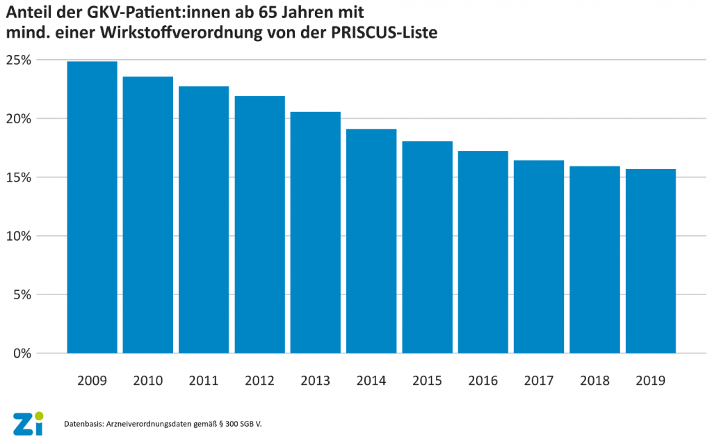 Weniger ältere Menschen erhalten für sie ungeeignete Medikation5. Juli 2021 Symbolbild: ©Pixel-Shot – stock.adobe.com Laut dem Zentralinstitut für die kassenärztliche Versorgung (Zi) ist der Anteil von älteren Menschen, die ein auf der PRISCUS-Liste aufgeführtes Medikament erhalten, seit 2009 deutlich gesunken. Die medizinische Versorgung einer alternden Bevölkerung mit Arzneimitteln ist für die niedergelassenen Ärztinnen und Ärzte eine alltägliche Herausforderung. Denn nicht alle in Deutschland zugelassenen Wirkstoffe bzw. Wirkstoffgruppen sind für Menschen ab 65 Jahren gleichermaßen gut verträglich. Aufgrund einer veränderten Pharmakokinetik und gleichzeitig häufig vorkommender Polymedikation ist die Gefahr unerwünschter Arzneimittelwirkungen bei älteren Menschen höher als bei jüngeren. Einige Wirkstoffe sind zusätzlich bei älteren Menschen generell problematisch, da sie zum Beispiel das Sturzrisiko erhöhen oder die Wahrnehmung beeinträchtigen können. Manche Arzneimittel werden deshalb für Senioren als potenziell ungeeignet eingestuft. 83 dieser für ältere Menschen potenziell ungeeigneten Wirkstoffe (PIM = potenziell inadäquate Medikation) sind seit 2010 in der PRISCUS-Liste zusammengefasst. Die PRISCUS-Liste umfasst jedoch nicht nur die potenziell inadäquaten Wirkstoffe, sondern enthält auch Hinweise auf Begleiterkrankungen, die die Gefahr beim Einsatz eines Wirkstoffs besonders erhöhen und nennt Therapiealternativen. Diese Hilfe wird auch von den behandelnden Ärztinnen und Ärzten intensiv genutzt und beeinflusst das Verordnungsverhalten: Während laut Zi-Angaben 2009 rund 3,35 Millionen Versicherte, also 25 Prozent aller Arzneimittelpatientinnen und -patienten, die 65 Jahre und älter waren, mindestens eine Verordnung eines Wirkstoffes von der PRISCUS-Liste erhalten haben, waren es 10 Jahre später nur noch 2,4 Millionen, also 16 Prozent. Anteil der gesetzlich krankenversicherten Patientinnen und Patienten ab 65 Jahren mit mindestens einer Verordnung eines Wirkstoffes von der PRISCUS-Liste (bezogen auf alle Patientinnen und Patienten mit mindestens einer Verordnung) 2009-2019. DatenbasisArzneiverordnungsdaten gemäß § 300 SGB V. Grafik: ©Zi „In den letzten Jahren ist das Bewusstsein für Wirkstoffe, die für ältere Patientinnen und Patienten potenziell ungeeignet sein könnten, gewachsen. Die Verordnung kann trotzdem indiziert sein, mit der PRISCUS-Liste haben Ärzte seit einigen Jahren aber eine Entscheidungshilfe zur Hand, die bei der Suche nach der für die Patientinnen und Patienten am besten geeigneten Medikation unterstützt. Dies schlägt sich in der Verordnungspraxis nieder“, so der Vorstandsvorsitzende des Zi, Dr. Dominik von Stillfried.