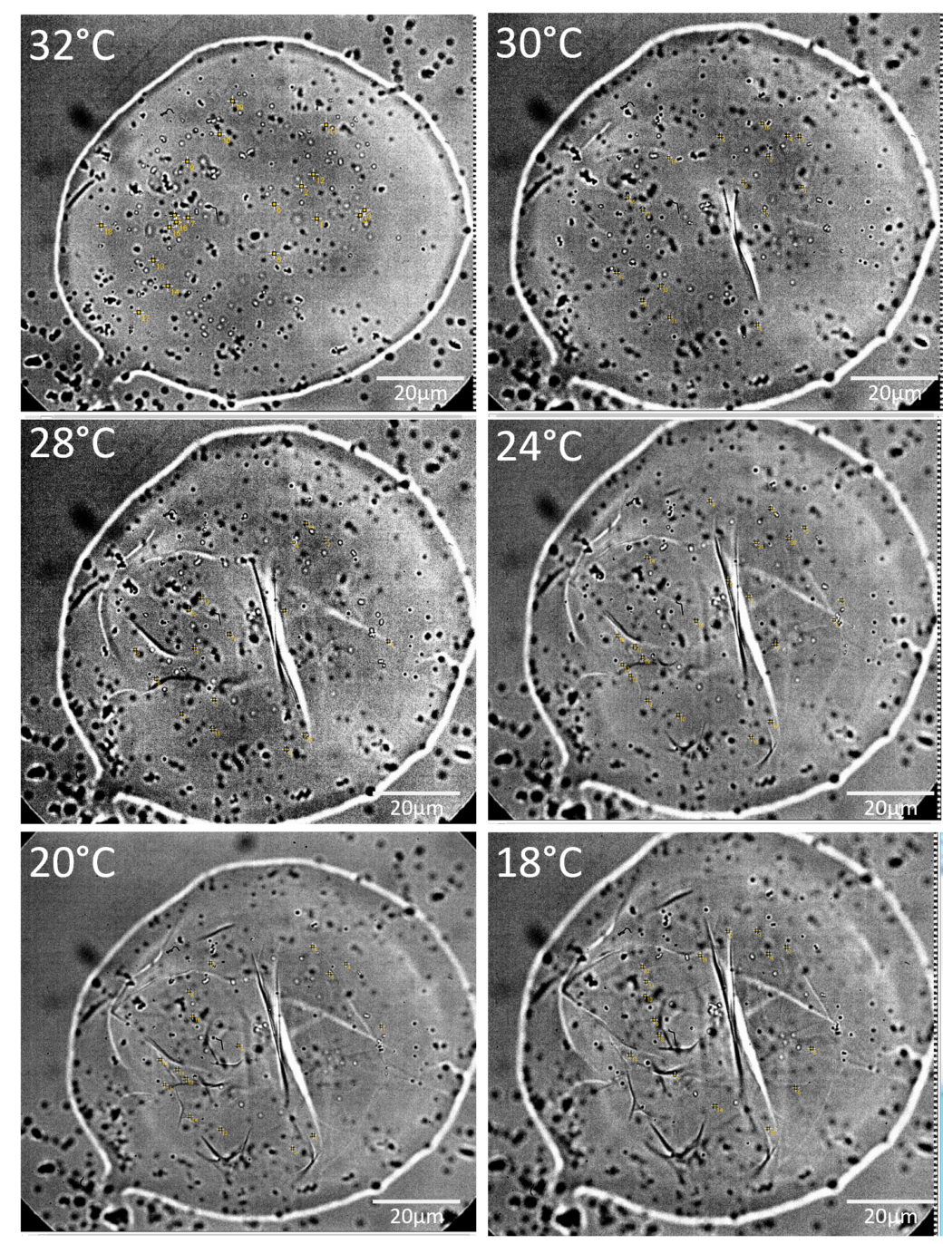 Wie Ameisen sich aktiv vor Wasserverlust schützen4. Juli 2025 Ameise der Art Myrmica rubra, hier beim Tragen eines Pflanzensamens Foto/©: Dr. Philipp Hönle Insekten schützen sich mit einer Wachsschicht vor dem Austrocknen – darüber hinaus dient diese aber auch zur Kommunikation. Während die chemischen Eigenschaften dieser Kohlenwasserstoff-Schicht bereits recht gut untersucht sind, haben Forschende der Johannes Gutenberg-Universität Mainz (JGU) und der Universität Paris nun erstmalig die physikalischen Eigenschaften analysiert – genauer gesagt die Viskosität, also die Zähflüssigkeit. Ihre Ergebnisse haben die Forschenden am 11. Juni 2025 im Wissenschaftsmagazin „Journal of the Royal Society Interface“ veröffentlicht. Die Erkenntnisse tragen zum Verständnis der physikalischen Mechanismen bei, die den biologischen Funktionen der Wachsschicht zugrunde liegen.„Anhand von Ameisen konnten wir zeigen, dass es nicht nur eine feste und eine flüssige Phase gibt, sondern dass auch die flüssige Phase zwei verschiedene Viskositäten besitzt: Einen dickflüssigen Teil, dessen Fließverhalten dem von Honig gleicht, sowie eine dünnflüssige Phase, die eher an Olivenöl erinnert“, sagt Priv.-Doz. Dr. Florian Menzel von der JGU. „Auf diese Weise können die verschiedenen Funktionen der Wachsschicht gleichzeitig erfüllt werden, auch bei schwankenden Temperaturen.“ Die Anforderungen an die Wachsschicht widersprechen einander Der Insektenbestand nimmt derzeit drastisch ab – was auch auf die globale Erwärmung zurückzuführen ist. Schließlich ist Hitze für Insekten besonders gefährlich, da ihre Oberfläche im Vergleich zum Körpervolumen sehr groß ist und sie somit sehr viel Flüssigkeit über ihren Chitinpanzer verlieren. Die Wachsschicht soll dies verhindern: Sie bildet eine Barriere, die die Wassermoleküle nur schwer passieren können. Je zähflüssiger sie ist, desto größer der Schutz gegen Wasserverlust. Doch enthält sie auch Kommunikationssignale, die von anderen Ameisen wahrgenommen werden und auf denen das Zusammenleben in einer Ameisenkolonie basiert. Für diese chemische Kommunikation untereinander muss die Wachsschicht jedoch möglichst dünnflüssig sein, damit die Hinweise gut wahrgenommen werden können. Komplexes Phasenverhalten sorgt für die passende Viskosität Wie verändert sich die Fließfähigkeit der schützenden Schicht mit der Temperatur? Um diese Frage zu beantworten, haben die Forschenden die Wachsschicht von Ameisen bei verschiedenen Messtemperaturen untersucht. Das Ergebnis: Wie bei allen Flüssigkeiten sinkt die Viskosität mit steigender Temperatur – ähnlich wie Honig beim Erwärmen dünnflüssiger wird. Einen interessanten Effekt entdeckte das Team allerdings, als es die Wachsschichten von Ameisen untersuchte, die bei verschiedenen Temperaturen gehalten wurden – also bei unterschiedlichen Akklimatisierungstemperaturen. „Bei diesen Wachsschichten trat ein umgekehrter Effekt auf: Hatte die Umgebung der Ameisen eine Temperatur von 28 Grad Celsius, war die Viskosität größer und die Schicht zähflüssiger als bei einer Akklimatisierungstemperatur von 20 Grad“, fasst Selina Huthmacher von der JGU die Ergebnisse zusammen. Sinn ergibt das allemal: Je heißer es ist, desto mehr Flüssigkeit verdampft. Die Insekten müssen sich mit steigenden Temperaturen also stärker gegen den Wasserverlust schützen, was mit einer zähflüssigeren Schutzschicht gelingt. „Die Insekten arbeiten also aktiv gegen die natürliche Viskositätsänderung, indem sie die chemische Zusammensetzung der Wachsschicht und damit ihre Fließfähigkeit ändern“, sagt Menzel.Bei den oben beschriebenen Ansätzen untersuchten die Forschenden, wie sich Änderungen entweder der Akklimatisierungstemperatur oder aber der Messtemperatur auf die Viskosität auswirken. Noch komplexer wird es, wenn man die Akklimatisierungstemperatur und die Messtemperatur gleichermaßen ändert: Wurden die Ameisen bei 28 Grad gehalten und die Schicht bei 28 Grad gemessen, entsprach die Viskosität derjenigen bei 20 Grad Akklimatisierungstemperatur und 20 Grad Messtemperatur. „Dieses komplexe Phasenverhalten ist äußerst spannend“, sagt Huthmacher. „Dadurch kann die Wachsschicht der Insekten sowohl als Austrocknungsschutz als auch zur Kommunikation dienen – obwohl beide Funktionen jeweils gegensätzliche Anforderungen stellen.“ Mit sinkender Messtemperatur bildet die Wachsschicht, die Ameisen vor Austrocknung schützt und zugleich der Kommunikation mit Artgenossen dient, zunehmend feste Gelstrukturen. Foto/©: Selina Huthmacher