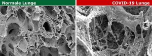 Wie SARS-CoV-2 die Lunge schädigt22. Mai 2020 Prof. Danny Jonigk (Foto: © Karin Kaiser/MHH) Ein internationales Team um eine Arbeitsgruppe von der Medizinischen Hochschule Hannover (MHH) hat Veränderungen im Lungengewebe durch SARS-CoV-2 nachgewiesen und die Ergebnisse im „New England Journal of Medicine“ veröffentlicht. Eine Infektion mit dem Coronavirus kann ebenso wie eine schwere Grippe die Atemwege massiv schädigen und zu einem tödlichen Lungenversagen führen. Welche molekularen Veränderungen SARS-CoV-2 im Lungengewebe von Patienten genau auslöst und wie sich diese von den Schäden durch das Influenzavirus unterscheiden, ist bislang jedoch kaum bekannt. Um die Krankheitsprozesse besser zu verstehen, hat jetzt ein internationales Forschungsteam aus Deutschland, den USA, Belgien und der Schweiz unter der Leitung von Prof. Danny Jonigk, Lungenspezialist am Institut für Pathologie der MHH, Lungen von an COVID-19 Verstorbenen untersucht und mit denen von an Influenza Verstorbenen verglichen. „Die Studie verbessert unser Verständnis, warum die Lungenfunktion bei SARS-CoV-2-Infizierten mit schweren Krankheitsverläufen so stark beeinträchtigt ist“, betont Jonigk. Mikrothromben verstopfen die feinsten Gefäße „Wir haben die Gewebeproben erstmals synergistisch mit einem sehr breiten Methodenspektrum von Mikro-Computertomografie, 3D-Elektronenmikroskopen und verschiedenen molekularbiologischen Methoden untersucht, um die Wege von SARS-CoV-2 aufzuspüren“, sagt Jonigk. Dabei konnten die Wissenschaftler zunächst das bereits bekannte akute Schadensmuster in der Lunge von COVID-19- Patienten nachweisen, den diffusen Alveolarschaden. Dieser liegt vor, wenn sich die Wände der Lungenbläschen entzünden, flächenhaft von Eiweißablagerungen bedeckt werden und so die Sauerstoffzufuhr in das Blut erschweren. „Wir haben außerdem eine massive Anzahl von Blutgerinnseln in allen Abschnitten der Blutgefäße in der Lunge gefunden, vor allem aber in den feinsten Gefäßen, den Kapillaren“, sagt der Pathologe. „Diese Mikrothromben verstopfen die feinen Lungengefäße und vergrößern so zusätzlich die Atemnot des Patienten.“ Das Phänomen gebe es zwar auch in schwer geschädigten Lungen nach Influenza-Infektionen, aber die Anzahl dieser kleinen Verstopfungen sei bei Grippetoten wesentlich geringer. Gesunde und von COVID-19 angegriffene Lunge. (Quelle: Universität Witten/Herdecke) Besonders auffällig ist zudem ein Befund, den Mediziner ansonsten vorrangig nur von Tumorerkrankungen, Autoimmunkrankheiten oder Vernarbungsprozessen kennen: SARS-CoV-2 löst offenbar eine besondere Form von Gefäßneubildungen in der Lunge aus. „Diese sogenannte intussuszeptive Neoangiogenese ist bisher im Rahmen des diffusen Alveolarschadens noch nicht beschrieben worden und unterscheidet COVID-19 grundlegend von vergleichbar schweren Lungeninfektionen durch Influenzaviren“, betont Jonigk und fasst zusammen: „Die drei in unserer Studie erstmals umfassend beschriebenen Veränderungen innerhalb der Lunge bei SARS-CoV-2-Infektionen sind die massive Blutgefäßschädigung, die überschießende Blutgerinnung mit Verstopfung der feinsten Lungengefäße und die für COVID-19 charakteristische Gefäßneubildung.“ Die Ergebnisse der Studie bewertet der Pathologe als weiteres Puzzleteil zu einer Entschlüsselung von COVID-19. Gelöst sei das Rätsel um das Coronavirus aber noch lange nicht. Weitere Studien seien erforderlich, um die Mechanismen der Gefäßveränderungen zu verstehen und letztlich in therapeutische Ansätze umzumünzen. Blick durch das Mikroskop: Für COVID-19 typische Verteilung von Entzündungszellen (grün: T-Lymphozyten, lila: B-Lymphozyten). Foto: © MHH/AG Lungenforschung „Wir konnten erstmals die ausgeprägten und großflächigen Schädigungen der Blutgefäße zeigen, die die Blutzufuhr zu den Endorganen wie etwa Lunge, Herz, Niere oder Gehirn vermindern“, erklärt PD Dr. Maximilian Ackermann, Wissenschaftler am Institut für Pathologie und Molekularpathologie der Universität Witten/Herdecke, die Ursache für die klinisch beobachteten Komplikationen (Mikroembolien) bei den COVID-19 Patienten. Besonders in der Lunge ist ein intaktes Gefäßsystem wesentlich für die Aufrechterhaltung der Sauerstoffaufnahme, da über 80 Prozent des Lungengewebes aus kleinsten Blutgefäßen besteht. Kleinste Schädigungen und Einschränkungen des Blutflusses können daher in kürzester Zeit zu lebensbedrohlichen Konsequenzen führen. Auf Grundlage dieser Forschungsergebnisse können sich auch neue Ansätze für die Behandlung der Krankheitskomplikationen ergeben. „Wir sehen COVID-19 jetzt weniger als alleinige Lungenkrankheit, insofern könnte die beobachtete Einschränkung des Blutflusses sowie der Blutgefäßneubildung zukünftig ein neues Ziel therapeutischer Maßnahmen darstellen“, ergänzt Prof. Kvasnicka. Daher erscheinen auch erweiterte immunmodulatorische Therapieansätze sinnvoll, welche helfen die SARS-CoV-2-induzierte Entzündungskaskade einzudämmen.