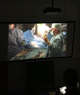 Würzburger Universitäts-HNO-Klinik: OP-Live-Übertragungen „auf Spitzenniveau“20. März 2023 Kristen Rak, der stellvertretende Direktor der Würzburger Universitäts-HNO-Klinik, demonstriert, wie an einem Kunststoff-Felsenbein und mit Hilfe einer Endoskop-Kamera Mittelohr-Operationen auch online erlernt werden können. Foto: UKW/Johannes Völker Nach umfangreichen Entwicklungs- und Installationsarbeiten verfügt die HNO-Klinik des Uniklinikums Würzburg jetzt über ein neues Mediennetzwerk, mit dem Operationen zu Schulungszwecken nach höchsten Standards übertragen werden können – nicht nur innerhalb der Klinik. Die Video-Übertragung vom Operationssaal in den Hörsaal hat an der HNO-Klinik des Uniklinikums Würzburg (UKW) eine lange Tradition: Mit Unterstützung der Dr.-Herbert-Brause-Stiftung Würzburg können schon seit dem Jahr 2006 Studierende und Kursteilnehmende in dreidimensionalen Live-Bildern am OP-Geschehen teilnehmen und mit dem Operateur kommunizieren. Was zunächst nur vor Ort möglich war, wurde zu Beginn der Corona-Pandemie im Jahr 2020 durch ein aufwändiges Live-Broadcast- und -Streaming-System zu einem Online-Angebot erweitert. Konzept für neues Audio-Video-Netzwerk erarbeitet „Parallel zu dieser letzten Entwicklung fassten wir den Plan, das gesamte System technologisch auf den heute bestmöglichen Stand zu heben, der zudem Raum für zukünftige Weiterentwicklungen gibt“, schildert Klinikdirektor Prof. Rudolf Hagen. Deshalb gründete er im Jahr 2020 ein Team zur Modernisierung der Anlage. Die Projektleitung übernahmen der stellvertretende Klinikdirektor Prof. Kristen Rak und der Oberarzt Dr. Johannes Völker. Das in der Folge erarbeitete Konzept für ein neues Audio-Video-Netzwerk wurde von der Dr.-Herbert-Brause-Stiftung erneut gefördert, diesmal mit 130.000 Euro. „Unsere Ziele dabei waren vielfältig“, beschreibt Völker und fährt fort: „Während bisher nur Bilder von einzelnen wenigen OP-Mikroskopen übertragen werden konnten, sollte das neue Netzwerk alle fünf regulären sowie den experimentellen OP-Saal der HNO-Klinik, deren Felsenbein-Labor und Konferenzräume, das klinikeigene Videolabor und das Direktorat einbinden – und zwar bidirektional.“ Außerdem sollte die Bildauflösung auf 4K erhöht werden. Die damit mögliche detail- und kontrastreiche sowie besonders dynamische Darstellung ist zum Beispiel von modernen Heimkinoanlagen bekannt. 25 km Glasfaserleitungen als Infrastruktur-Voraussetzung Eine zentrale Voraussetzung für die Neukonzeption war die Installation eines Mehrfaser-Glasfaser-Netzwerks – 25 Kilometer der leistungsfähigen Datenleitungen wurden in den letzten Monaten in der HNO-Klinik an der Josef-Schneider-Straße verlegt und mit bislang 150 Endgeräten an 20 Endpunkten verbunden. Zu diesen zählen zwei spezielle Projektoren, die für eine brillante 4K/3D-Projektion im Hörsaal angebracht und hochpräzise ausgerichtet wurden. „Unser Wunsch war es ferner, in die 3-D-Projektion auch zweidimensionale Bilder – wie Audiogramme, Grafiken oder Röntgenbilder – einklinken zu können“, berichtet Hagen. Allerdings bot der Markt hierfür keine fertigen Lösungen, so dass die HNO-Klinik in der Konzeptionierungsphase eigene Experimente durchführen musste. „Glücklicherweise standen uns bei der technologischen Entwicklung und Umsetzung neben unseren hauseigenen Technikern die Expertinnen und Experten des Servicezentrums Medizin-Informatik des UKW sowie der Rottendorfer Firma Soulution zur Seite“, betont der Klinikdirektor. Erfolgreicher Praxistest beim diesjährigen Mikrochirurgischen Mittelohr-Kurs Die Modernisierung des Mediensystems war rechtzeitig abgeschlossen, um beim 35. Mikrochirurgischen Mittelohr-Kurs vom 13. bis 15. Februar 2023 seine erfolgreiche Feuertaufe zu durchlaufen. So hatten im Hörsaal die mit Polarisationsbrillen ausgestatteten, rund 56 Teilnehmerinnen und Teilnehmer aus zwölf Ländern zum Beispiel pixelgenau die gleiche dreidimensionale Sicht auf das Operationsfeld, wie es sich dem Operateur mit dem digitalen Operationsmikroskop Arriscope bietet. Und das in riesenhafter Vergrößerung: Mittelohrstrukturen, die in der Realität nur wenige Millimeter groß sind, füllten im Hörsaal eine Projektionsfläche mit einer Diagonalen von sieben Metern. „Das Auditorium wie auch unsere externen Referenten waren schlichtweg begeistert“, freut sich Hagen. Neben den Zuschauerinnen und Zuschauern vor Ort nutzen 42 Personen aus elf Nationen die Möglichkeit zur Online-Teilnahme über das interaktive Broadcast-System. „Im Moment sehen diese die Bildinhalte auf ihren heimischen Computerbildschirmen noch in 2D, aber es zeichnet sich ab, dass zukünftig auch dort eine dreidimensionale Wiedergabe technisch möglich sein wird“, kündigt Prof. Hagen an. Er resümiert: „Mit dem Mediennetzwerk haben wir die Voraussetzungen für hochwertige Fachfortbildungen ohne Reiseaufwendungen sowie eine moderne Online-Lehre geschaffen, die auch kommende Technologien flexibel integrieren kann.“ Operationstraining jetzt auch online möglich Beim diesjährigen mikrochirurgischen Mittelohr-Kurs konnten die Teilnehmerinnen und Teilnehmer im Hörsaal auch wieder den Klinikdirektor Prof. Rudolf Hagen bei der Durchführung einer OP live beobachten. Bild: UKW/S. Hagen Zu den seit über drei Jahrzehnten von der HNO-Klinik des UKW veranstalteten Mikrochirurgischen Mittelohr-Kursen gehören neben Live-OPs und Vorträgen traditionsgemäß auch Trainingssitzungen im Felsenbein-Labor. Das Felsenbein ist der Teil des Schädels, der das Mittel- und Innenohr enthält. Im Labor der HNO-Klinik konnten auch in diesem Jahr wieder 24 Kursteilnehmerinnen und -teilnehmer an Präparaten dieses Knochenabschnitts diverse mikrochirurgische Techniken mit Originalgeräten selbst erproben. Als Innovation wurde dieses Angebot heuer erstmals auch als Fernkurs angeboten. Dazu sandte die Klinik zehn interessierten Ärztinnen und Ärzten aus aller Welt vor