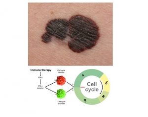 Zentraler Mechanismus der Tumorkontrolle entdeckt13. März 2020 Oben: Melanom. Unten: Die Immuntherapie von metastasierten Tumoren benötigt neben der Tumorzerstörung, die Induktion eines Interferon-abhängigen Wachstumsstillstands, indem Interferon entweder die Wachstumsbremsen (rot) aktiviert oder die Wachstumsbeschleuniger (grün) hemmt. Quelle: Universitäts-Hautklinik Tübingen Die Immunkontrolle von Tumoren beruht auf der Tumorzerstörung über Zytolyse oder Apoptose. Dennoch wachsen Tumoren oft unkontrolliert, auch bei einer zunächst wirksamen Immunantwort. Wissenschaftler um Prof. Martin Röcken von der Universitäts-Hautklinik Tübingen haben jetzt erkannt, dass eine effektive Tumorimmunkontrolle dringend noch einen zweiten, bisher nicht erkannten Mechanismus benötigt: die Induktion eines stabilen Wachstumsarrests in jenen Tumorzellen, die durch die Immunantwort nicht zerstört werden. Die Induktion des Wachstumsarrests erfolgt über eine Interferon-abhängige Induktion eines stabilen Zellzyklusarrests in den Tumorzellen, der auch Seneszenz genannt wird. Ist dieser Signalweg empfindlich gestört, kann eine Immunantwort weder bei experimentellen Tumoren noch beim metastasierten schwarzen Hautkrebs (Melanomen) des Menschen das Tumorwachstum wirksam verhindern. Aktuell wurde die Forschungsarbeit im Fachjournal “Nature Communications” publiziert (1). Zytotoxische Immunreaktionen können Tumoren zerstören. Die Knochenmarktransplantation und die T-Lymphozytentransfusion bei bösartigen hämatologischen Erkrankungen zeigten exemplarisch, dass eine Tumorkontrolle durch zytotoxische T-Lymphozyten (CTL) und natürliche Killerzellen (NK) prinzipiell auch beim Menschen möglich ist. Allerdings erwiesen sich solide Tumoren als weitgehend resistent gegen Immuntherapien, obgleich Therapieerfolge bei einzelnen Tumorpatienten immer wieder beobachtet wurden. Dies änderte sich mit der Einführung der Immun-Checkpoint-Blockade (ICB). Die ICB induziert insbesondere beim metastasierten Melanom und beim nicht kleinzelligen Lungenkarzinom sowie einigen anderen Tumoren bei einer signifikanten Anzahl von Patienten eine Tumorregression und langfristige Tumorkontrolle (2). Mittels Antikörpern, die eine ICB bewirken, konnten erstmalig bei zahlreichen Patienten zytotoxische T-Lymphozyten und natürliche Killerzellen in vivo so reaktiviert werden, dass Tumorzellen und ganze Tumormetastasen weitgehend oder ganz zerstört werden. Dies geht bei knapp der Hälfte der Patienten mit einer Verbesserung des klinischen Verlaufs der Tumorerkrankung und einem verlängerten Überleben einher (1, 2). Wichtig sind dabei zwei Aspekte: A) Die Therapie funktioniert nur, wenn Tumorzellen durch Lyse oder Apoptose zerstört werden. B) Die Therapie wirkt trotz wirksamer Zytotoxizität bei weniger als der Hälfte aller Patienten. Warum wirkt die Immun-Checkpoint-Blockade nur bei maximal der Hälfte aller Patienten? Hier setzt das Tübinger Forschungsprojekt an und untersucht, unter welchen Bedingungen Tumoren auch dann wachsen, wenn eine Tumortherapie zur zytotoxischen Zerstörung der Tumorzellen führt.In 2013 zeigte die Arbeitsgruppe erstmalig, dass Interferon-γ-produzierende T-Helfer-Zellen in der Lage sind, maligne Tumoren zu kontrollieren, indem sie in den Tumorzellen einen stabilen Wachstumsarrest, der auch Seneszenz genannt wird, induzieren (3). In der aktuellen, von der Wilhelm Sander-Stiftung unterstützten Arbeit (1), zeigt die Arbeitsgruppe erst experimentell beim Tier und anschließend beim Menschen, dass eine Tumorimmuntherapie neben der Zytotoxizität dringend noch einen zweiten Mechanismus benötigt: Eine Tumorkontrolle ist nur dann erfolgreich, wenn die infiltrierenden Immunzellen die Tumoren nicht nur zerstören, sondern die überlebenden Tumorzellen auch in einen stabilen Wachstumsarrest überführen. Selbst mit den wirksamsten Immun-Checkpoint-Inhibitoren in Kombination wirkt eine Tumorimmuntherapie nur dann, wenn in den Tumoren die Gene der Interferon-γ-Signalkaskade einschließlich der Interferon-γ-regulierten Zellzyklusbremsen, wie CDKN2A oder CDKN1A, funktionsfähig sind. Fehlt das Interferon-γ Signal, dann können zwar die Tumoren weiter durch zytotoxische Immunantworten zerstört werden, aber sie können durch die Interferon-γ-Signalkaskade nicht mehr zum Stillstand gebracht werden. Die natürlichen Zellzyklusbremsen CDKN2A und CDKN1A werden nicht mehr durch Interferon-γ aktiviert und die Tumoren wachsen unkontrolliert, trotz einer regelgerechten Aktivierung der zytotoxischen Immunantworten. Das unkontrollierte Tumorwachstum ist mit großer Wahrscheinlichkeit auf die fehlende Aktivierung der Zellzyklusbremsen zurückzuführen: Fehlen nämlich den Tumoren nicht das Interferon-Signal, sondern Interferon-aktivierte Zell-Zyklus-Bremsen wie CDKN2A oder CDKN1A, wachsen die Tumoren unkontrolliert, selbst wenn sie durch zytotoxische Immunantworten zerstört werden. Somit konnten die Tübinger Wissenschaftler erstmalig beweisen, dass A) in vivo Immunantworten über Interferon-γ-abhängige Signale in Tumoren molekulare Bremsen aktivieren und somit diese Tumoren anhalten können; B) in vivo zytotoxische Immunantworten oftmals nicht ausreichen, um die Tumoren komplett zu zerstören, sondern zusätzlich die Induktion eines Wachstumsarrests, die Seneszenzinduktion, als zweiten Mechanismus benötigen, um verbliebene Tumorzellen wirksam kontrollieren zu können. Davon ausgehend untersuchten die Forscher Melanommetastasen bei Menschen, die unter einer Immuntherapie entweder unkontrolliert schnell weiter wuchsen oder sich zurück bildeten. Diese Analyse war wichtig, da eine vollständige Tumorelimination auch unter der jüngst entwickelten Immun-Checkpoint-Blockade selten ist; eher kommt es zur Größenreduktion und einem Wachstumsarrest der Metastasen. Bei der Untersuchung der Wachstums-fördernden und Wachstums-anhaltenden Zellzyklusregulatoren in diesen Metastasen zeigte sich in den Melanommetastasen des