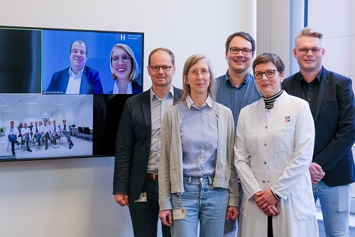 Zentrum für Personalisierte Medizin – Onkologie am UKSH zertifiziert1. Februar 2024 Bild: ©Coloures-Pic – stock.adobe.com In der personalisierten Krebsmedizin arbeiten die Experten des Universitätsklinikums Schleswig-Holstein (UKSH) deutschlandweit auf höchstem Niveau. Das bestätigt die Deutsche Krebsgesellschaft (DKG): Sie hat das „Zentrum für Personalisierte Medizin – Onkologie am UKSH“ zertifiziert. Besonders hervorgehoben wurde von der DKG die exzellente Zusammenarbeit der verschiedenen Disziplinen innerhalb des Zentrums und die Einrichtung einer umfassenden Infrastruktur für die Durchführung früher klinischer Studien an beiden Standorten. „Wir sind stolz auf die Anerkennung der Fachgesellschaft, die die Expertise unseres interdisziplinären Teams belegt. Unser Fokus liegt auf der Einzigartigkeit unserer Patientinnen und Patienten. Wir versuchen, für jede und jeden von ihnen die Therapie zu finden, die im individuellen Fall die besten Ergebnisse verspricht“, sagt Prof. Cyrus Khandanpour, Vorstandsmitglied des Universitären Cancer Centers Schleswig-Holstein (UCCSH) und stellvertretender Direktor der Klinik für Hämatologie und Onkologie des UKSH, Campus Lübeck. „Wir haben für unser Zentrum eine digitale Infrastruktur aufgebaut, die in Deutschland besonders ist. So können wir große Datenmengen in kurzer Zeit analysieren. Ziel ist es, die Erkenntnisse aus der personalisierten Diagnostik auch in die Breite der Versorgung zu tragen, so dass sie allen Krebspatientinnen und -patienten zugutekommen“, sagt Prof. Hauke Busch, Direktor des Instituts für Experimentelle Dermatologie des UKSH, Campus Lübeck, und der Universität zu Lübeck, der das Zentrum für Personalisierte Medizin – Onkologie gemeinsam mit Khandanpour leitet. Zum Team des ZPM gehören am Campus Lübeck: Lorenz Oelschläger, Klinik für Hämatologie und Onkologie, PD Dr. Niklas Gebauer, stellvertretender Sprecher des ZPM, Dr. Friederike Wortmann, Klinik für Hämatologie und Onkologie, Niklas Reimer, Systembiologie, Dr. Stephanie Fliedner, wissenschaftliche Geschäftsleitung des ZPM, Prof. Hauke Busch, Sprecher des ZPM, Prof. Nikolas von Bubnoff, Vorstandsmitglied des UCCSH und Leitung des Molekularen Tumorboards, Prof. Cyrus Khandanpour, Sprecher des ZPM und Leitung des Molekularen Tumorboards, Dr. Axel Künstner, Systembiologie, und Jareth Markmann, Administration Personalisierte Onkologie (v. l.) Auf dem Bildschirm: Ulrich Klees, kaufmännische Geschäftsleitung des ZPM und Konstanze Lorenz, kaufmännische Direktion des campusübergreifenden Diagnostikzentrums, (oben) sowie das ZPM-Team am Campus Kiel. Foto: UKSH Maßgeschneiderte Therapien Das Kompetenzzentrum umschließt eine Vielzahl von Fachbereichen und Arbeitsgruppen mit Mitwirkenden an beiden Standorten, Kiel und Lübeck, unter anderem für individualisierte und experimentelle Therapie, molekulare Diagnostik, funktionelle und molekulare Bildgebung und Datenintegration und -analyse. Herzstück des Zentrums ist jedoch das Molekulare Tumorboard. Hier wird nach Ansatzpunkten für maßgeschneiderte personalisierte Therapien gesucht, die die Krebszellen bekämpfen. Bei mehr als 1000 Patienten des UKSH und aus onkologischen Praxen in ganz Schleswig-Holstein hat die Fachkonferenz bereits Empfehlungen für die weitere Behandlung entwickelt. Fach- und campusübergreifende Zusammenarbeit im Zentrum für Personalisierte Medizin – Onkologie am UKSH (ZPM): Am Campus Kiel fotografiert wurden Prof. Malte Spielmann, Direktor des Instituts für Humangenetik, Prof. Almuth Caliebe, stellvertretende Direktorin des Instituts für Humangenetik, Dr. Lorenz Bastian, stellvertretender Sprecher des ZPM und Leitung des Molekularen Tumorboards, Prof. Anne Letsch, Vorstandsmitglied UCCSH, Prof. Björn Konukiewitz, Leitung des Moduls für Molekularpathologie (v. l.)Auf dem Bildschirm: Ulrich Klees, kaufmännische Geschäftsleitung des ZPM und Konstanze Lorenz, kaufmännische Direktion des campusübergreifenden Diagnostikzentrums, (oben) sowie das ZPM-Team am Campus Lübeck.Foto: UKSH Sowohl Ärztinnen und Ärzte als auch Fachleute aus der Humangenetik, der Bioinformatik, der Molekularbiologie und der Pathologie nehmen am Molekularen Tumorboard teil, das 2018 eingerichtet wurde und seit 2020 campusübergreifend alle 14 Tage durchgeführt wird. Um unterschiedliche Expertisen einzubeziehen, wird auf die Kompetenzen und Ressourcen der 37 Organkrebszentren des UCCSH zurückgegriffen, einem Zusammenschluss aller onkologischen Einrichtungen des UKSH, der Christian-Albrechts-Universität zu Kiel und der Universität zu Lübeck. Zu jedem einzelnen ungewöhnlichen Krankheitsverlauf oder seltenen Tumor, der im Molekularen Tumorboard vorgestellt wird, werden im Einvernehmen mit den Patienten, denen diese Chance geboten werden kann, die jeweiligen Gewebeproben mithilfe modernster Technologien analysiert. Rund 20.000 Gene des Tumorgewebes werden auf spezifische Mutationen hin untersucht. Dazu wird ausgiebig nach neuesten wissenschaftlichen Erkenntnissen zu den Ergebnissen recherchiert. In mehr als der Hälfte der Fälle werden Veränderungen gefunden, aus denen das Molekulare Tumorboard individuell passende Therapieansätze ableitet. Versorgung und Lebensqualität verbessern „Dieses Vorgehen überwindet das Denken in ‚Organschubladen‘ und macht die Medizin personalisierter. Das Molekulare Tumorboard trägt außerdem zur besseren Erforschung seltener Krebserkrankungen und molekular definierter Subgruppen bei“, sagt Prof. Nikolas von Bubnoff, Vorstandsmitglied des UCCSH und Direktor der Klinik für Hämatologie und Onkologie, Campus Lübeck, der das Molekulare Tumorboard gemeinsam mit Prof. Jutta Kirfel, Institut für Pathologie, Campus Lübeck, Dr. Lorenz Bastian, Klinik für Innere Medizin II mit den Schwerpunkten Hämatologie und Onkologie, Campus Kiel, PD Dr. Niklas Gebauer, Klinik für Hämatologie und Onkologie, Campus Lübeck, und Prof. Cyrus Khandanpour leite