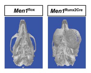 Zufallsfund: Mausmodell für seltenen Kiefertumor entdeckt19. April 2018 Prof. Dr. Jan Tuckermann. Foto: Elvira Eberhardt/Uni Ulm Ulmer Wissenschaftler Ulm haben ein Mausmodell entwickelt, das zufällig die gleichen Symptome zeigt wie ein seltener Kiefertumor beim Menschen (Ossifizierendes Fibrom). Ein von der Deutschen Krebshilfe gefördertes Projekt soll klären, ob sich die Entstehungsmechanismen bei Maus und Mensch gleichen. Unkontrolliert wachsende Knochenzellen deformieren den Kieferknochen mit der Zeit immer mehr, bis dieser nur noch unter Schmerzen zu gebrauchen ist oder völlig nutzlos wird. Nicht selten kommt es zu Entstellungen im Gesicht. Das Ossifizierende Fibrom (OF), gehört zwar zu den seltenen und gutartigen Tumorerkrankungen, doch die Betroffenen leiden darunter sehr. Die Aufnahmen aus dem Mikro-Computertomographen zeigen links den gesunden Unterkiefer einer Wildtypmaus und rechts den Kiefer einer Maus mit einem massiven Kiefertumor. Foto: Institut für Molekulare Endokrinologie der Tiere Wissenschaftler der Universität Ulm stießen im letzten Jahr auf einen bedeutsamen Zufallsfund. Die Knochenforscher haben bei Experimenten zum Knochenumbau ein Mausmodell entwickelt, das ebenfalls starkes Zellwachstum im Kieferbereich zeigt. Für ihr Mausmodell hatten die Molekularbiologen des Instituts für Molekulare Endokrinologie der Tiere das Tumorsuppressorgen Men1 deaktiviert, das für das Protein Menin kodiert. „Histologische Untersuchungen der Tumoren von Mensch und Maus haben schließlich große Ähnlichkeiten in den krankhaften Gewebeveränderungen gezeigt“, erklärt Prof. Jan Tuckermann, Leiter des Instituts für Molekulare Endokrinologie der Tiere an der Universität Ulm. Das OF, entsteht aus Zellen, die aus dem sogenannten dentalen Ligament kommen, und die in einem frühen Stadium der Knochenzellreifung verblieben sind. Mit Hilfe der 283.600 Euro von der Deutschen Krebshilfe wollen die Ulmer Forscher nun im Detail aufklären, welche Zellen an der Tumorbildung beteiligt sind. Außerdem gilt es herauszufinden, welche herunter- und hochregulierten Signalwege hier eine Rolle spielen. Die Wissenschaftler aus Ulm kooperieren dafür mit Kollegen des Deutsch-Österreichisch-Schweizerischen Arbeitskreises für Tumoren aus dem Kiefer und Gesichtsbereich (DÖSAK), die bereits humane Proben für das Projekt bereitgestellt haben. Durch die genetische Charakterisierung und Validierung des Mausmodells im Hinblick auf das OF erhoffen sich die Wissenschaftler nicht nur Rückschlüsse auf die molekularen Prozesse bei der Krankheitsentstehung im Menschen. „Wir möchten außerdem diagnostische Marker identifizieren, die helfen, diese Erkrankung frühzeitig zu erkennen“, sagt Dr. Sabine Vettorazzi, Wissenschaftliche Mitarbeiterin am Institut. Das OF wird in frühen Phasen meist zufällig von Zahnärzten sowie von Kieferchirurgen oder -orthopäden auf Röntgenaufnahmen entdeckt. Ist diese Tumorerkrankung bereits fortgeschritten, machen sich mit der Zeit massive Beschwerden und auch äußerlich sichtbare Veränderungen bemerkbar. Bislang bleibt kein anderer Behandlungsweg als der operative Eingriff. Nicht selten sind Bereiche des betroffenen Knochengewebes zementiert, was die chirurgische Entfernung erschwert. Umso wichtiger ist es für das Forscherteam nach Ansatzpunkten für eine therapeutische Intervention zu suchen. „Falls die molekulargenetischen Mechanismen im Detail bekannt sind, lassen sich möglicherweise Medikamente entwickeln, die das Tumorwachstum nicht nur aufhalten, sondern in Zukunft vielleicht sogar verhindern, dass dieser Tumor überhaupt erst entsteht“, so Tuckermann. Einige heiße Spuren verfolgen die Wissenschaftler bereits.