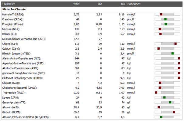 Zum World Liver Day 2026: Chronisch immunmediierte Hepatitis beim Hund19. April 2026 Abb. 1: Ultrasonographisches Bild der Leber: generalisiert hyperechogenes Parenchym mit hypoechogenen wenige Millimeter großen, mäßig gut abgrenzbaren Arealen. Aufn.: © Katrin Kremer/Tierklinik Hofheim Tierärzte IVC Evidensia GmbH Ein 9-jähriger Mischlingsrüde wurde mit persistierend erhöhten Leberenzymen und Gewichtsverlust in der Tierklinik Hofheim vorgestellt. Tierärztin Katrin Kremer beschreibt Diagnostik und Therapie eines Falles von chronisch immunmediierter Hepatitis. Bereits vier Monate zuvor waren bei dem Hund erhöhte Leberenzyme festgestellt worden, die sich im weiteren Verlauf verschlechterten. Zusätzlich zeigten sich inzwischen erniedrigte Leberfunktionsparameter, was auf eine fortschreitende hepatische Beeinträchtigung hinwies (Abb. 2). Die sonographische Untersuchung ergab ein inhomogenes Leberparenchym (Abb. 1). Abb 2: Laboruntersuchung bei Vorstellung: erhöhte Leberenzyme (ALT, AST), weniger ausgeprägte Erhöhung der cholestatischen Parameter (erhöhte AP & GGT) sowie erniedrigte Leberfunktionsparameter (Hypalbuminämie, Hypocholesterinämie, erniedrigter Harnstoff, Hypoglykämie) © Katrin Kremer/Tierklinik Hofheim Tierärzte IVC Evidensia GmbH Erste Maßnahmen Es wurde zunächst eine unterstützende Therapie mit hepatoprotektiven Präparaten (S-Adenosylmethionin, Mariendistel/Silymarin) sowie diätetischen Maßnahmen in Form einer Leberdiät (eiweißreduziert, fettarm, mit hochwertigen Proteinen und Antioxidantien) fortgeführt. Diagnostik der chronisch immunmediierten Hepatitis Zur weiterführenden Diagnostik wurde eine laparoskopische Leberbiopsie durchgeführt. Die bakteriologische Untersuchung von Leber- und Galleproben ergab keine Auffälligkeiten, ebenso lieferte die quantitative Bestimmung des Kupfergehalts keinen Hinweis auf eine Kupferspeichererkrankung. Auch die histopathologische Analyse zeigte weder Anzeichen für diese Form der Lebererkrankung noch für eine infektiöse Ursache. Stattdessen wurde eine chronische, teilweise fibrosierende Hepatitis diagnostiziert, die anhand der histopathologischen Befunde als chronisch immunmediierte Hepatitis eingeordnet werden kann und zu den häufigeren Ursachen chronischer Leberentzündungen beim Hund zählt. Charakteristisch für die chronisch immunmediierte Hepatitis sind eine lymphoplasmazelluläre Entzündung, apoptotische Hepatozyten sowie fibrotische Veränderungen bei fehlender identifizierbarer Ursache. Differentialdiagnostisch sollte diese Form der Hepatitis insbesondere von einer unspezifischen reaktiven Hepatitis sowie von medikamentös oder toxisch bedingten, neoplastischen, kupferspeicherassoziierten oder infektiösen Lebererkrankungen abgegrenzt werden. Therapie und Verlauf Die eingeleitete immunsuppressive Therapie mit Ciclosporin führte zu einer raschen klinischen und labordiagnostischen Verbesserung. Bereits drei Wochen nach Therapiebeginn zeigte der Patient eine deutliche Gewichtszunahme, begleitet von einer Normalisierung der Leberenzyme sowie der Leberfunktionsparameter (Abb. 3). Abb. 3: Laborkontrolle drei Wochen nach Beginn der Ciclosporintherapie © Katrin Kremer/Tierklinik Hofheim Tierärzte IVC Evidensia GmbH Der Fall unterstreicht die klinische Relevanz einer frühzeitigen und gezielten Diagnostik bei unspezifischen Symptomen wie Gewichtsverlust und veränderten Leberwerten. Insbesondere bei Verdacht auf immunvermittelte chronische Hepatitiden kann eine konsequente immunsuppressive Therapie zu einer signifikanten Verbesserung der Prognose beitragen. Tierklinik Hofheim: Das Wohl des Tieres steht im Mittelpunkt Die Tierklinik Hofheim ist eine der größten Kleintierkliniken Deutschlands. Durch ein umfangreiches Team von Spezialisten deckt die Klinik nahezu alle relevanten Teilgebiete der Kleintiermedizin ab ‒ und das auf höchstem tiermedizinischen Niveau. Seit August 2022 lautet der offizielle Betreiber der Tierklinik Hofheim „Tierärzte IVC Evidensia GmbH“. Die Tierklinik liegt in Hofheim am Taunus, nahe der A66 (Abfahrt Hofheim/Zeilsheim). Sie ist eine große Überweisungsklinik mit 24/7-Notfallambulanz.