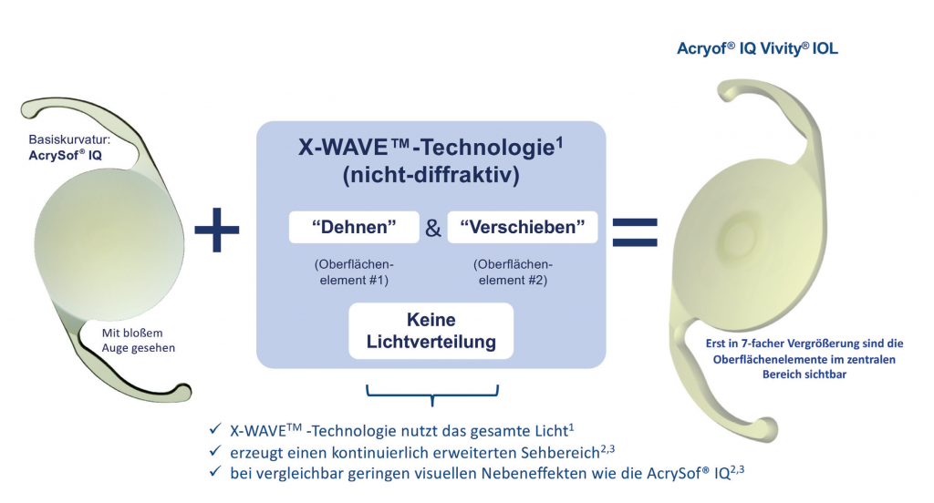 Advertorial „Zur Presbyopiekorrektur habe ich schon lange auf eine Intraokularlinse wie die Vivity® gewartet“1. Oktober 2020 Dr. med. Harald C. Gäckle, einer der beiden ärztlichen Leiter des AugenLaserzentrums in Neu-Ulm, mit der ersten, von ihm implantierten AcrySof® IQ-Vivity®. 1. Lieber Herr Dr. Gäckle, als einer der ersten deutschen Ophthalmologen haben Sie bereits die neue, Presbyopie korrigierende AcrySof® IQ Vivity® implantiert. Was überzeugt Sie an dieser Intraokularlinse? Gäckle: Mich überzeugt das neue, nicht-diffraktive optische Design der Vivity®, von Alcon auch X-Wave™-Technologie genannt, das für einen erweiterten Sehbereich und mehr Brillenunabhängigkeit sorgt. Gleichzeitig werden durch diese Optik-Technologie störende optische Nebeneffekte wie Halos oder Glare vermieden und treten in nur einem ähnlich geringen Umfang auf wie bei einer monofokalen Intraokularlinse (IOL), weil das Licht eben nicht – wie bei diffraktiven IOL – auf verschiedene Brennpunkte verteilt wird. So erreichen Patienten mit der Vivity eben eine deutlich höhere Brillenunabhängigkeit, ohne Abstriche beim Fernvisus oder der Sehqualität machen zu müssen – beide sind so gut wie mit einer Monofokallinse. Mir als Operateur ist außerdem wichtig, dass die Vivity®-IOL auf dem bewährten AcrySof®-Design basiert, das heißt sie lässt sich leicht und mit den gewohnten Injektoren implantieren, sitzt äußerst stabil im Auge und hat eine sehr niedrige Nachstarrate. 2. Wie zufrieden sind Ihre Vivity®-Patienten mit ihrem Sehvermögen? Gäckle: Nach meiner Erfahrung ist die überwiegende Mehrheit der Vivity®-Patienten mit ihrem Ergebnis hoch zufrieden. Das Sehvermögen in die Ferne ist ausgezeichnet und auch der Intermediärvisus für Handy und Computer ist als sehr gut zu bezeichnen. Im Nahbereich unter 50 cm müssen sich manche Patienten allerdings auf gewisse Abstriche einstellen, hier kann das Tragen einer leichten Nahbrille sinnvoll sein. Darüber sollten die Patienten vorab ausführlich informiert werden, um spätere Enttäuschungen zu vermeiden. Ich denke aber, dass sehr viele Patienten heutzutage ohnehin hauptsächlich mehr Brillenunabhängigkeit im Bereich Sport und Freizeit sowie für den Umgang mit Handy, Tablet, PC oder dem Navigationssystem im Auto wünschen. Viele Patienten empfinden es daher oftmals gar nicht als störend, wenn sie ab und zu, zum Beispiel abends beim Lesen, mal eine Nahbrille tragen müssen – sofern sie darauf vorbereitet sind. 3. Was berichten Ihre Vivity®-Patienten hinsichtlich visueller Nebeneffekte wie zum Beispiel Halos oder Glare? Gäckle: Ich war am Anfang natürlich sehr kritisch, was die visuellen Nebeneffekte anbelangt. Wenn man sich die Vivity®-IOL unter dem Mikroskop anschaut, kann man ja durchaus eine feine, ringförmige Aufwölbung auf der IOL-Vorderfläche erkennen, von der man doch gewisse Effekte erwarten könnte. Ich habe daher postoperativ alle Patienten explizit nach visuellen Nebeneffekten gefragt, und bisher bestätigen sich die guten Studienergebnisse auch im Praxisalltag: Bislang hat sich noch kein Vivity®-Patient bei mir über störende Halos oder sonstige positive Dysphotopsien beschwert. Dies ist ja immer das Dilemma mit diffraktiven IOL. Diese liefern zwar funktionell durchweg sehr gute Ergebnisse, aber ehrlich gesagt beschwert sich trotz guter Aufklärung dennoch fast jeder dritte Patient zumindest kurz nach der Implantation über Halos. Das lässt zwar mit der Zeit meist nach, dennoch sind Gespräche über Halos und andere störende visuelle Nebeneffekte natürlich sehr zeitraubend und nervig im Praxisalltag. Bei Vivity®-Patienten hatte ich diese Gespräche bislang nicht. Auch über ein etwas vermindertes Kontrastsehen wie bei diffraktiven IOL hat sich bisher ebenfalls kein Vivity®-Patient bei mir beklagt. Insgesamt kann man nach unserer Erfahrung den Fernvisus – ein Erreichen der Zielrefraktion vorausgesetzt – und die generelle Sehqualität mit der Vivity® durchaus mit einer Monofokallinse vergleichen. Da gibt es keine Abstriche. 4. Bei welchen Patienten setzen Sie Vivity bevorzugt ein und warum? Gäckle: Ich setze momentan Vivity® durchweg bei allen Patienten ein, die mehr Brillenunabhängigkeit wünschen und grundsätzlich kein Problem damit haben, hin und wieder eine Nahbrille zu benötigen. Sehr häufig sind dies jüngere Kataraktpatienten oder auch hyperope Patienten mit dem Wunsch hinsichtlich eines refraktiven Linsentausches (RLE). Bei allen Patienten, die tatsächlich über den gesamten Sehbereich von der Ferne bis in die Nähe möglichst ohne Brille auskommen wollen, setze ich nach wie vor die trifokale PanOptix®-IOL ein, sofern mir der Patient dafür geeignet scheint. So gesehen ergänzen sich die beiden IOL und man sollte eine Alltags- beziehungsweise Berufsanamnese durchführen, um die Sehbedürfnisse der Patienten zu erfassen und die IOL darauf abzustimmen. Einem Fernfahrer zum Beispiel würde ich bedenkenlos eine Vivity®-IOL empfehlen, eine Trifokallinse hingegen eher nicht. Auch bei einer unilateralen Katarakt am dominanten Auge würde ich mich für die Vivity® entscheiden. Abgesehen von dem leicht reduzierten Nahvisus sehe ich keinerlei Nachteile der Vivity®-IOL, sodass es mir schwerfällt, ein absolutes Knock-out-Kriterium zu finden. Lediglich Patienten mit vorbestehenden Augenerkrankungen wie zum Beispiel visusrelevanten Makulaerkrankungen, Keratokonus, Hornhautnarben oder Amblyopie sollten meines Erachtens nach auch weiterhin selbstverständlich mit Monofokallinsen versorgt werden. Das einzige Manko ist aus meiner Sicht derzeit, dass die Vivity®-IOL bislang leider noch in nur einem beschränkten Lieferbereich von 15– 25 dpt erhältlich ist, ansonsten hätte ich sie bereits noch häufiger implantiert. 5. Welche Empfehlungen können Sie zur Kalkulation der Vivity®-IOL geben? Gäckle: Insgesamt ist die Vorhersagbarkeit der postoperativen Refraktion der Vivity®-IOL mit den gängigen K